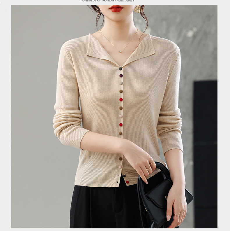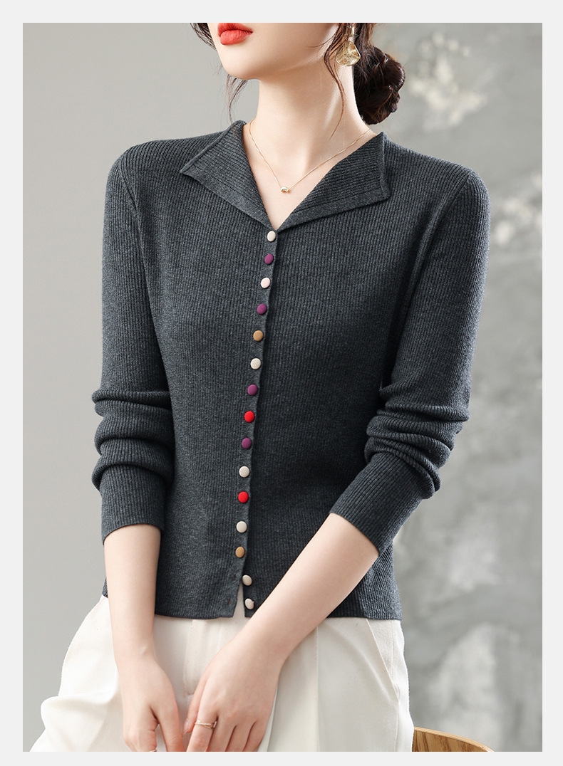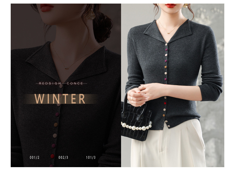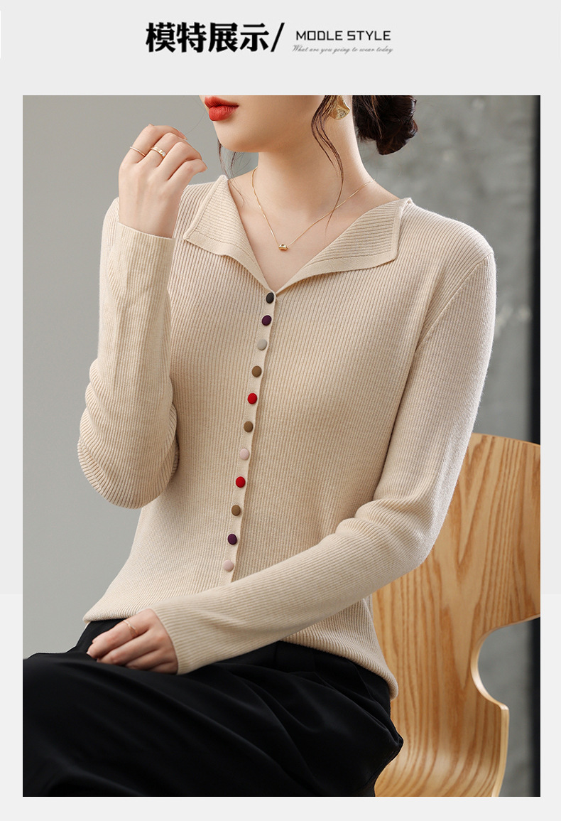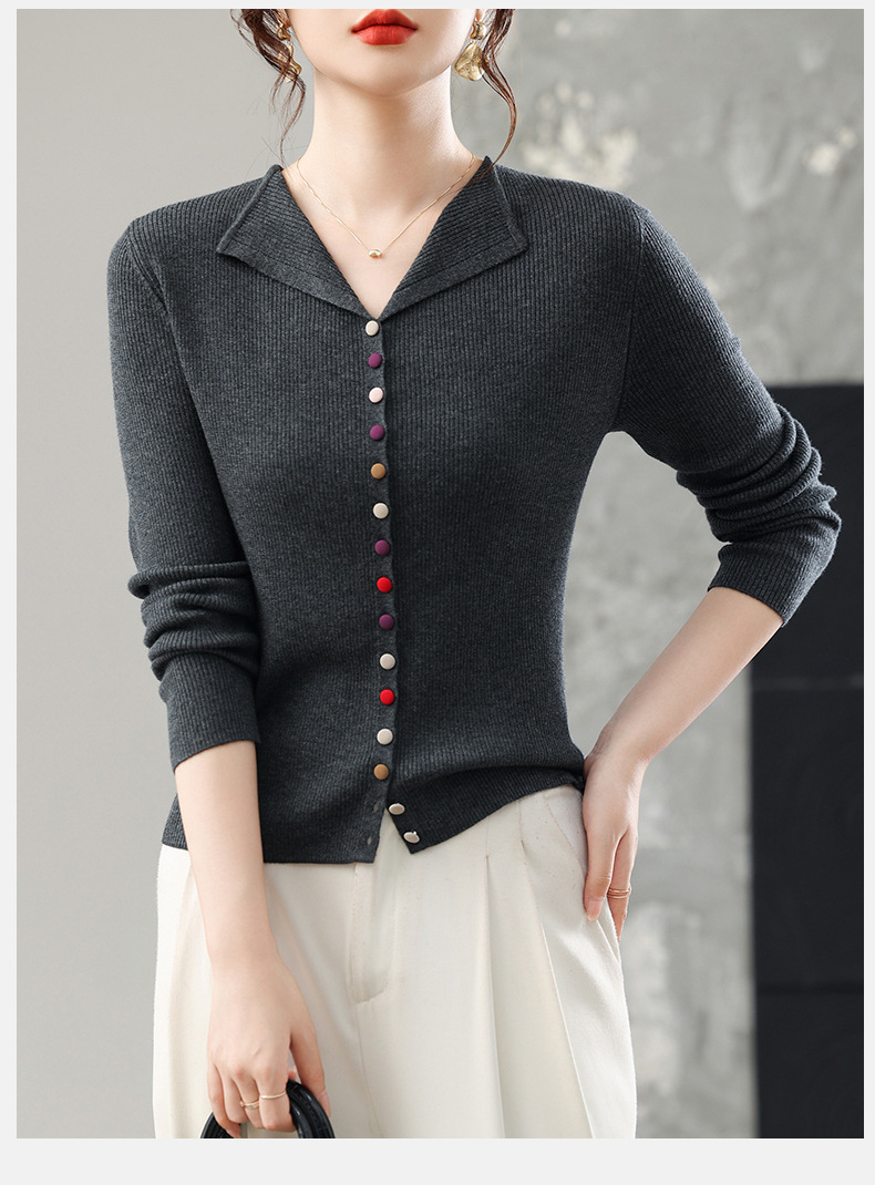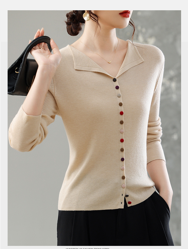 CC翻领彩色纽扣设计感针织衫长袖开衫早秋2025新款气质修身女士上衣