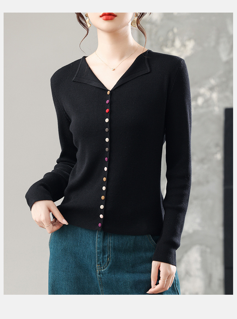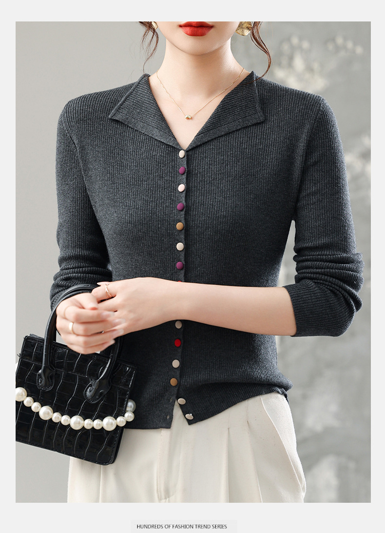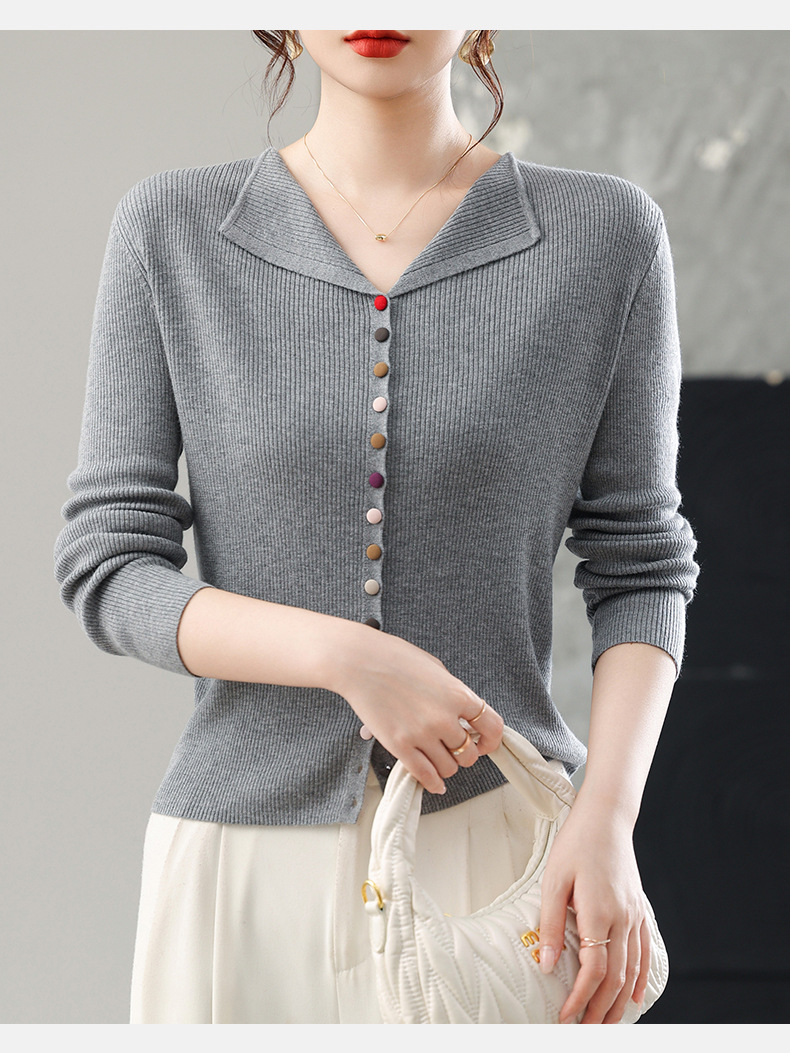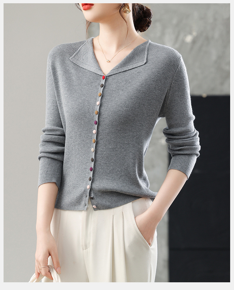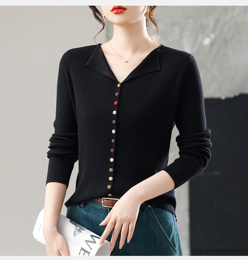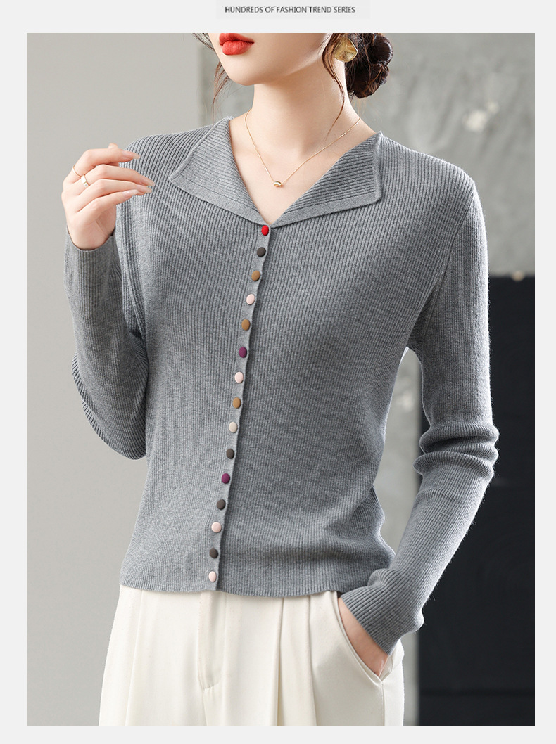 CC翻领彩色纽扣设计感针织衫长袖开衫早秋2025新款气质修身女士上衣