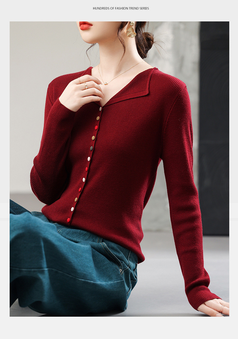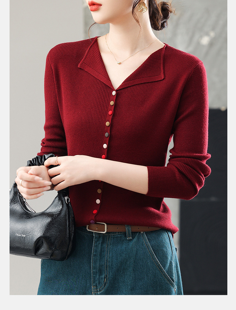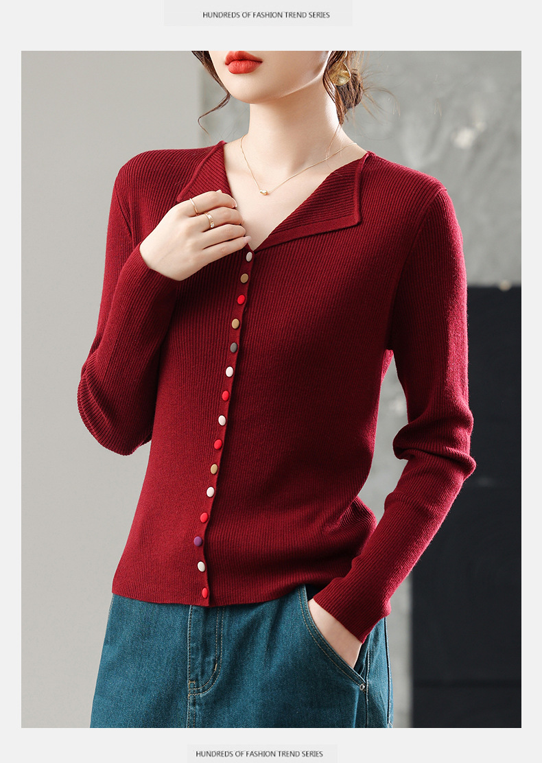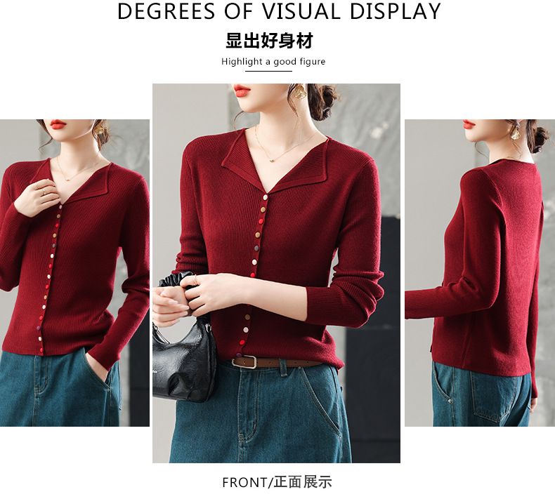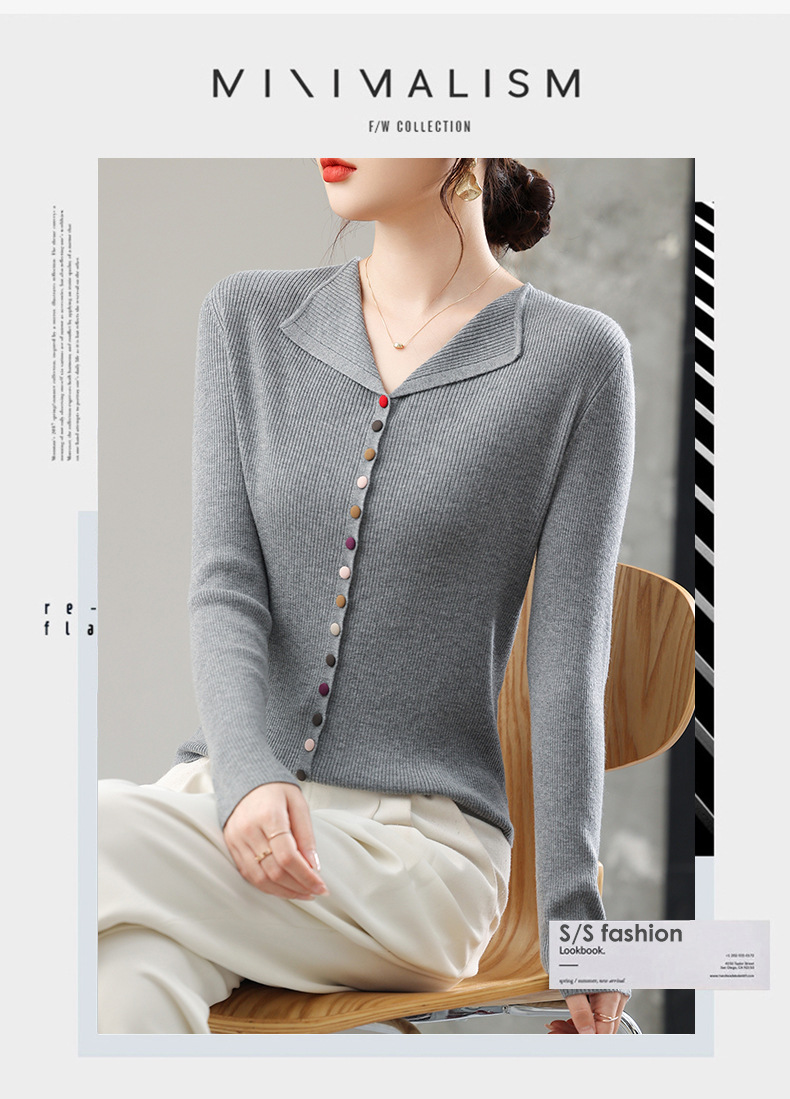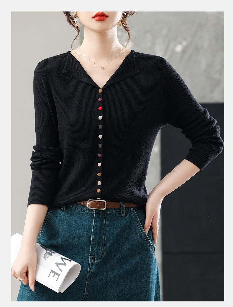 CC翻领彩色纽扣设计感针织衫长袖开衫早秋2025新款气质修身女士上衣