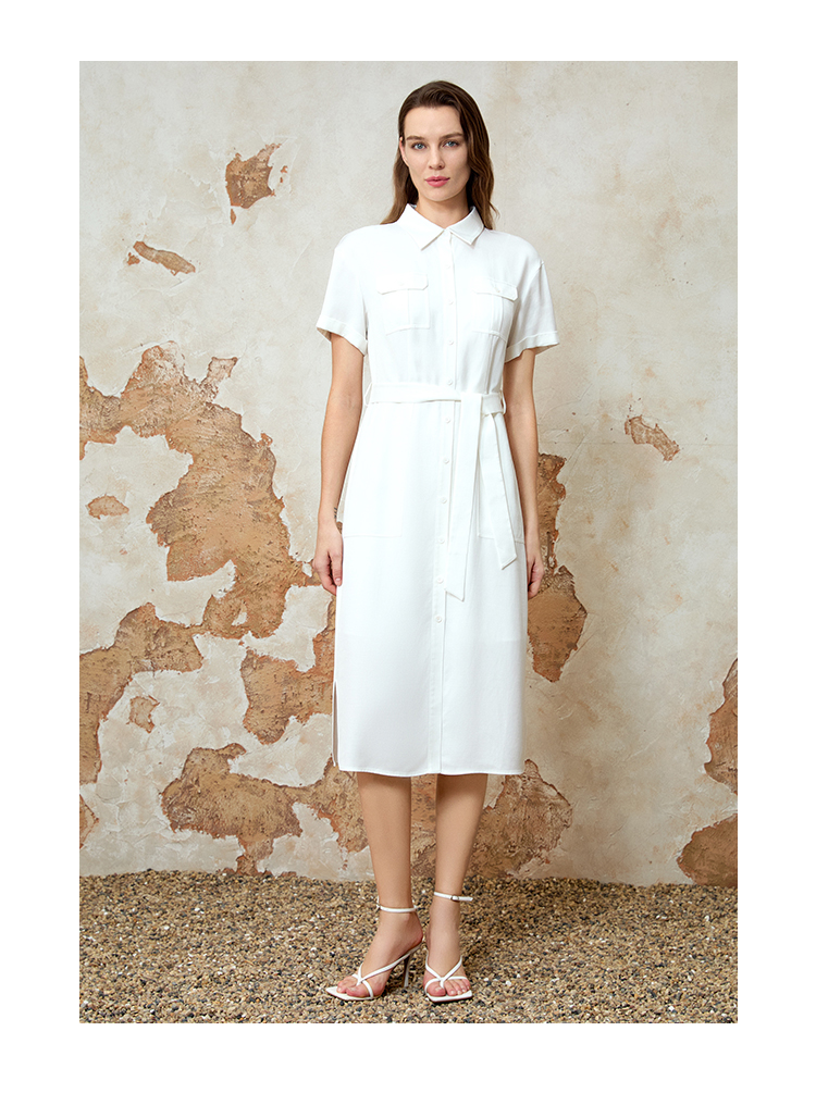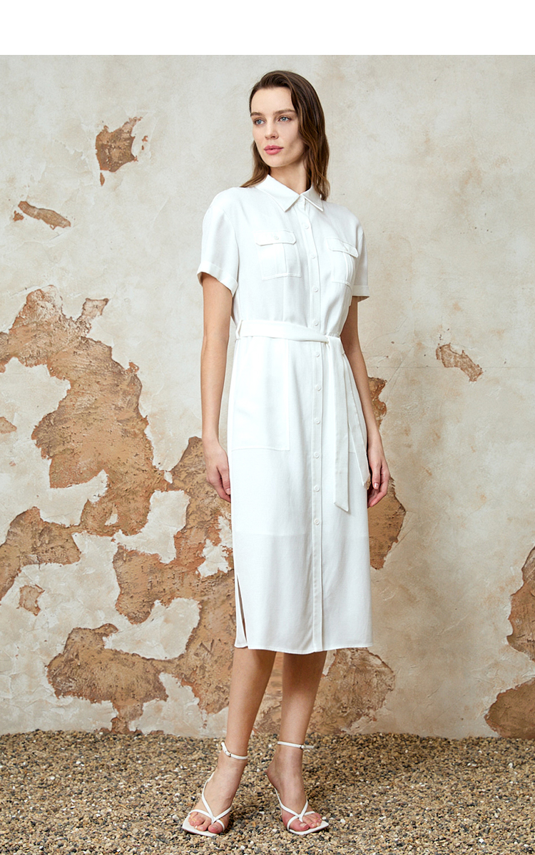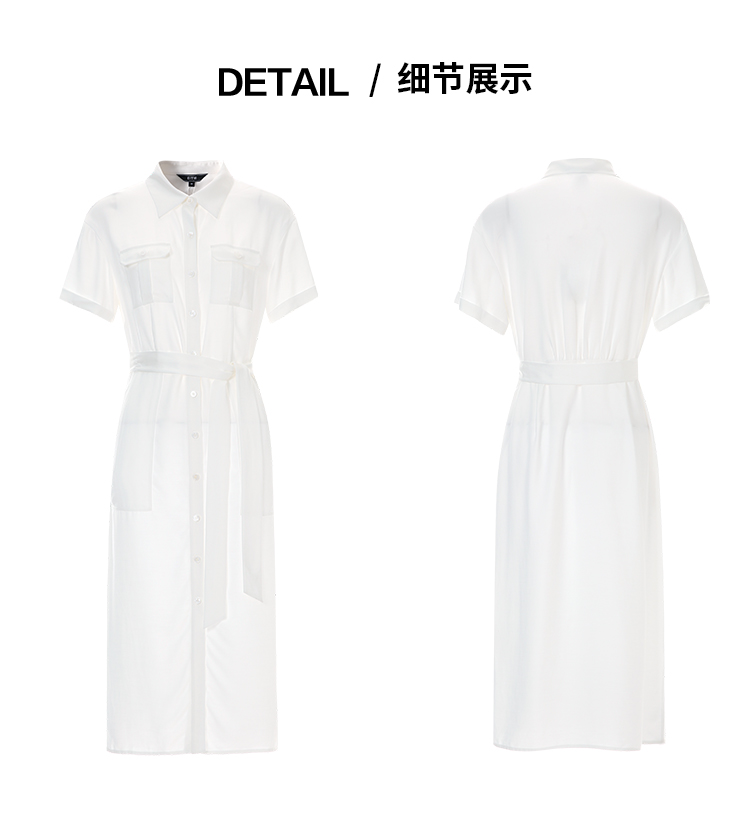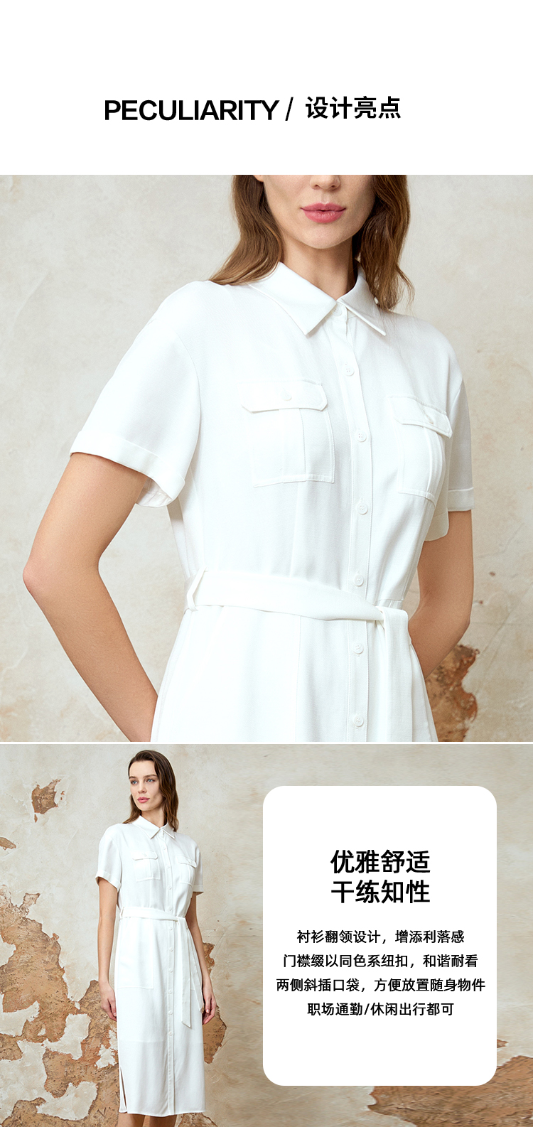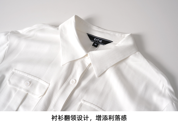 EITIE爱特爱夏季新款法式优雅气质翻领收腰显瘦衬衫连衣裙8207910