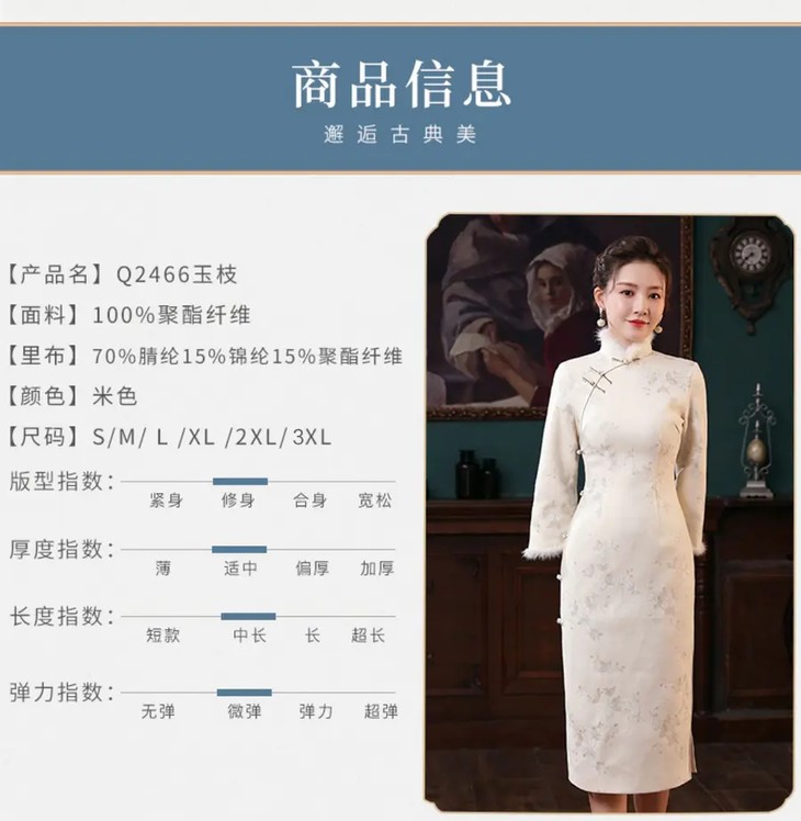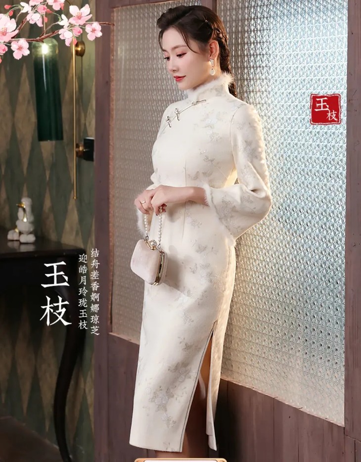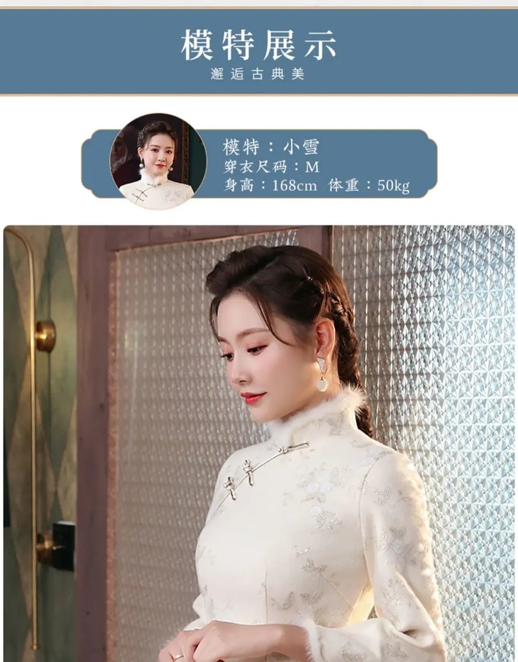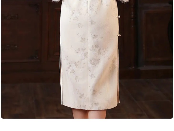 XGT-2466优雅修身改良毛呢重工绣花水貂毛领旗袍