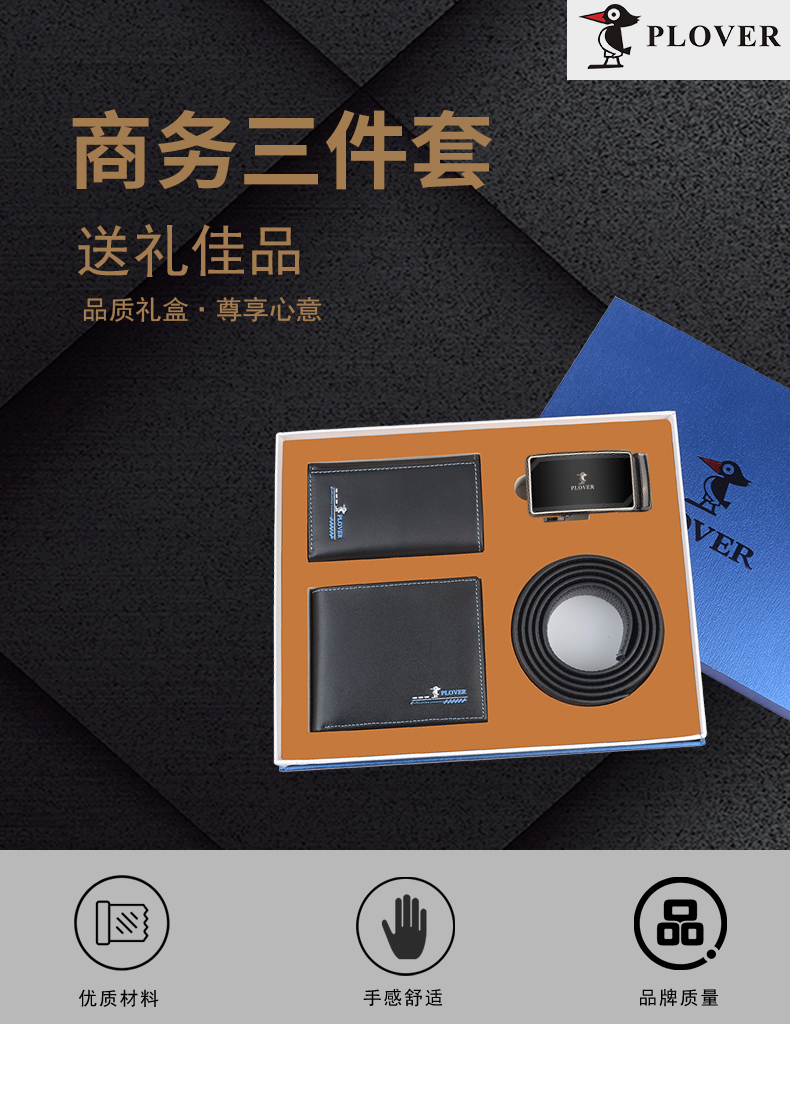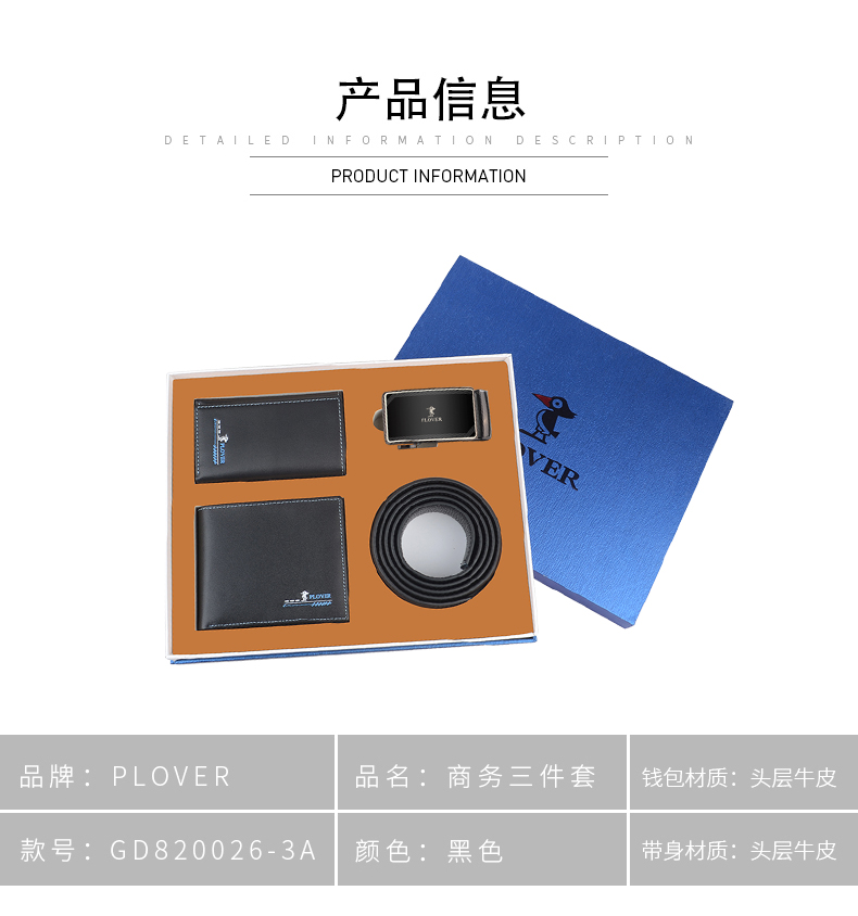 【献礼父亲节】PLOVER香港啄木鸟钱包钥匙包皮带套装 GD820026-3A