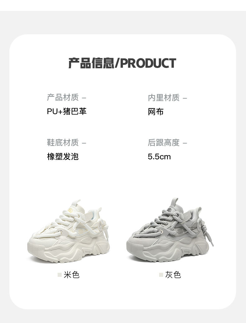 ZHR则则增高5.5cm老爹鞋女2025新款情侣厚底显高耐磨运动休闲鞋