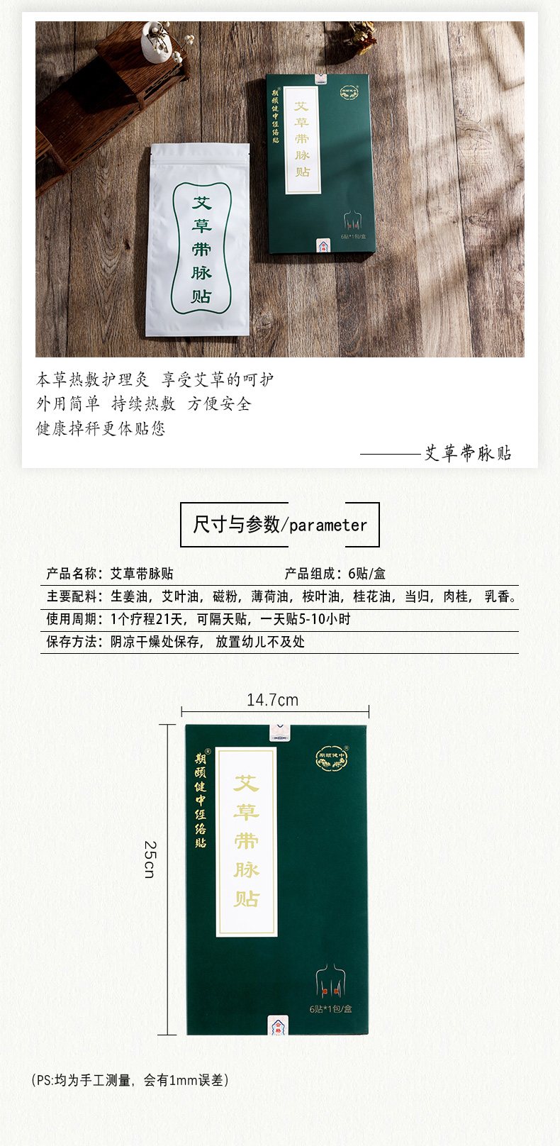 正安优选·艾草带脉贴 天然选材 原方配比 每盒6贴 买2发3 买3发5 买5发8(赠品为简装袋装)