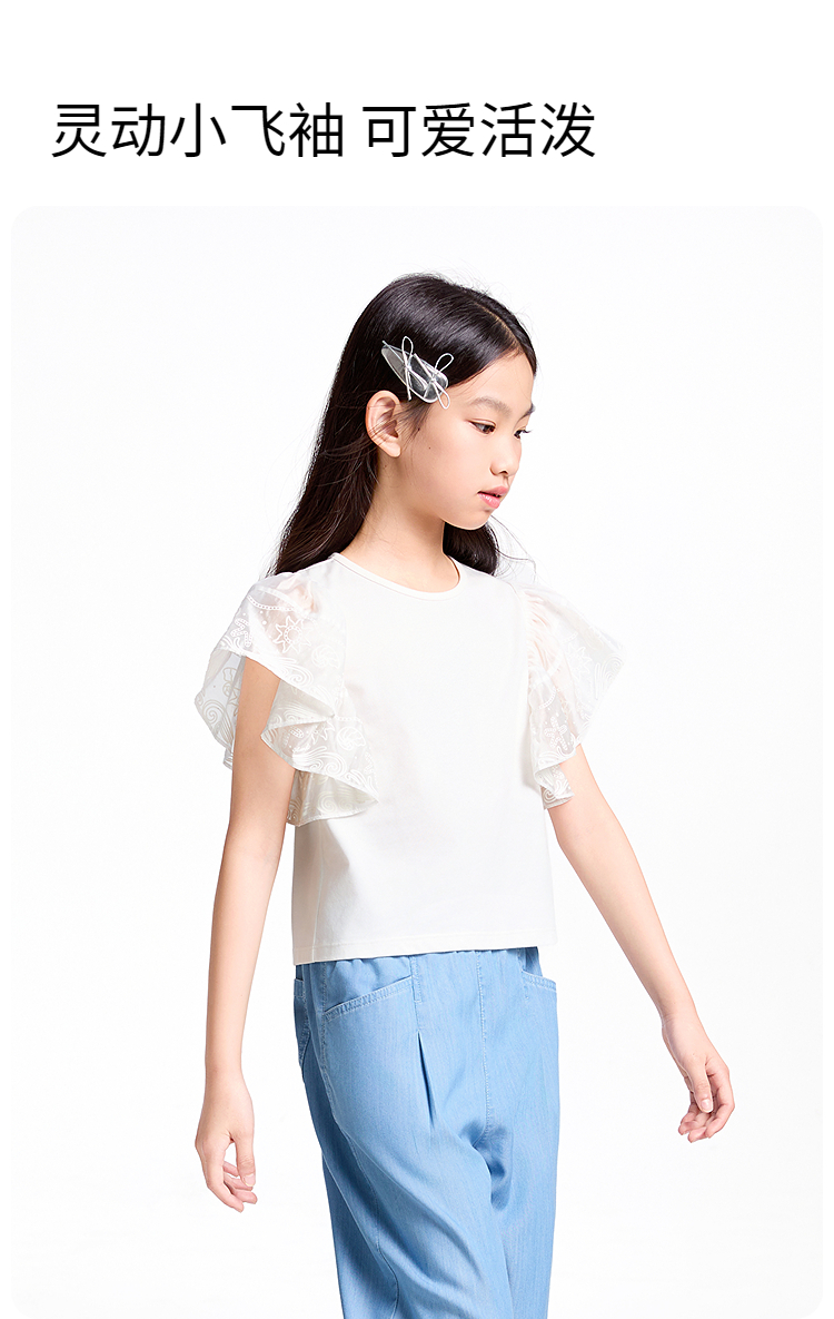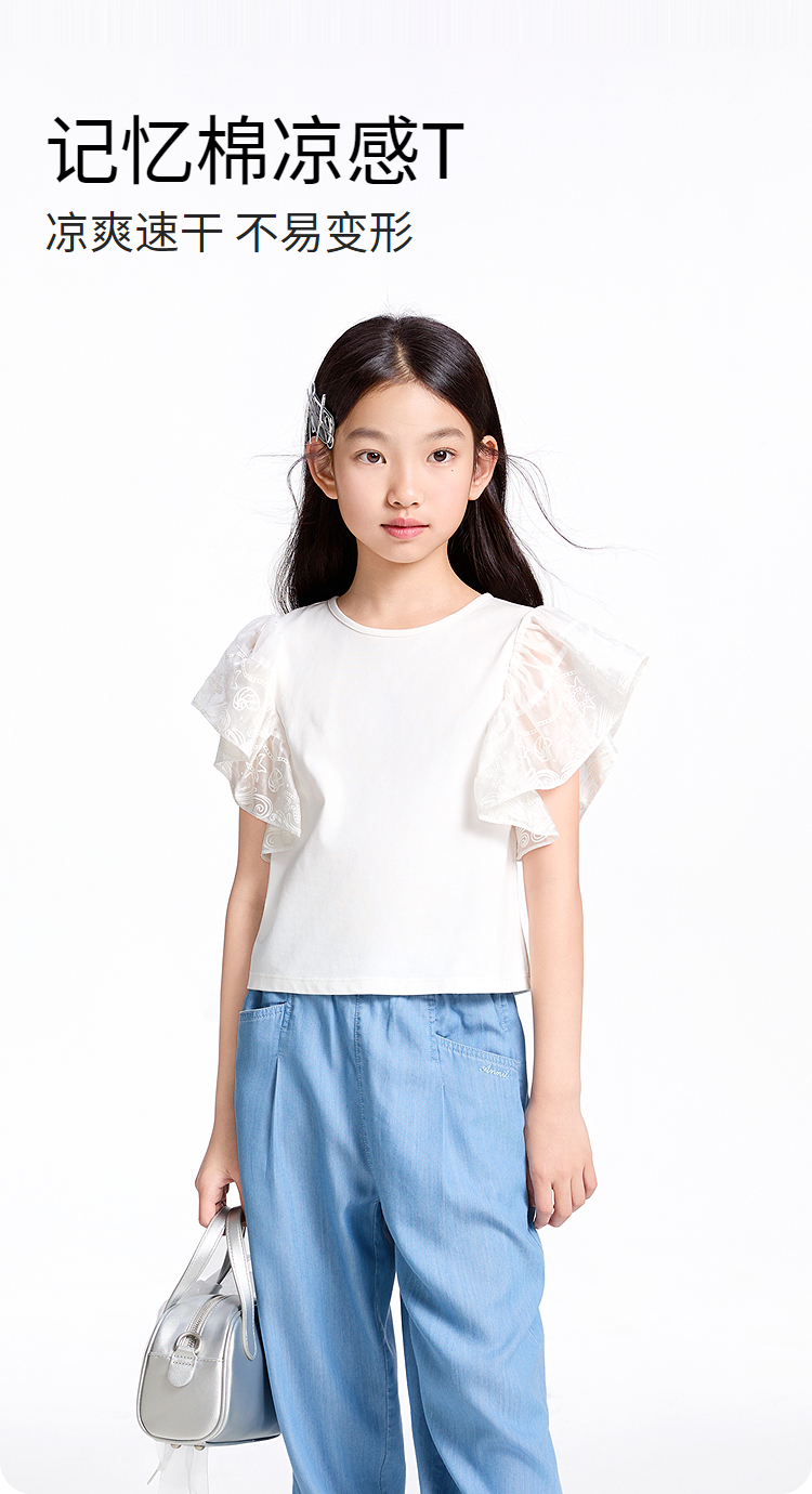 【实体店同款】女童SORONA凉感短袖上衣夏季新款安奈儿童装AG521664