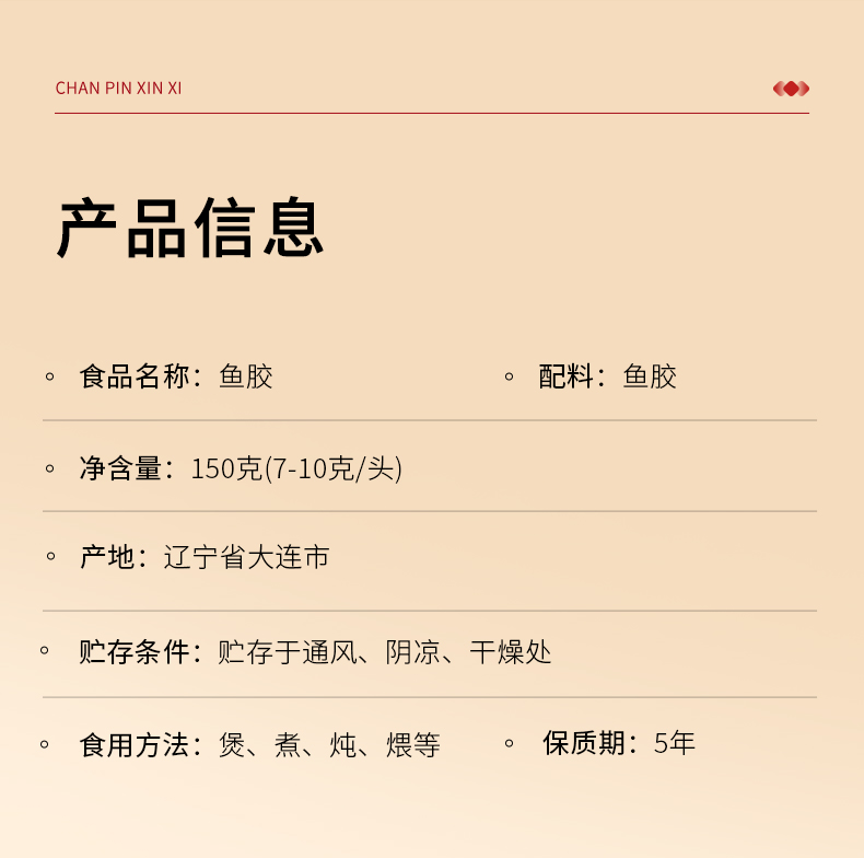 【正宗同仁堂品牌】北京同仁堂 青源堂 鱼胶150克(鳕鱼胶)胶质丰富 易于泡发炖煮 形态完整SY