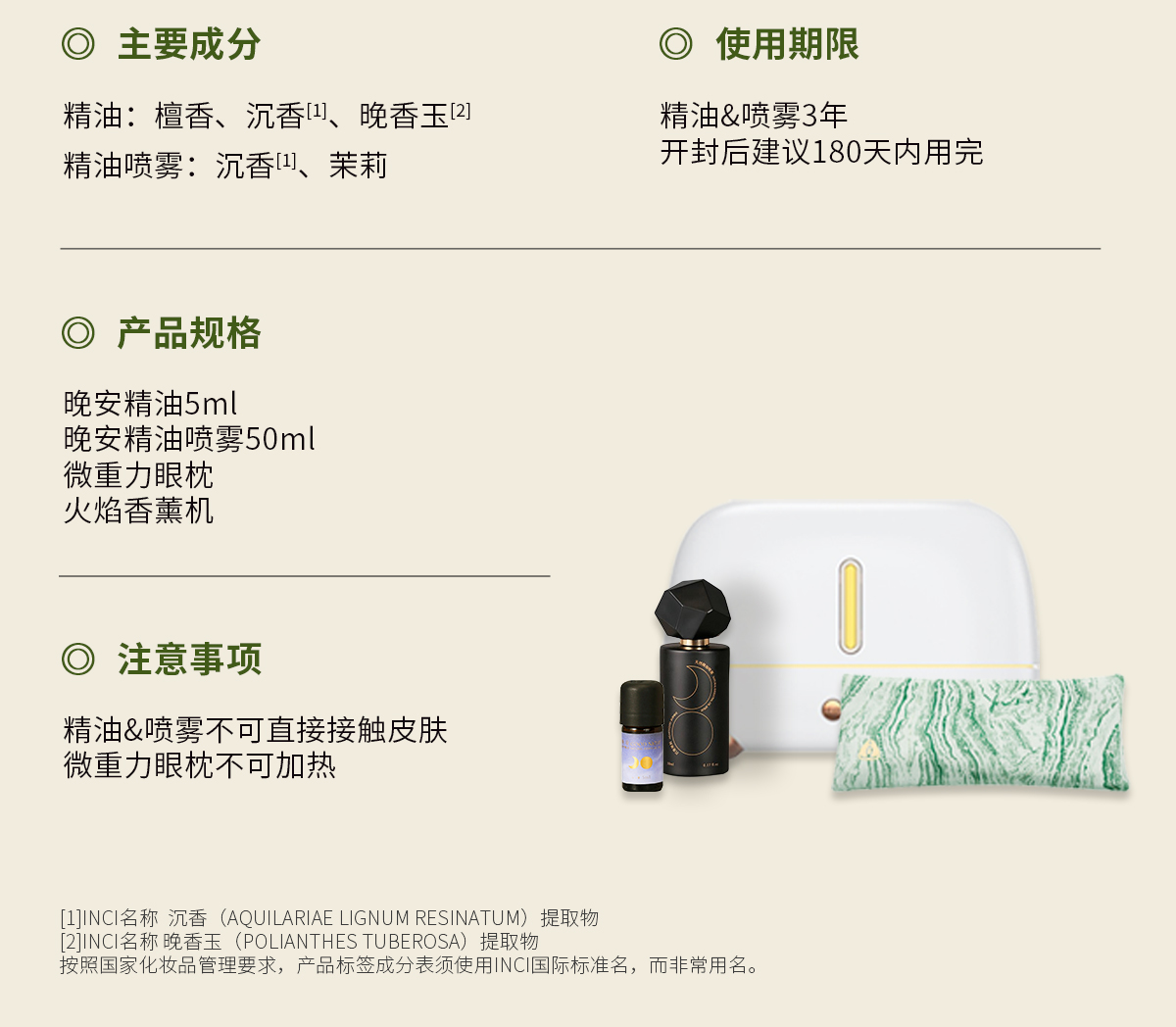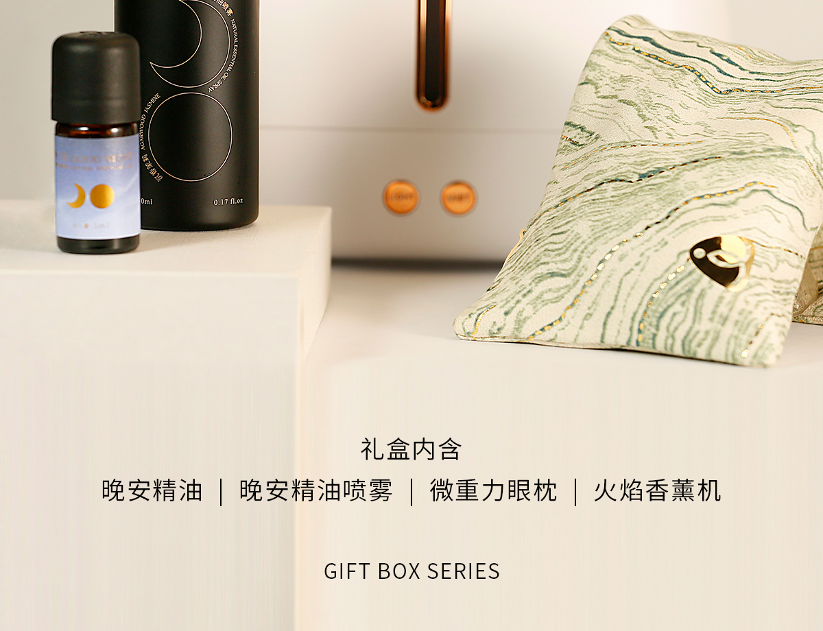 枕草子 晚安盒子2.0 礼盒内含:晚安精油、晚安精油喷雾、微重力眼枕、火焰香薰机