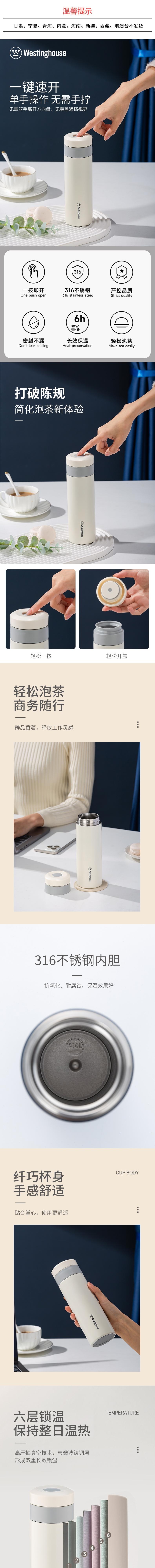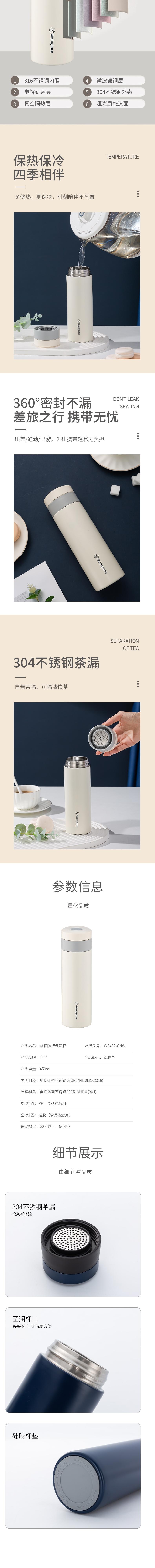 西屋 尊悦随行保温杯素雅白450mL WB452-CNW