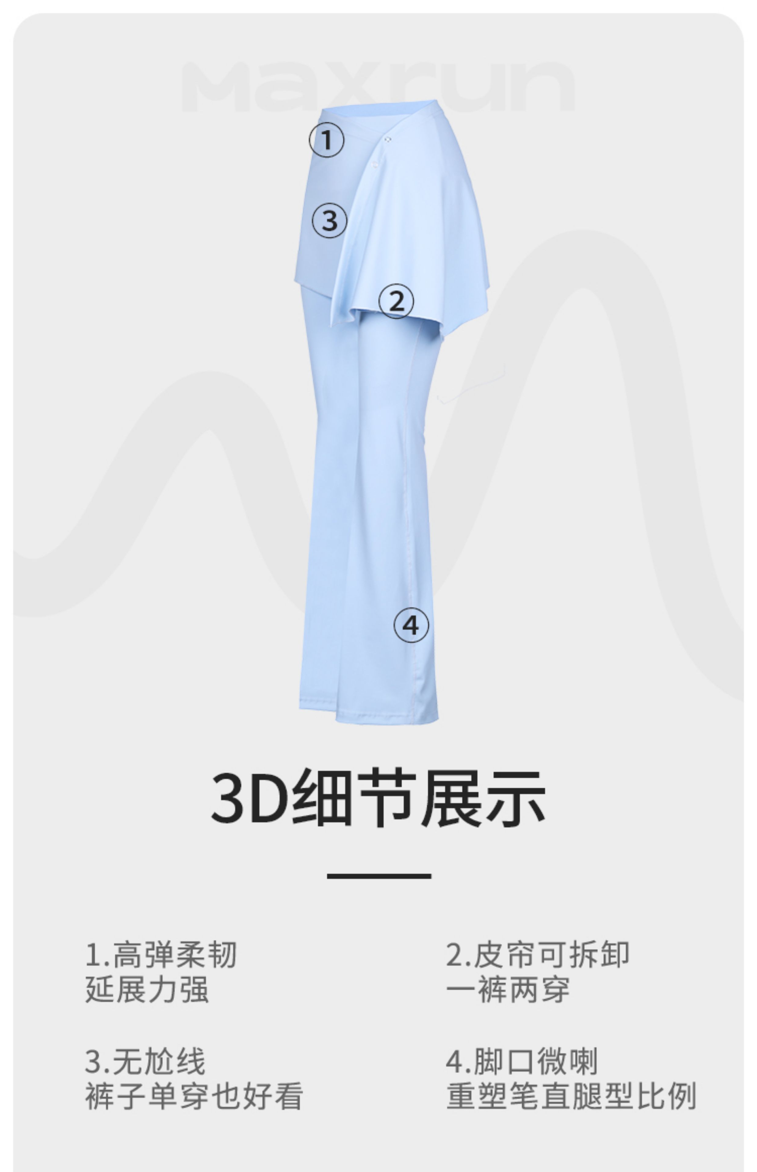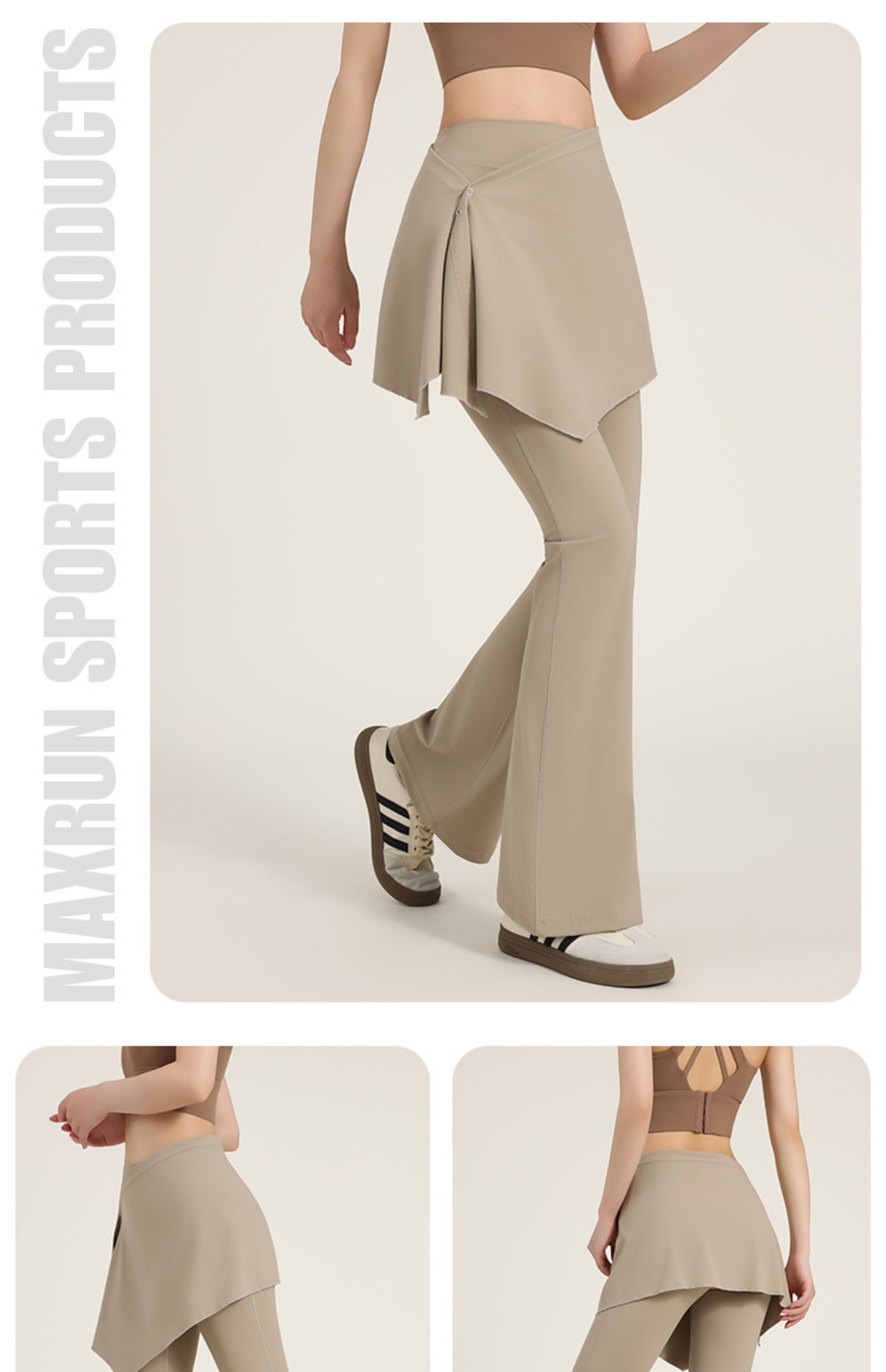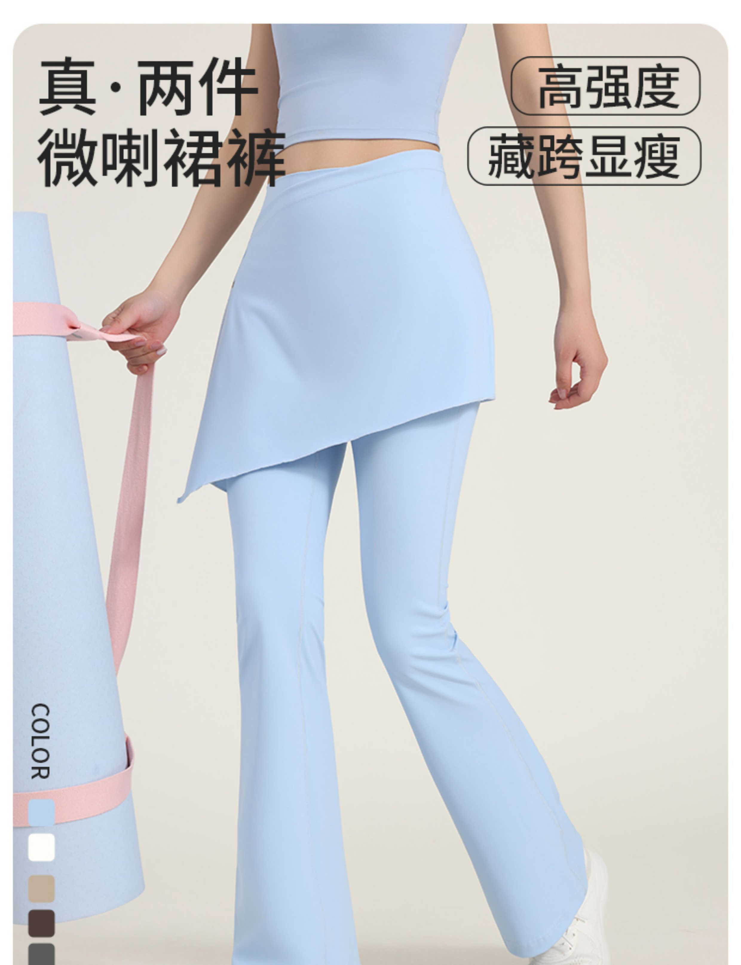跃牌【安琪拉系列】新款假两件瑜伽裤屁帘可拆卸防尴尬微喇裤女高腰垂感喇叭裤CK-5102+YPF-5002