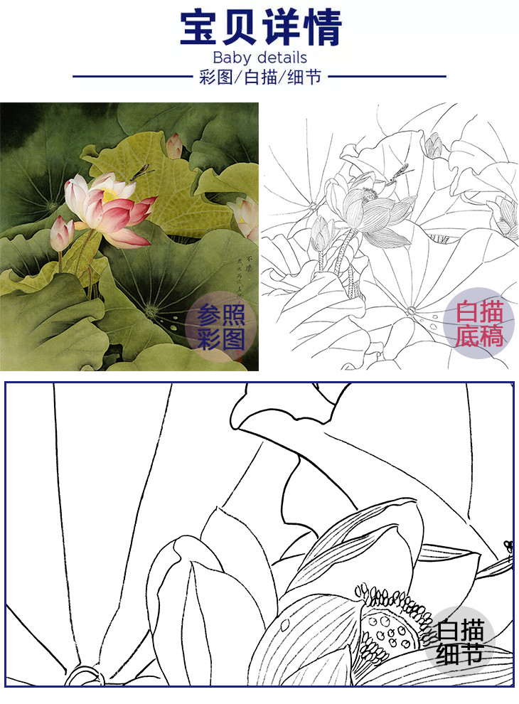 工笔花鸟白描底稿-周中耀《不染》-荷花-斗方小品册页-LQ09