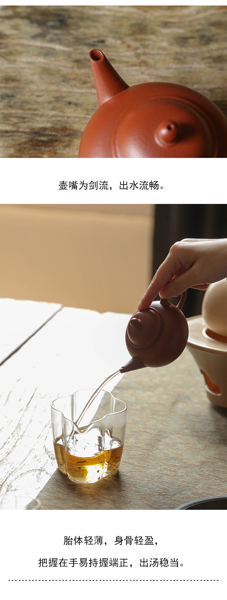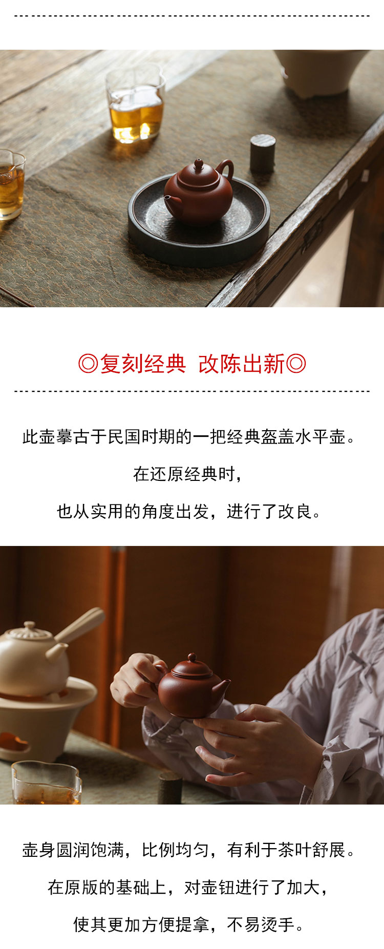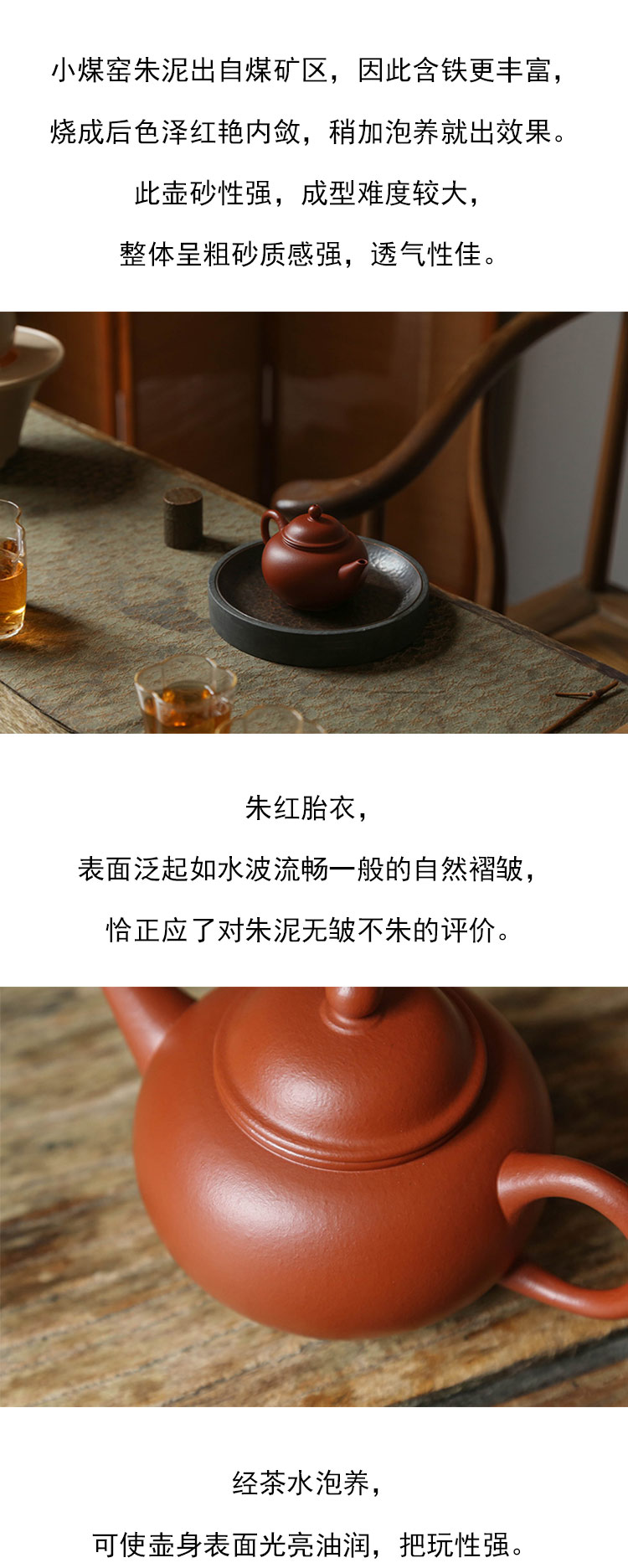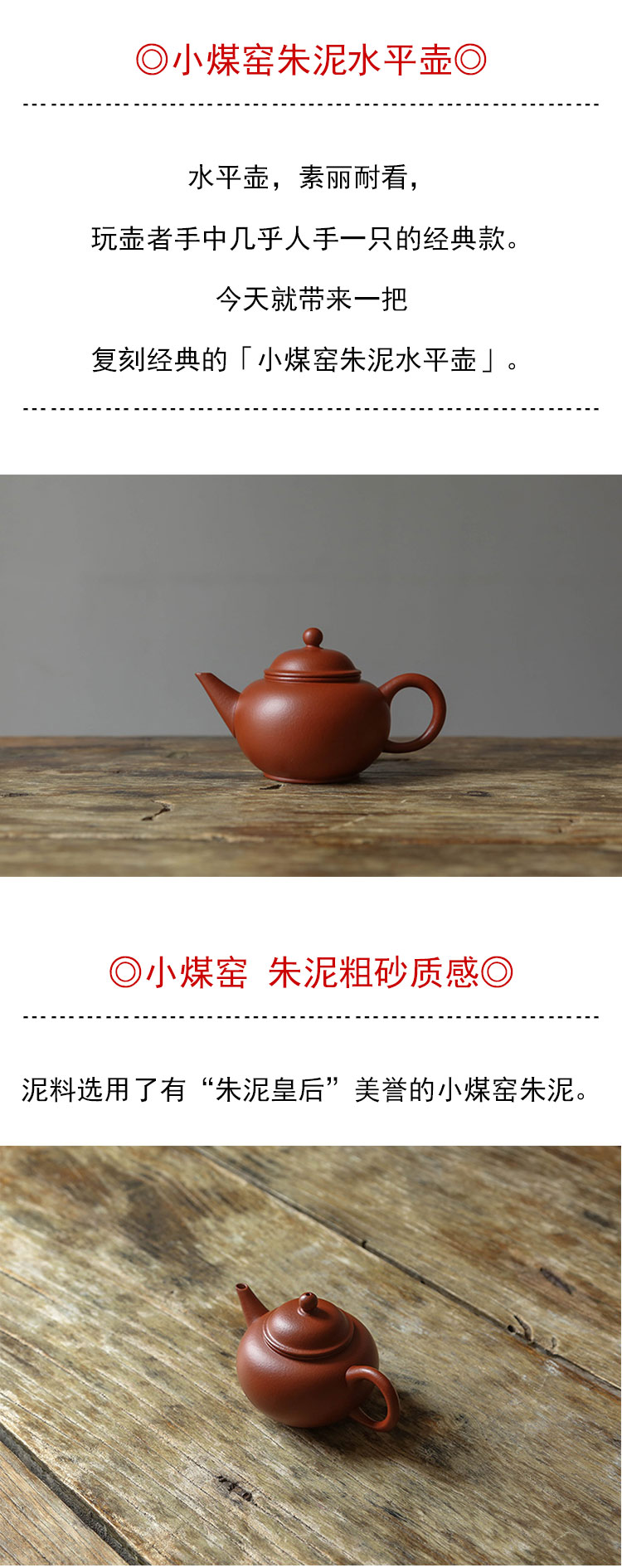 茶香记 小煤窑朱泥水平壶 紫砂壶 经典器型 粗砂质感 细腻红润 泡茶壶