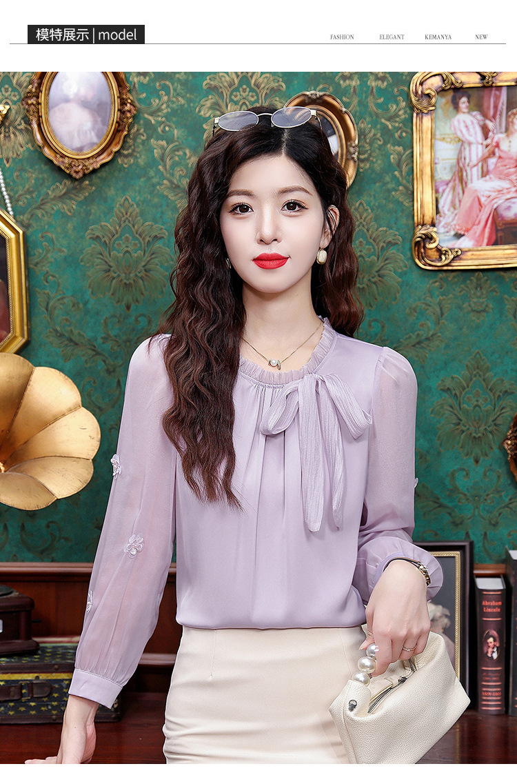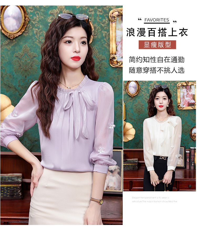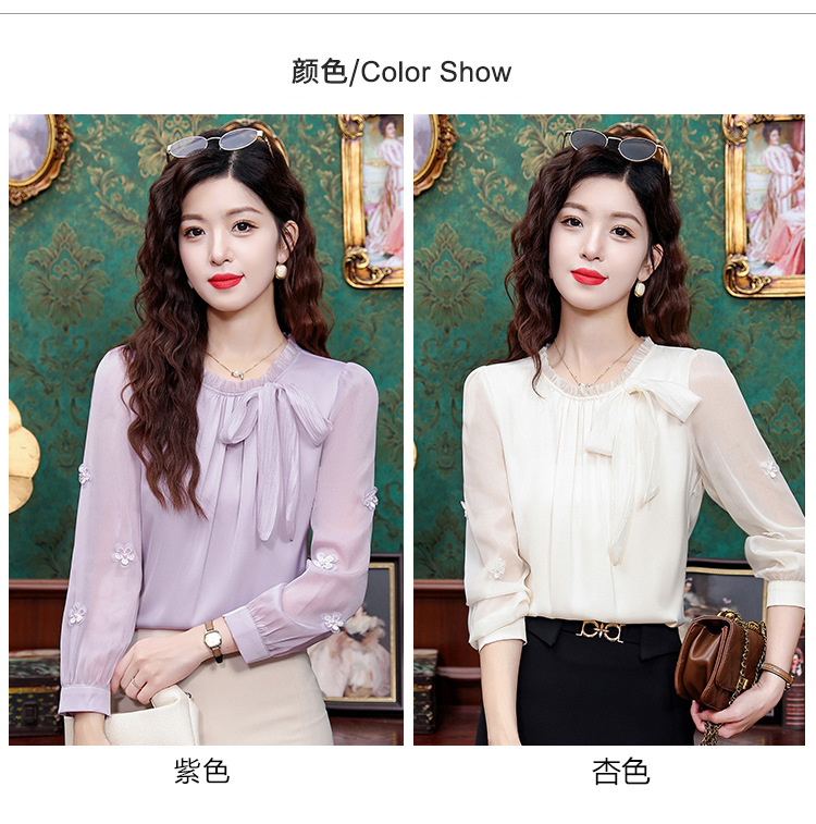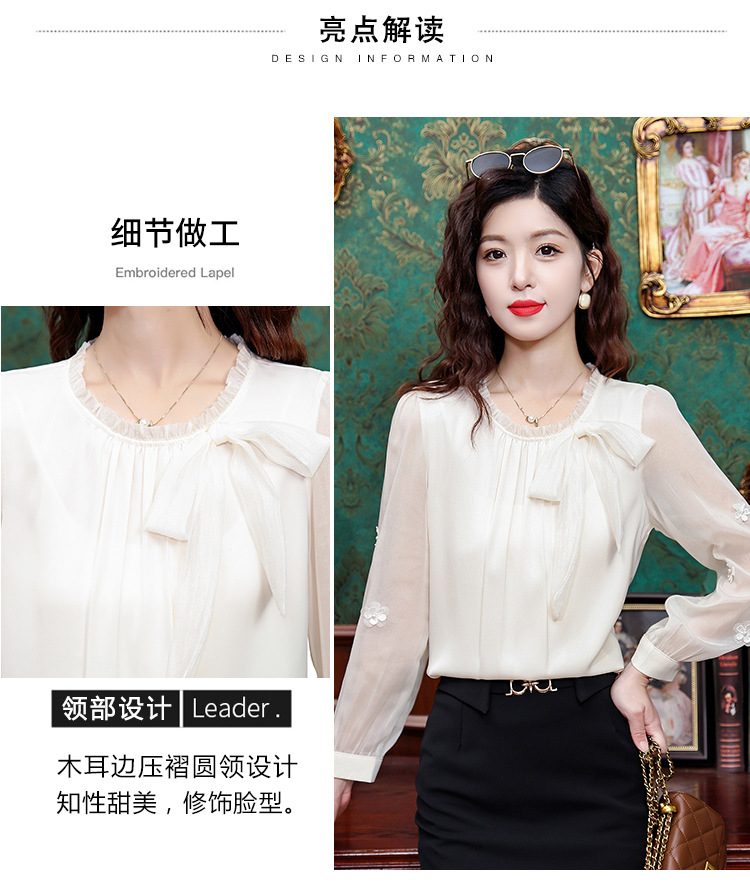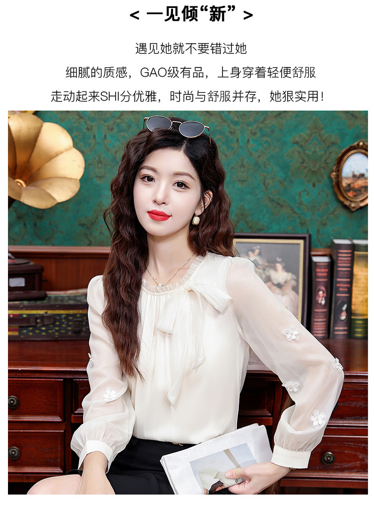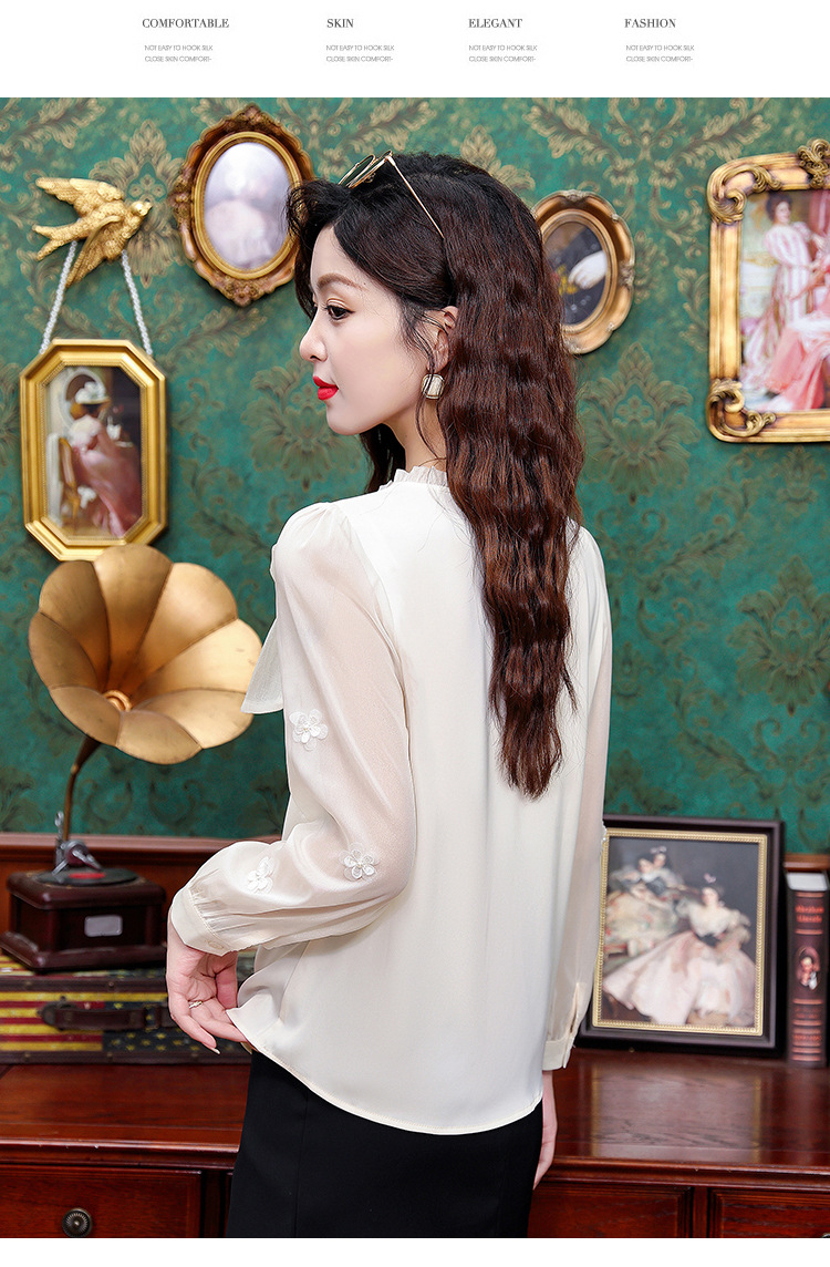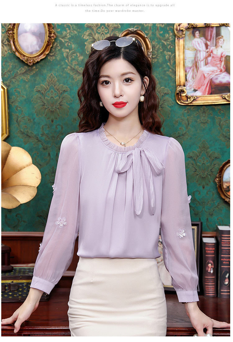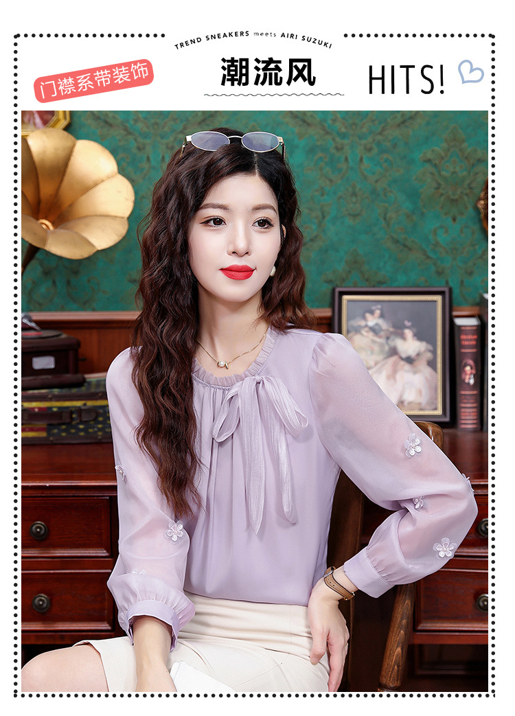 KQL 323H2192立领荷叶边显瘦荷叶袖衬衫减龄法式雪纺衫