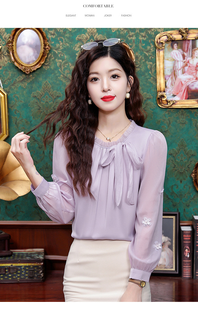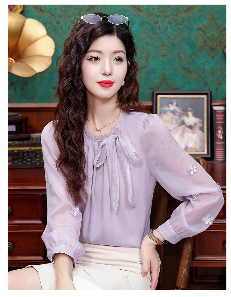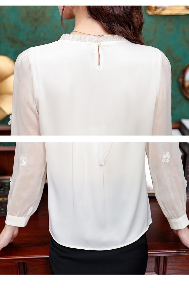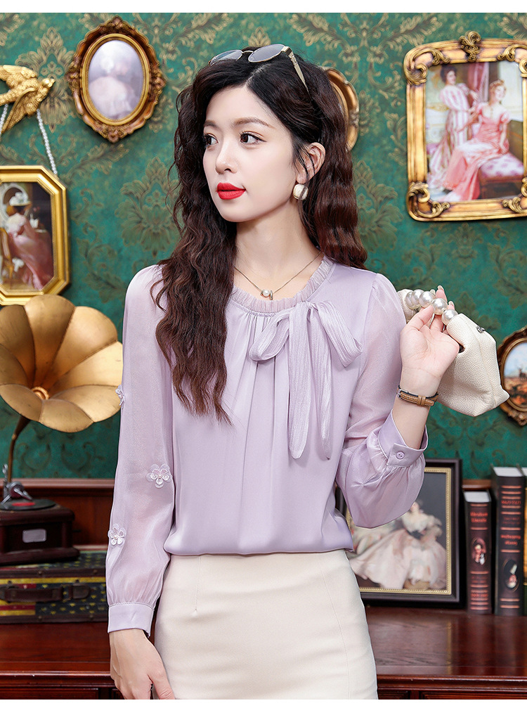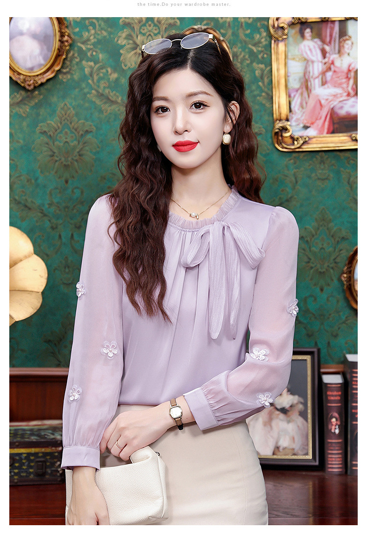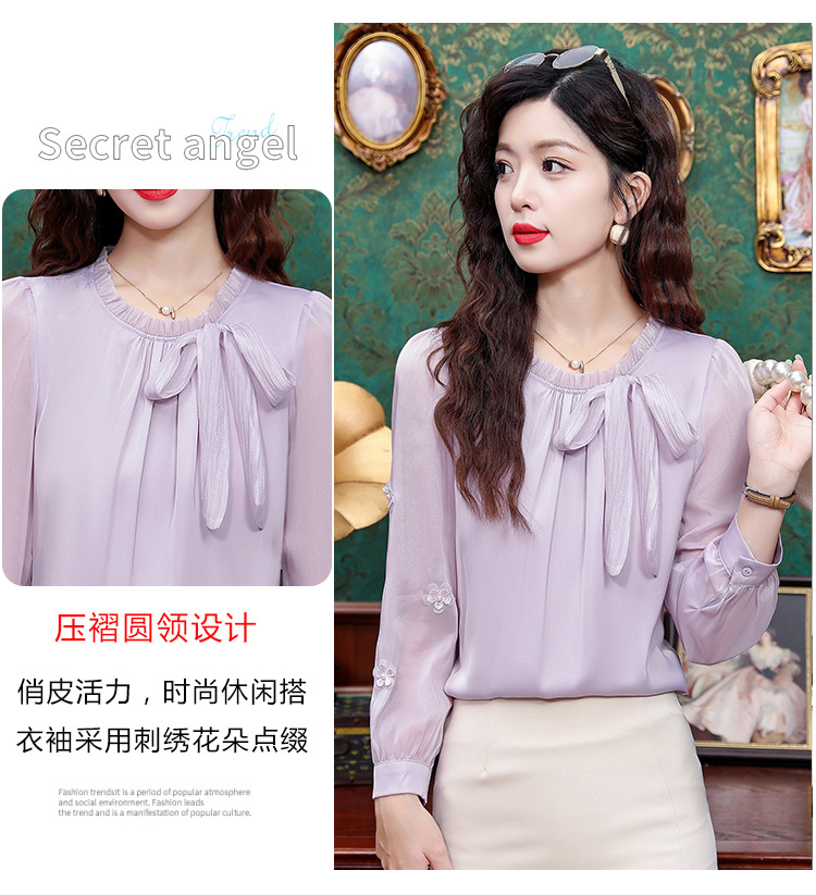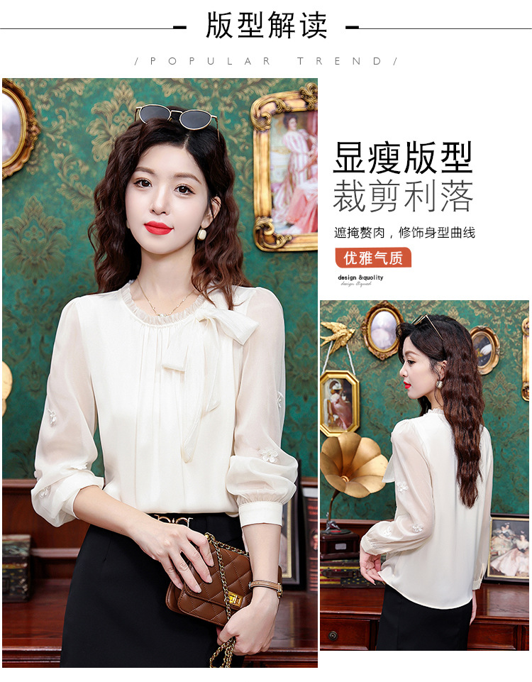KQL 323H2192立领荷叶边显瘦荷叶袖衬衫减龄法式雪纺衫