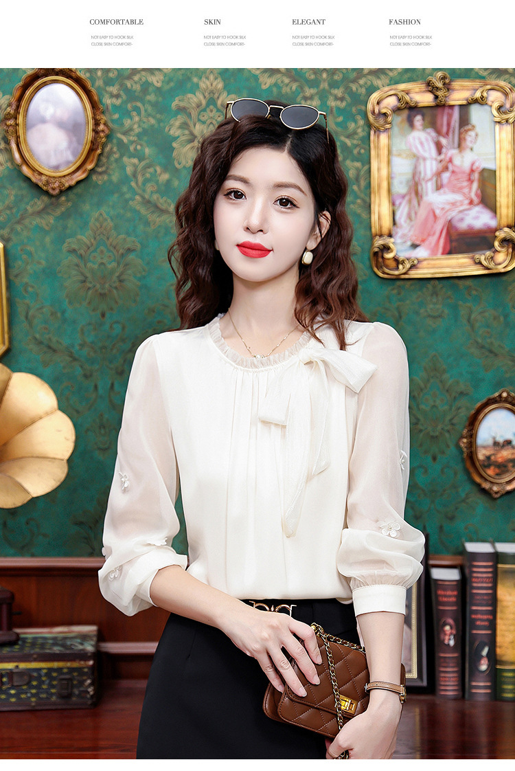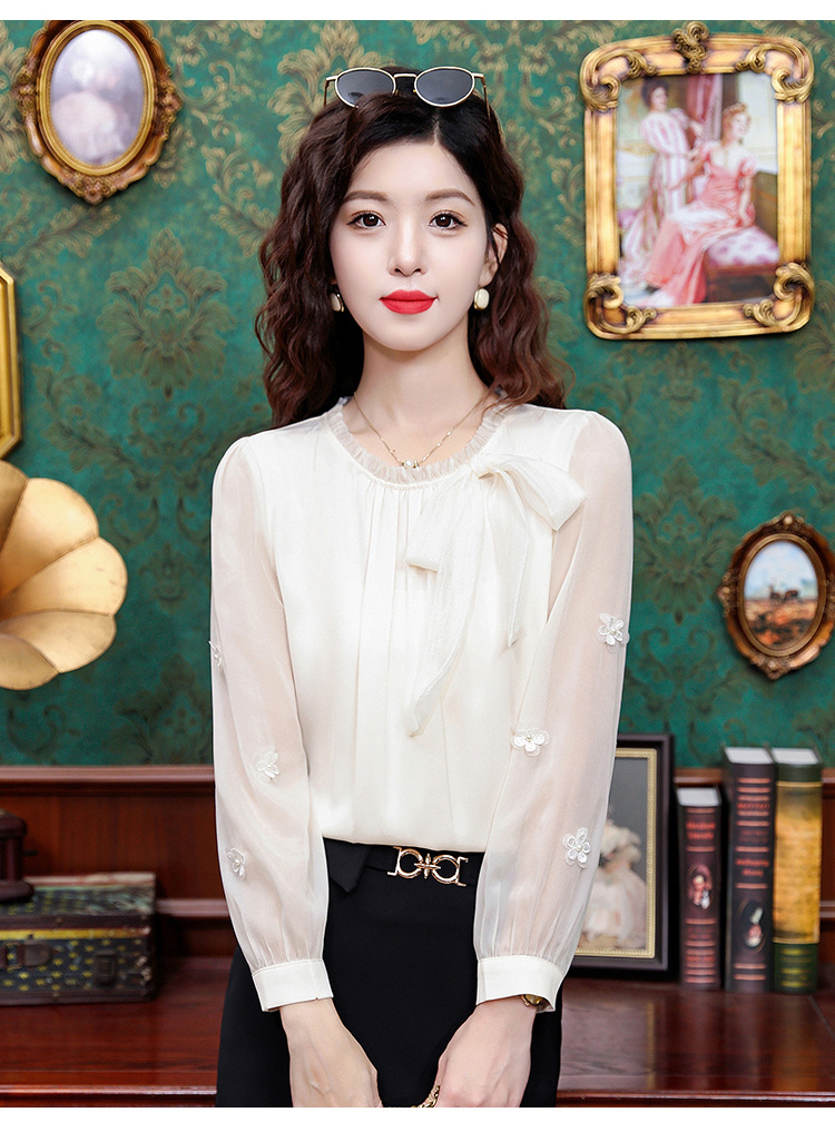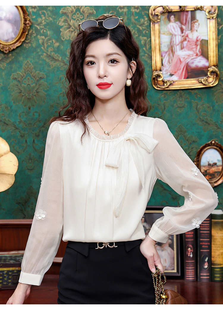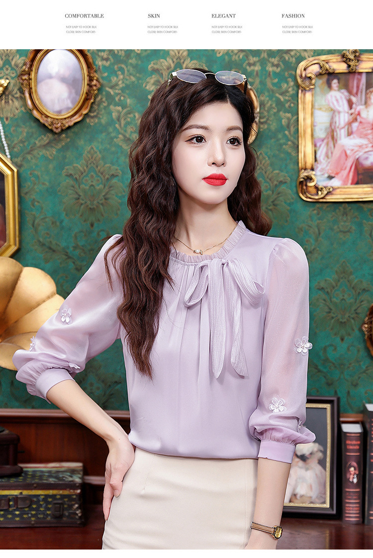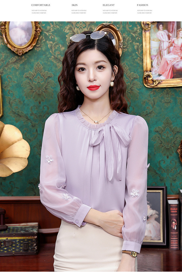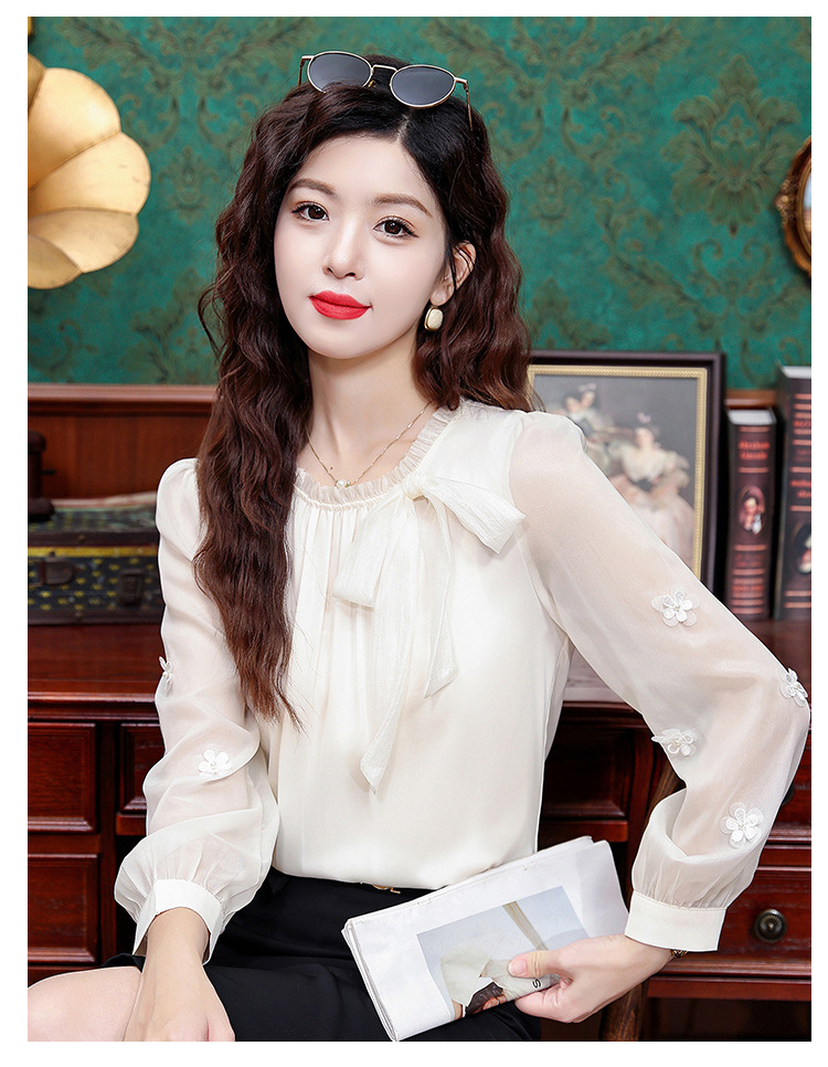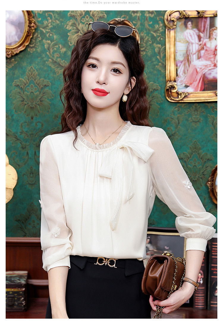 KQL 323H2192立领荷叶边显瘦荷叶袖衬衫减龄法式雪纺衫