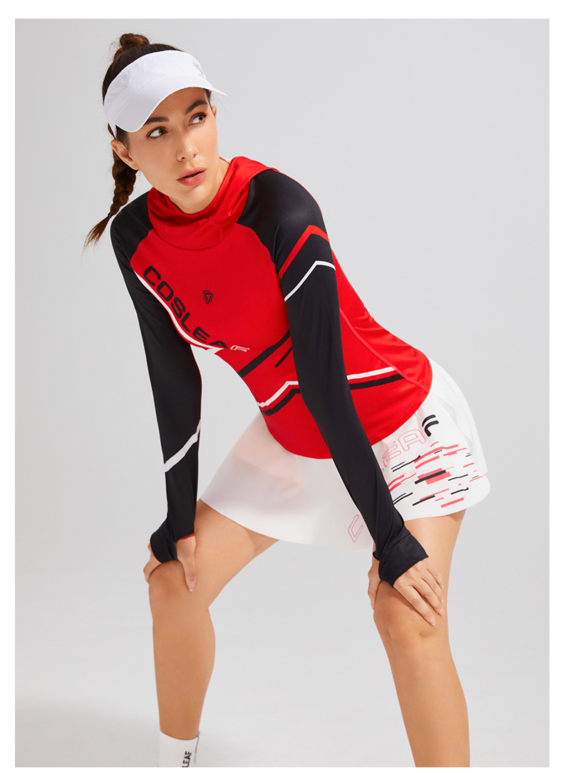 科里芙 新款连帽指套长袖户外运动跑步健身T恤时尚透气上衣