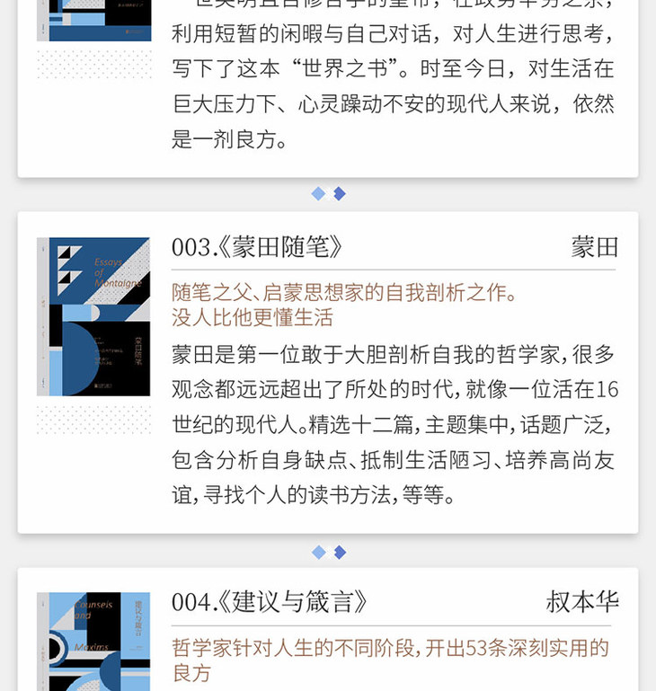 1.思想巨著,只取精华。选自哲学家皇帝奥勒留代表作精华篇章,看他在戎马生涯中每日提醒自己,给读者以启发和思考。