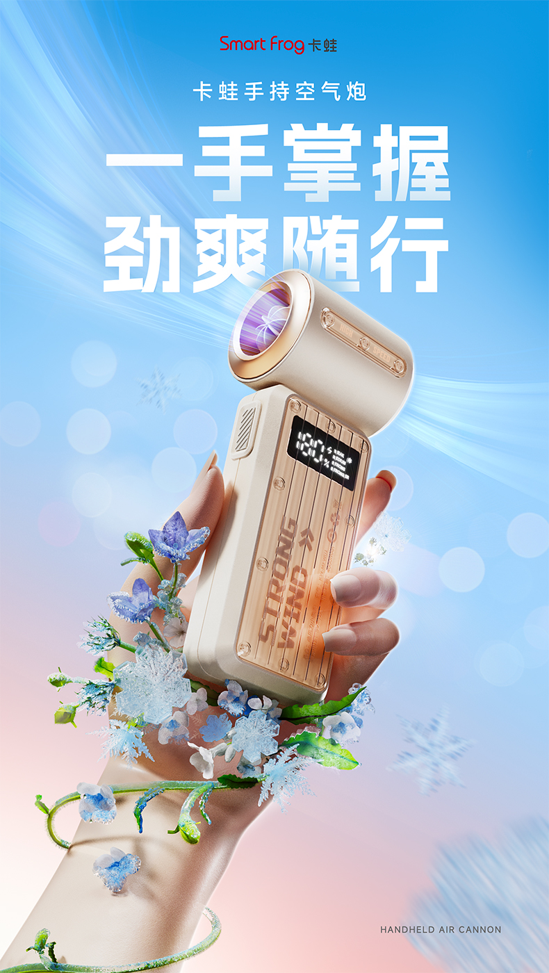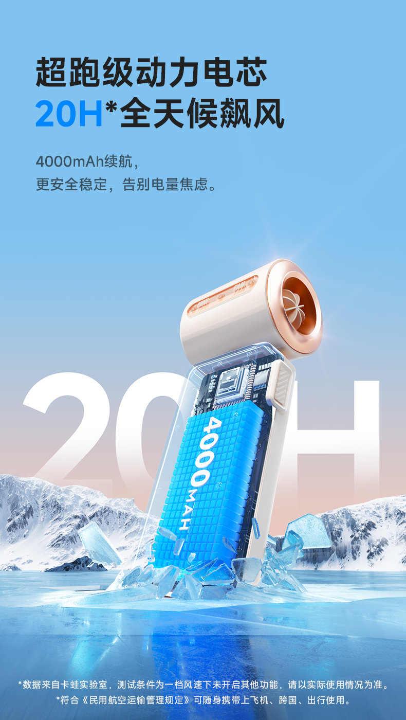 【巴掌大小 快速降温】卡蛙 手持高速风扇 高速劲风 出风稳 速降温 LED数显 精控智能风感 175g久持不累手 20H超长续航 KW-MFW01