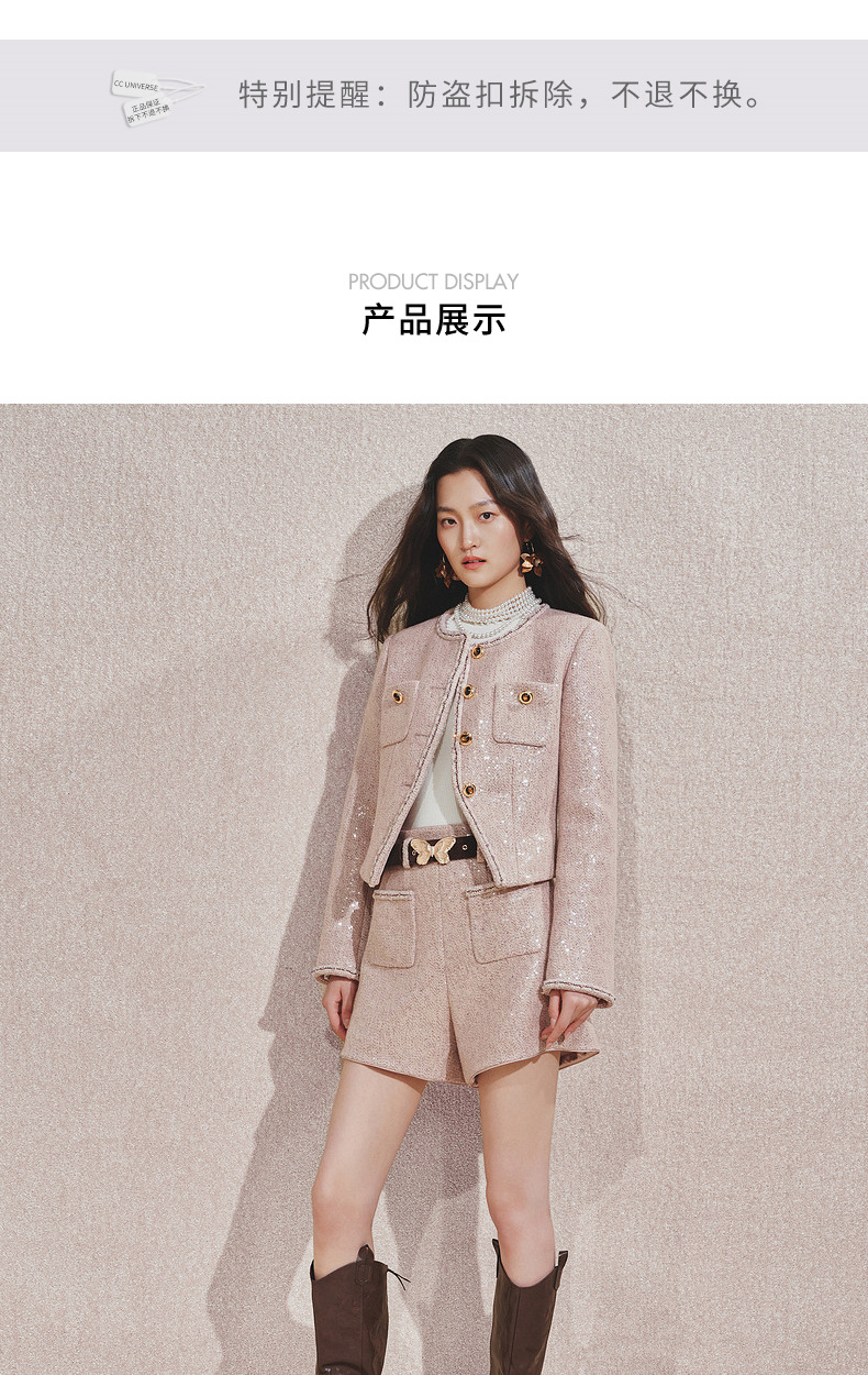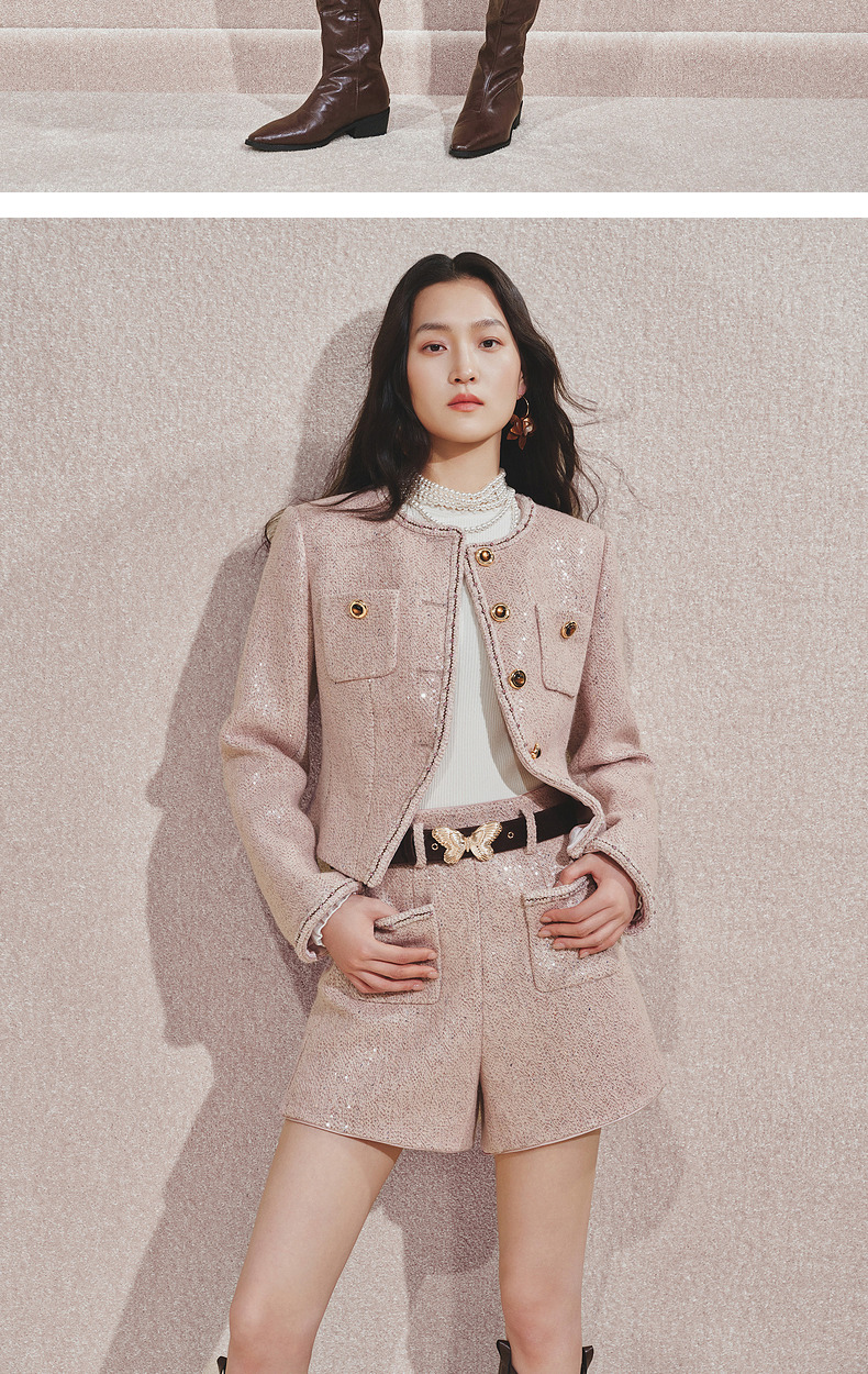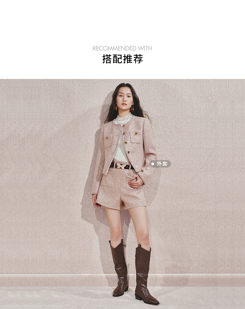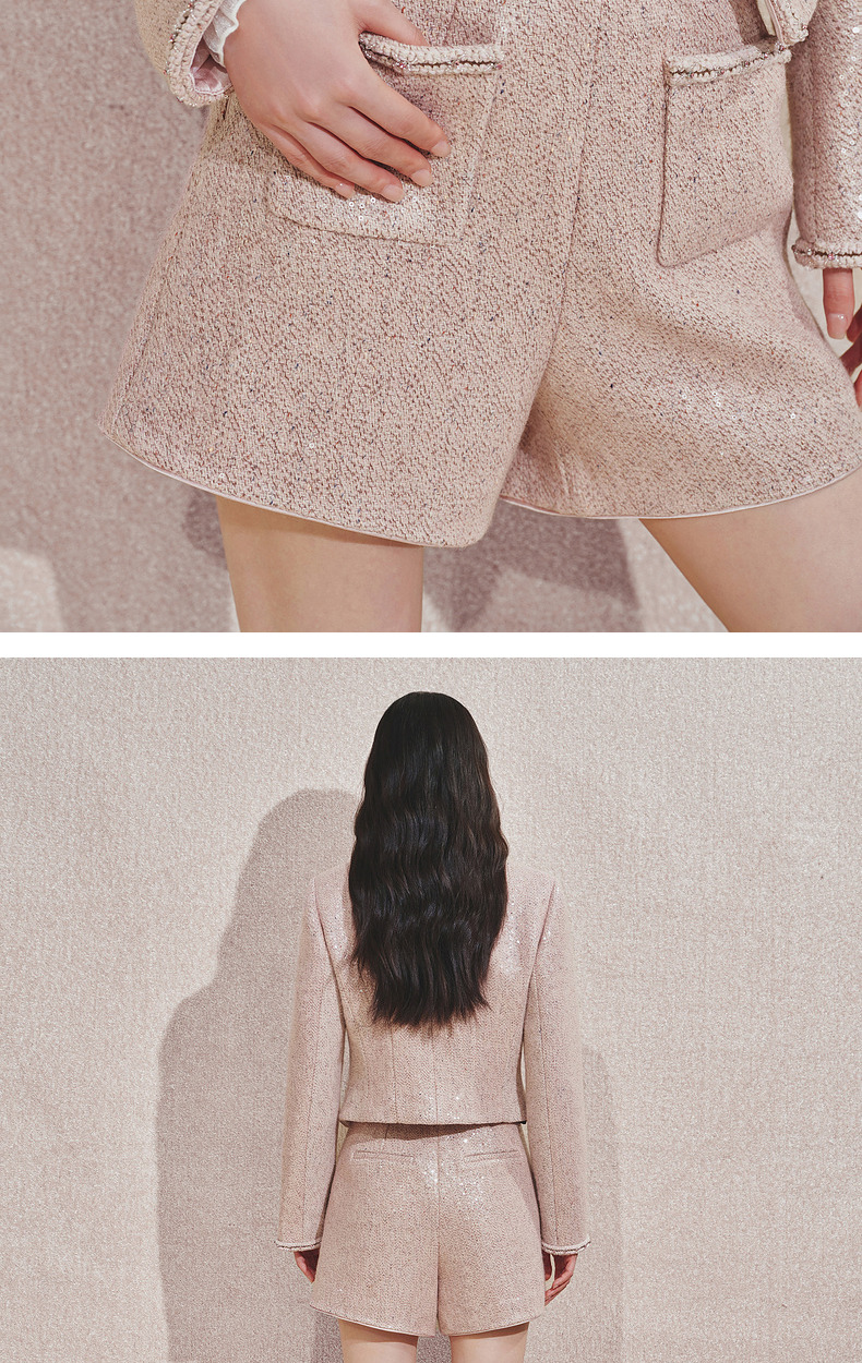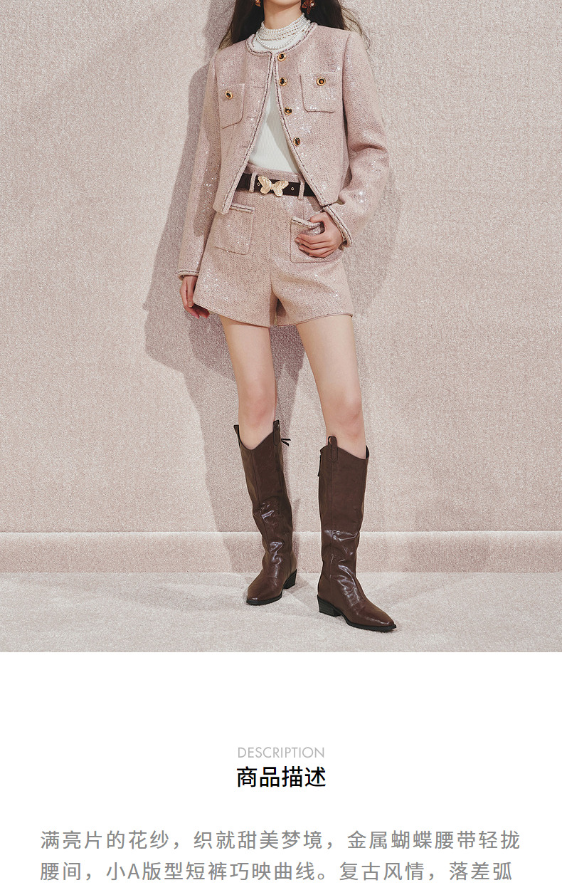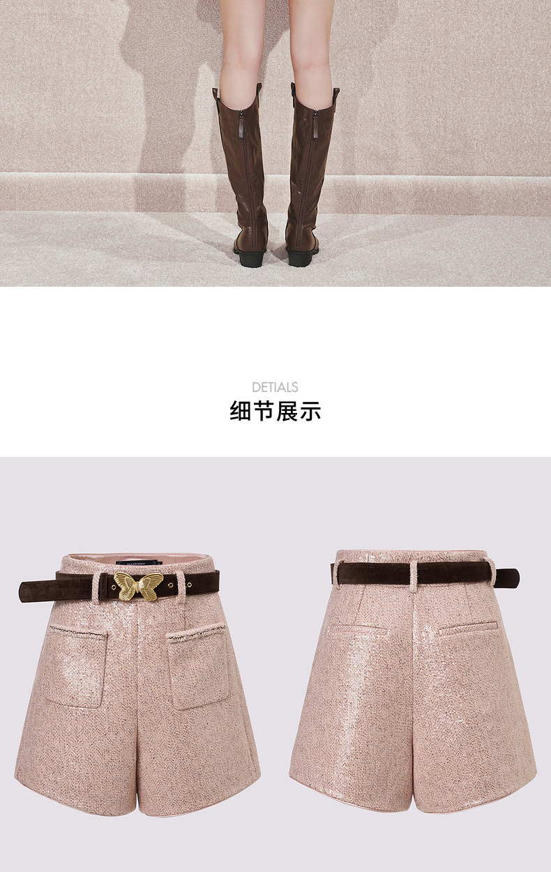 MAXRIENY复古甜美风小A亮片金蝴短裤2024秋冬新款高级气质感女装(货号:MC85PA501)