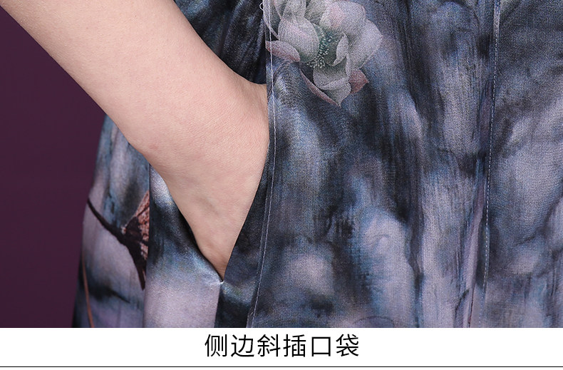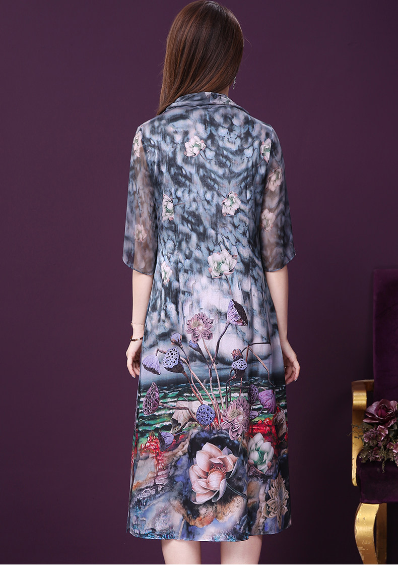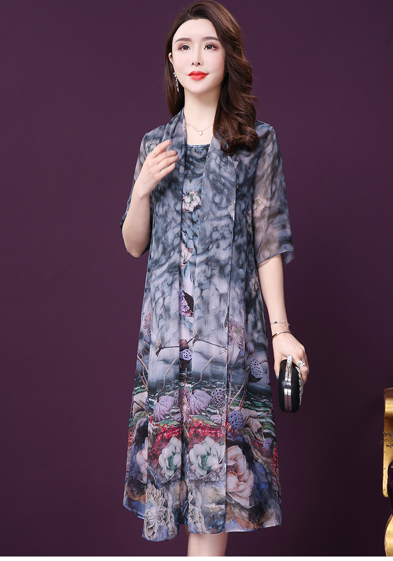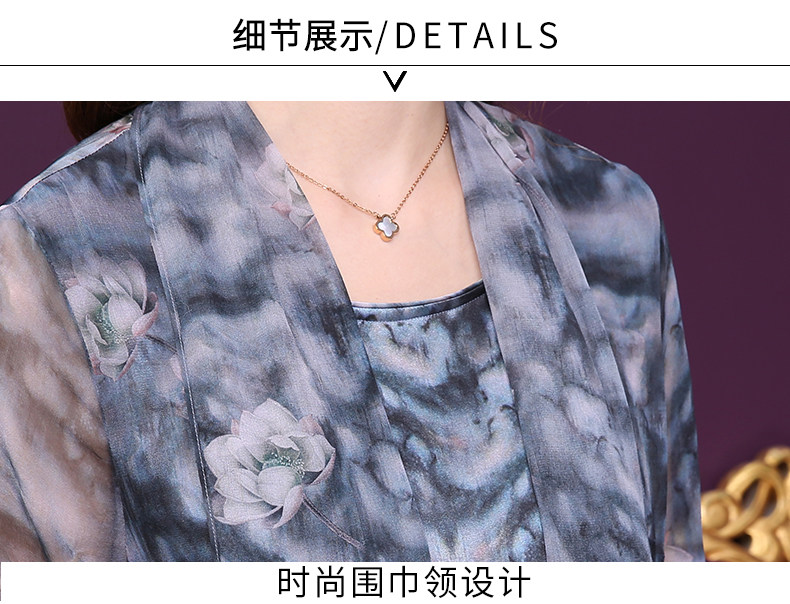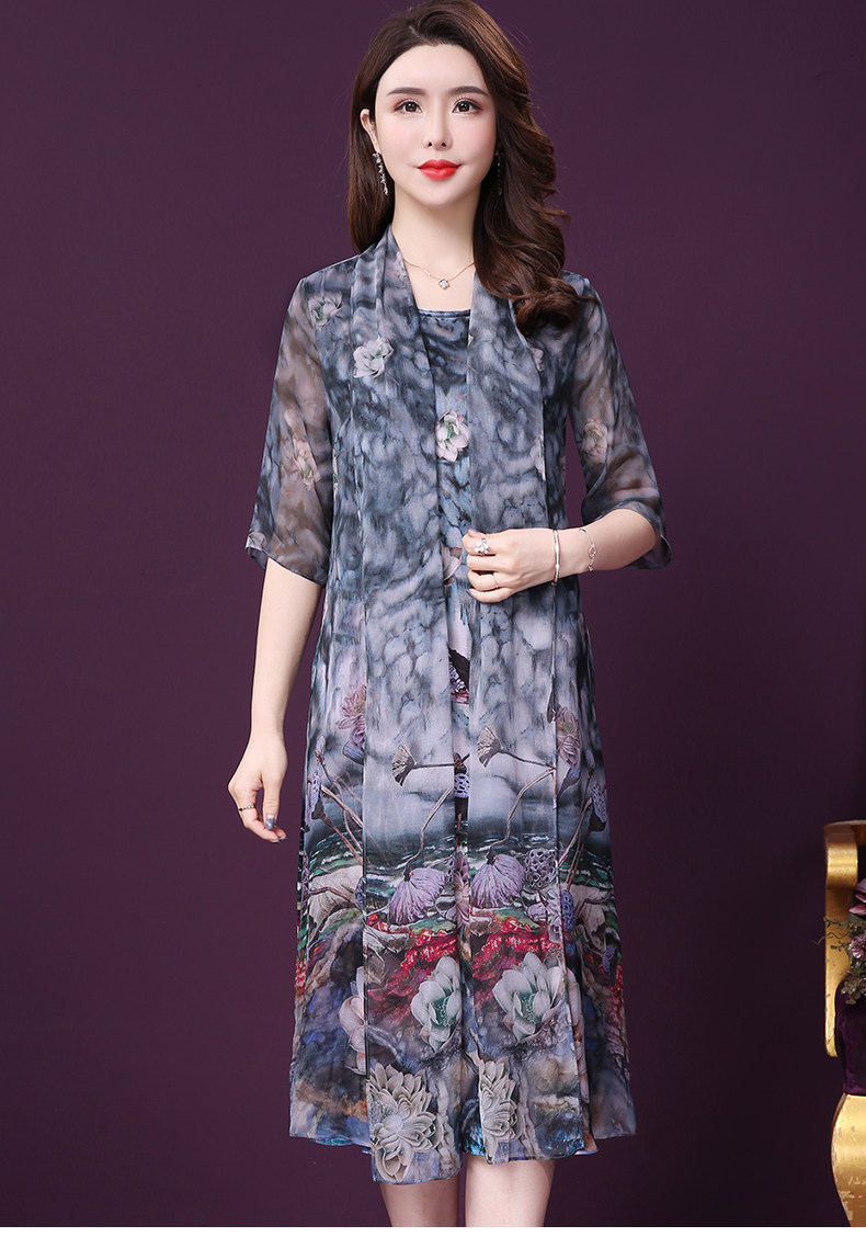 WXY-19010新款假两件五分袖桑蚕丝大码妈妈重磅真丝连衣裙