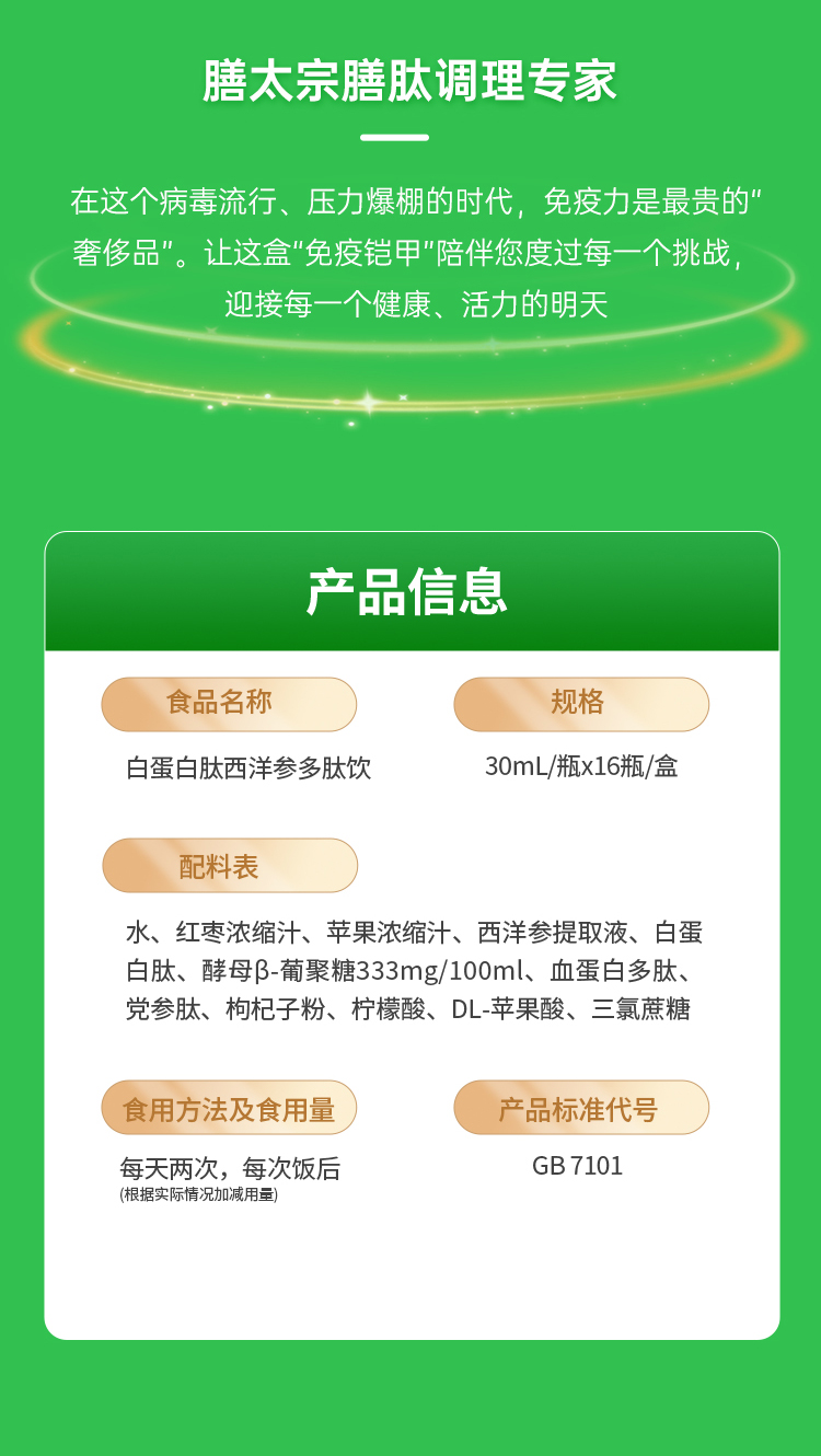 膳太宗-白蛋白肽西洋参多肽饮 480ml (30ml×16瓶)