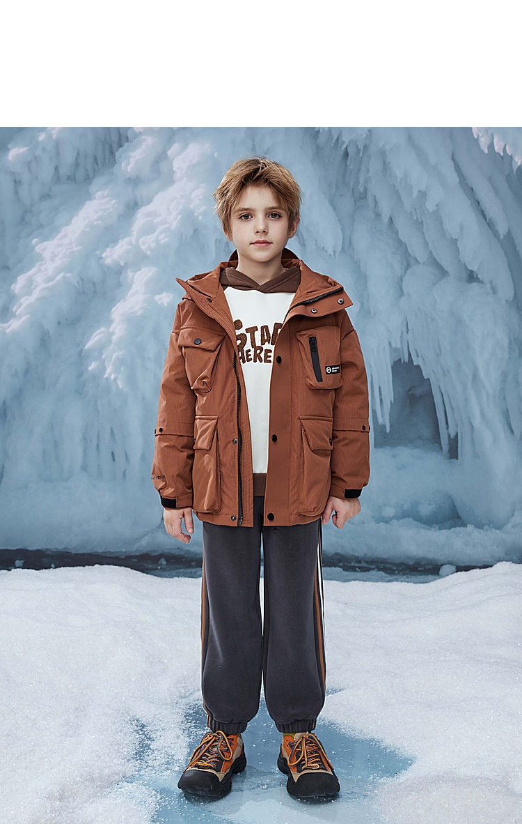 【MQD】【170】【设计师系列】男童羽绒服冬新款连帽工装超厚保暖中长