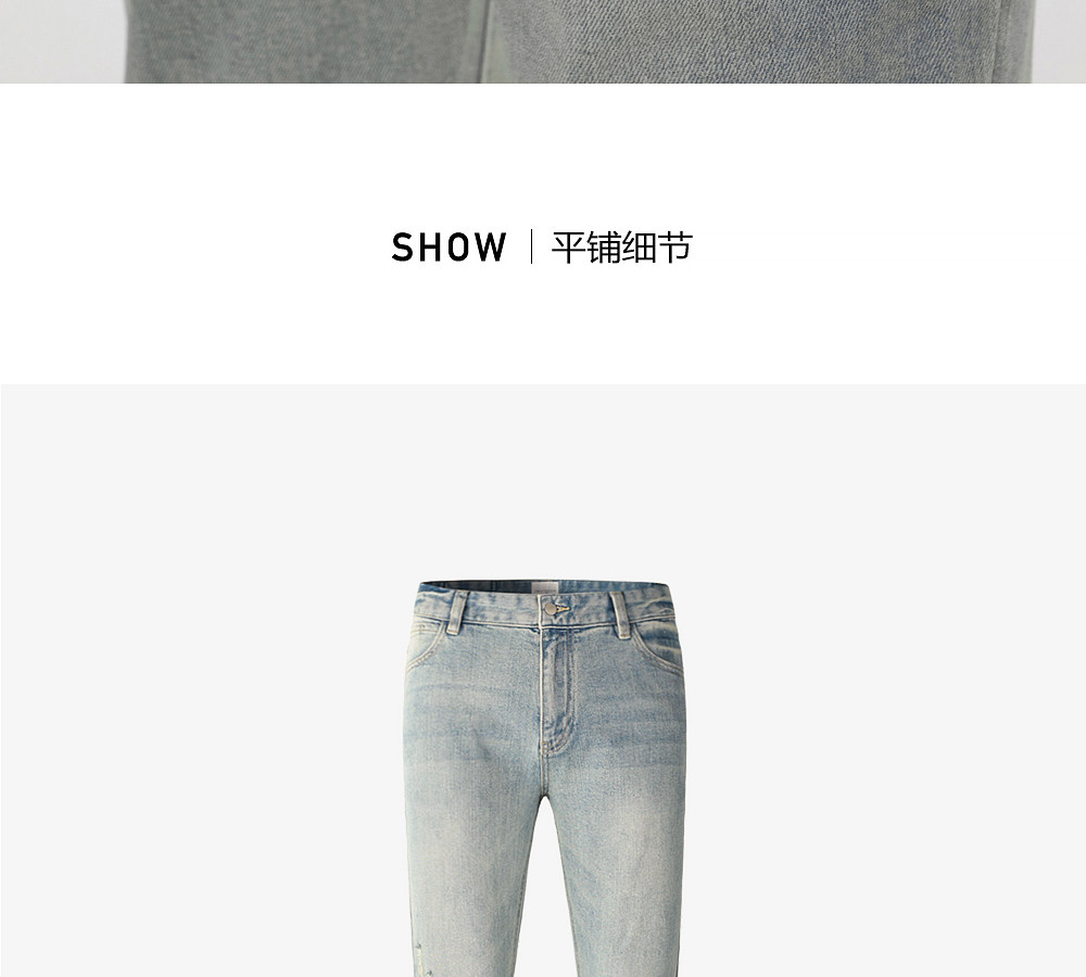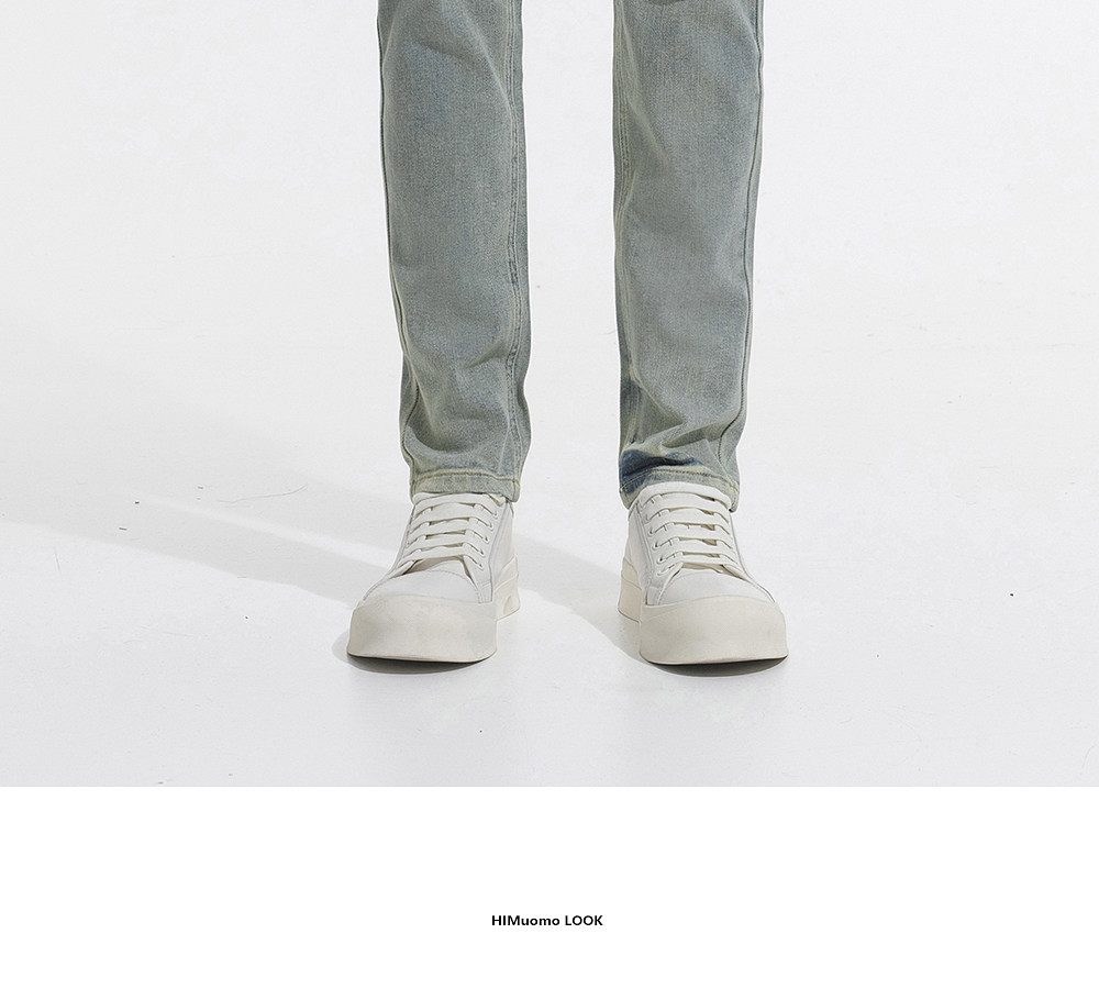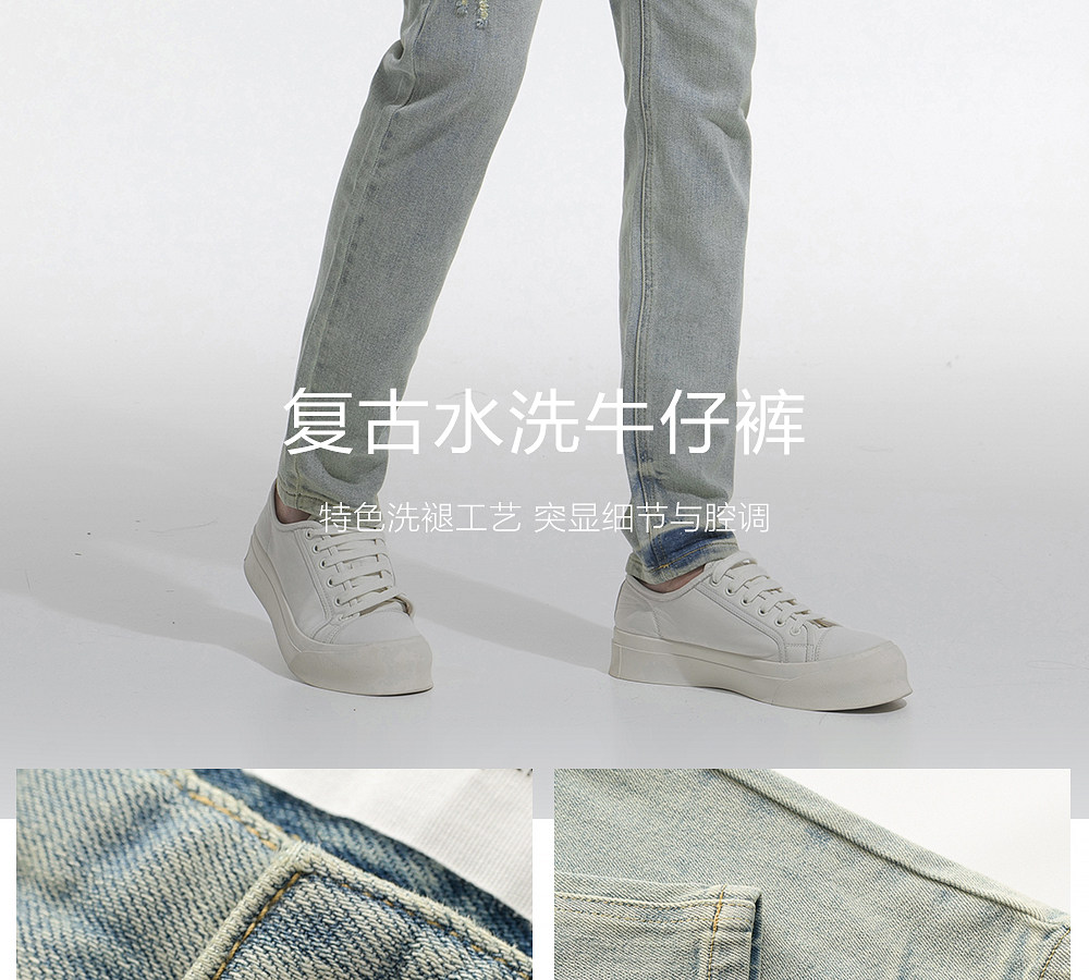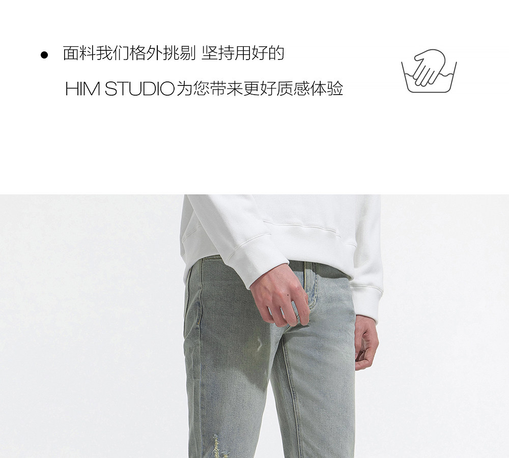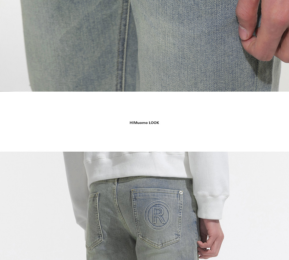 HIM漢崇 淡蓝色水洗锥形显瘦小脚牛仔裤男【后袋压印】 2025冬季