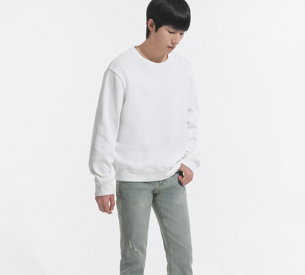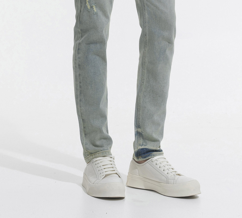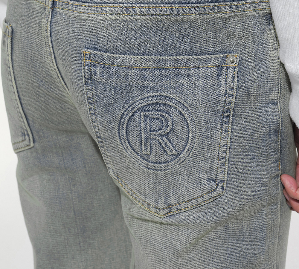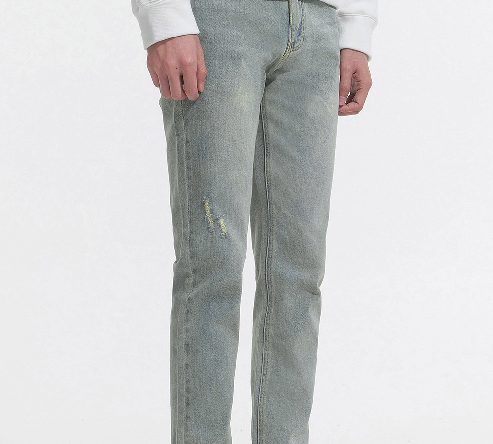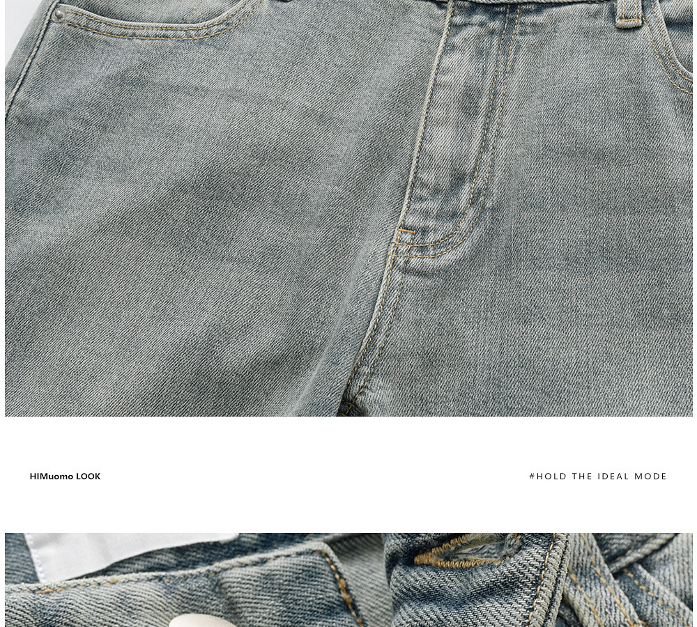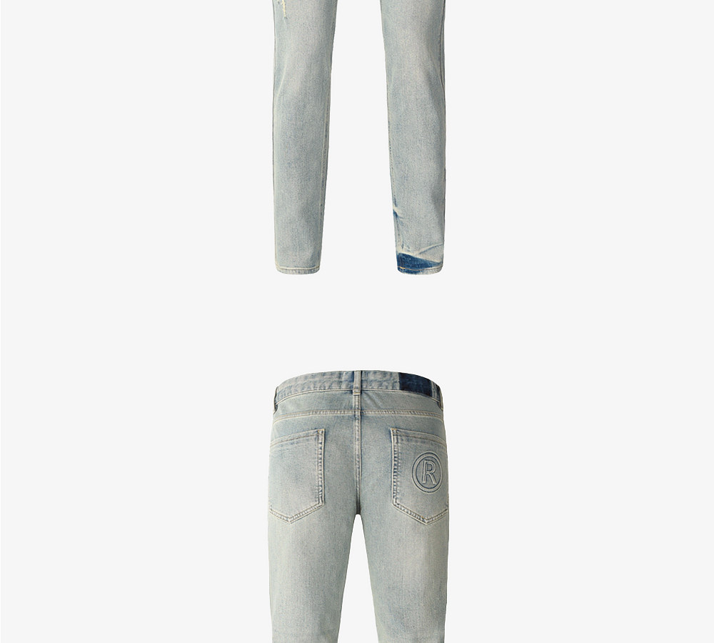 HIM漢崇 淡蓝色水洗锥形显瘦小脚牛仔裤男【后袋压印】 2025冬季