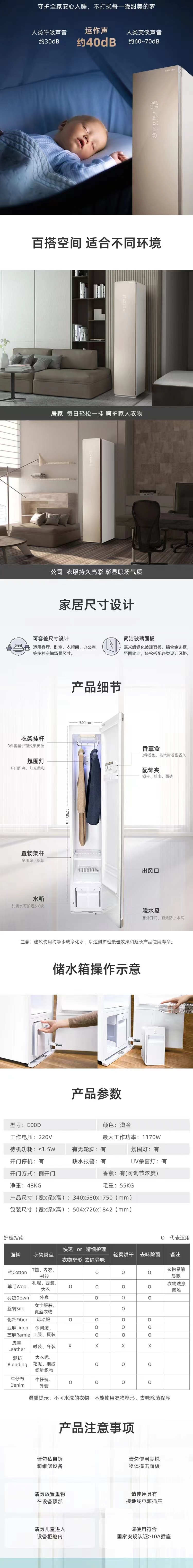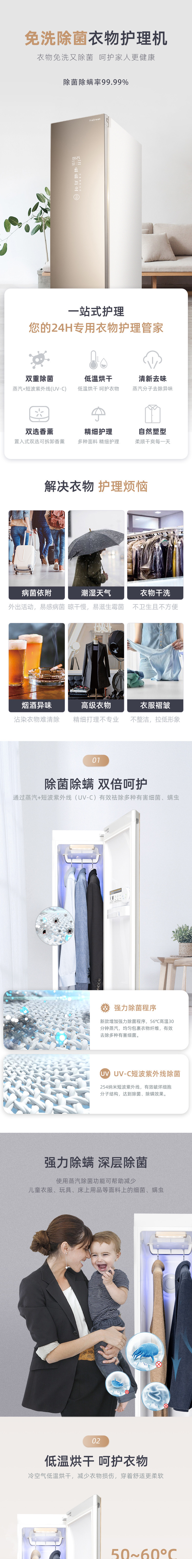 斐郡/FreDream 智能衣物护理机 烘干机家用 干衣机衣服干洗蒸汽熨烫除菌机 紫外线杀菌消毒 E00D 浅金色(直排式烘干方式)