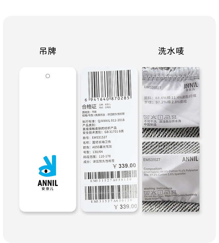 男女童圆领长袖卫衣秋季新款安奈儿童装EM531527