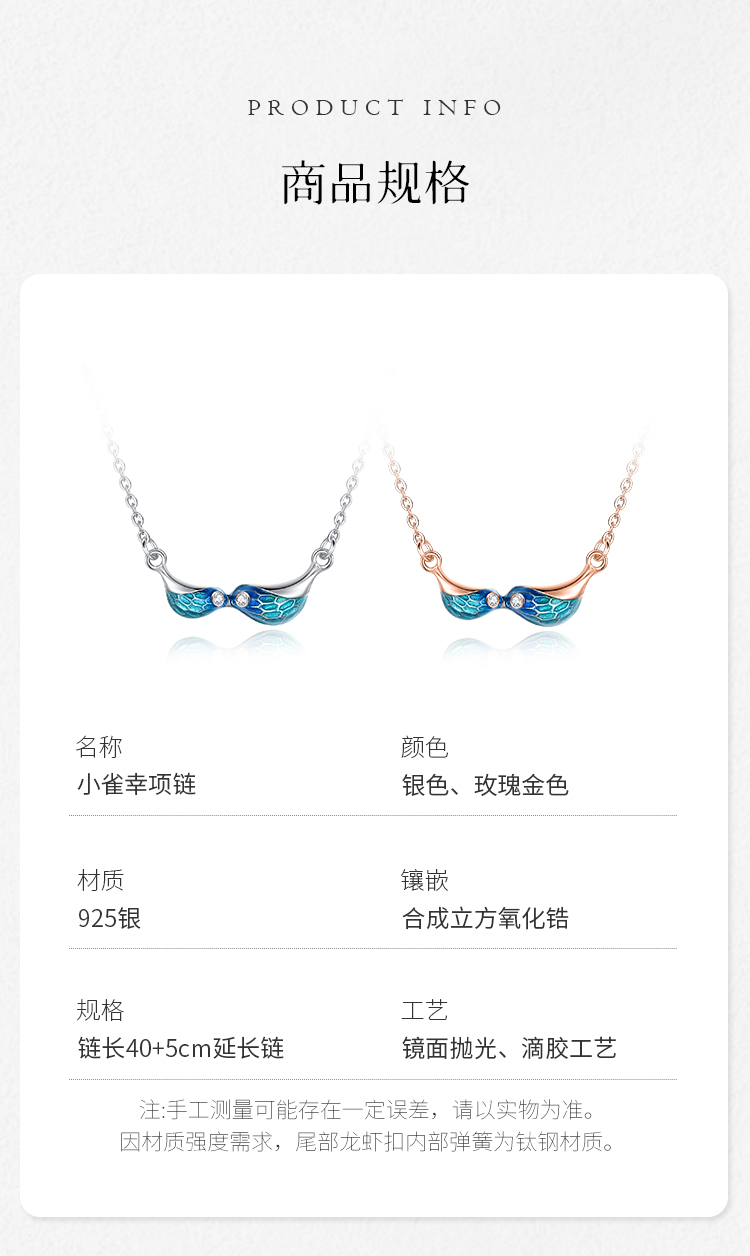Winy925纯银小雀幸项链送女友闺蜜节日生日礼物