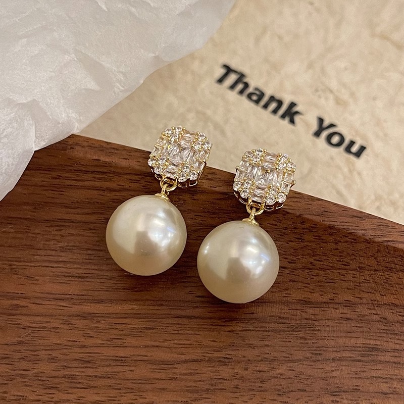 雀说 锆石水晶珍珠耳钉高级感法式耳环  RH022 商品图0