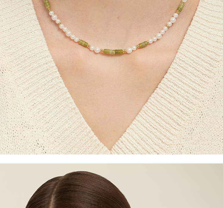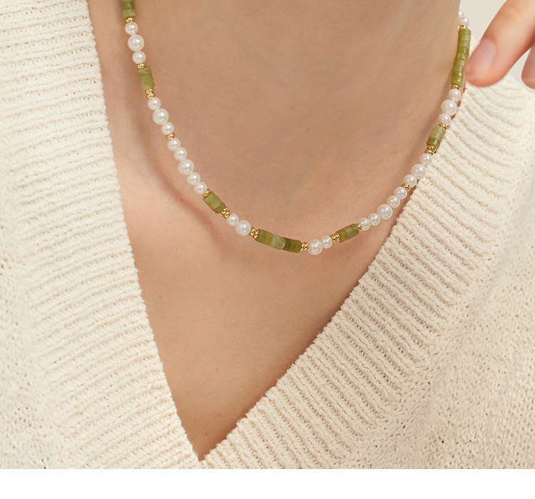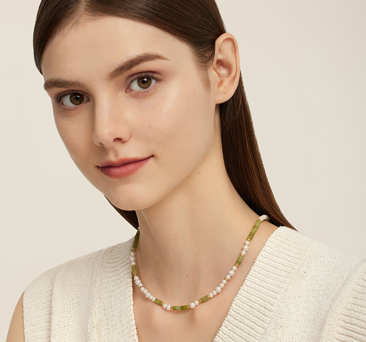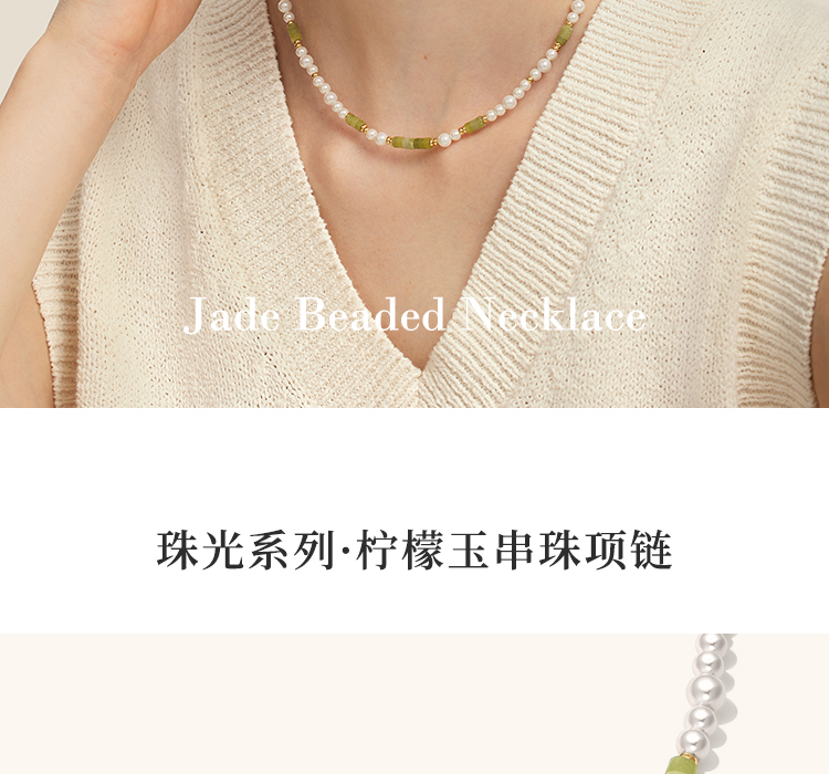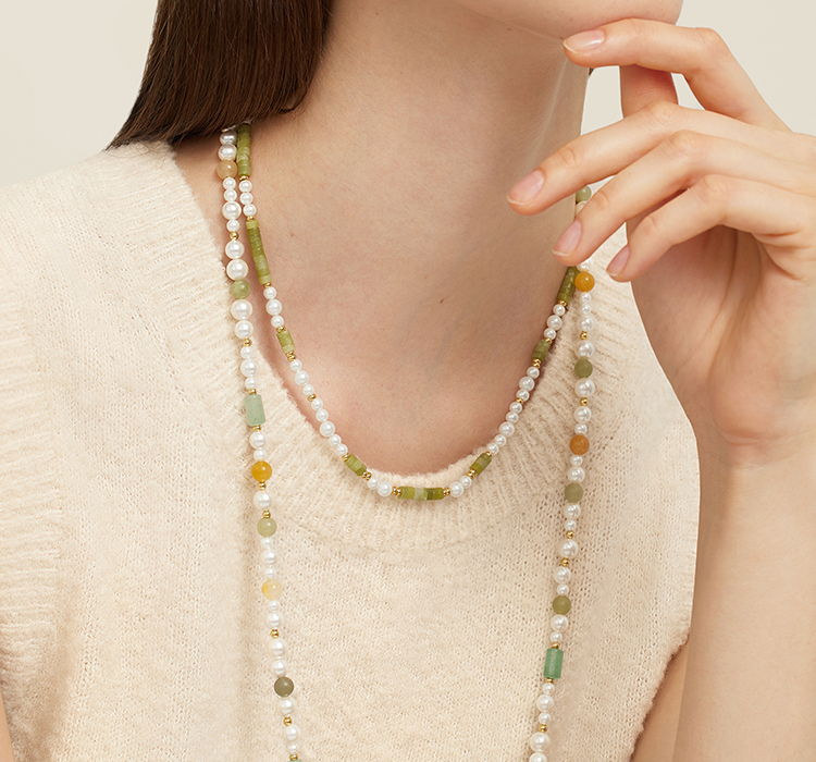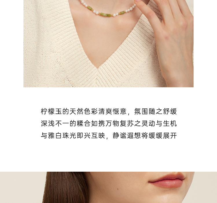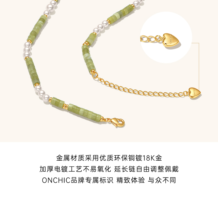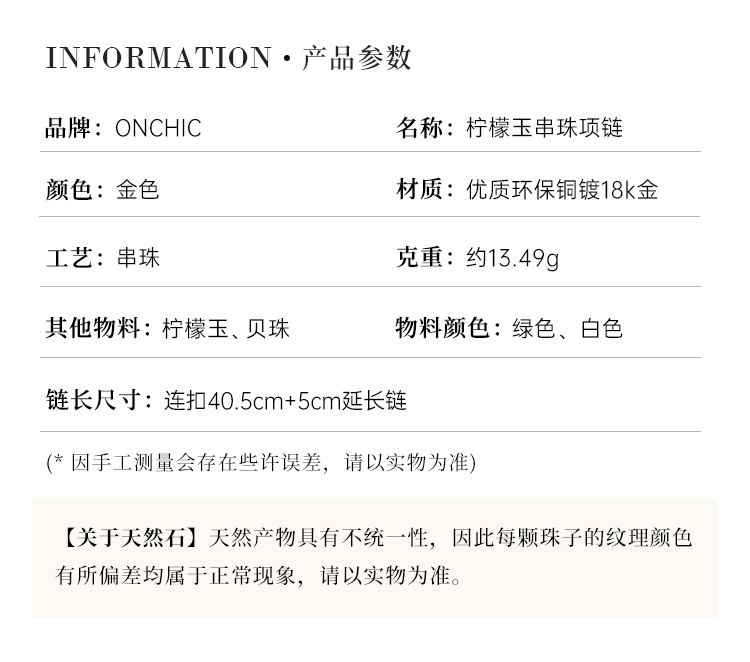 Onchic 柠檬玉串珠项链女天然玉石珍珠毛衣链小众设计感锁骨链