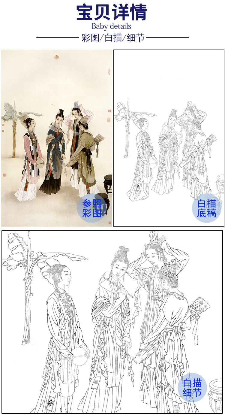 王美芳竖幅工笔传统仕女人物白描底稿《人间四月天》-多种白描尺寸可选-B172
