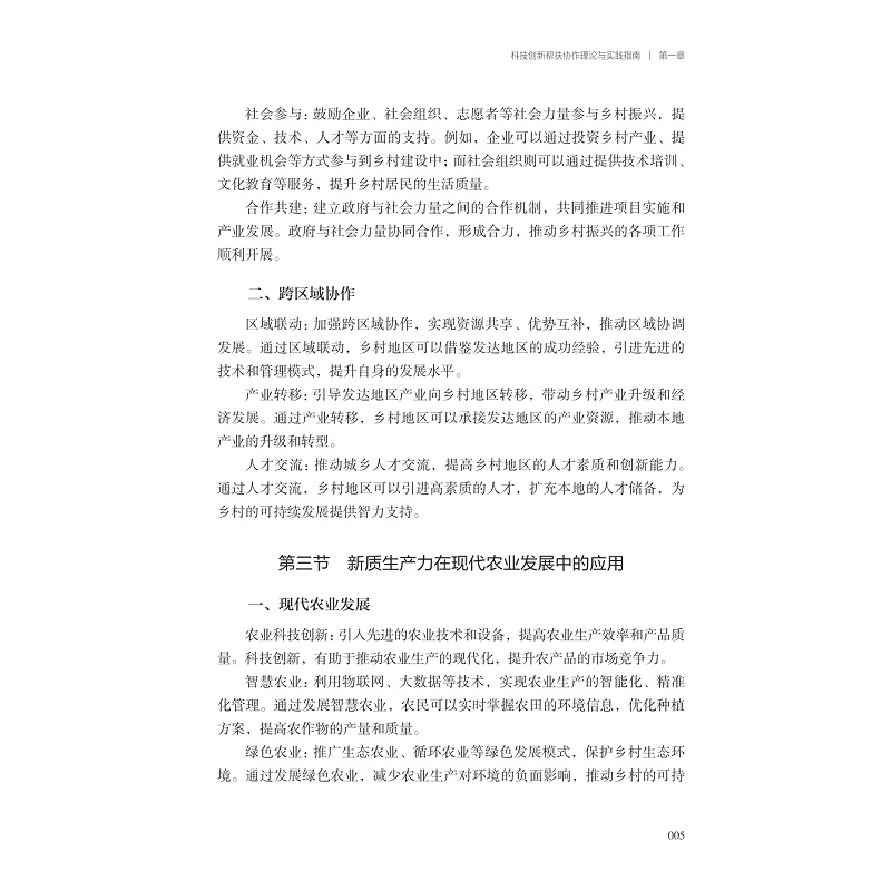 第一,本书阐述了新质生产力的内涵、特征及其与传统生产力的区别,进而分析了新质生产力在乡村振兴中的重要作用和意义。
