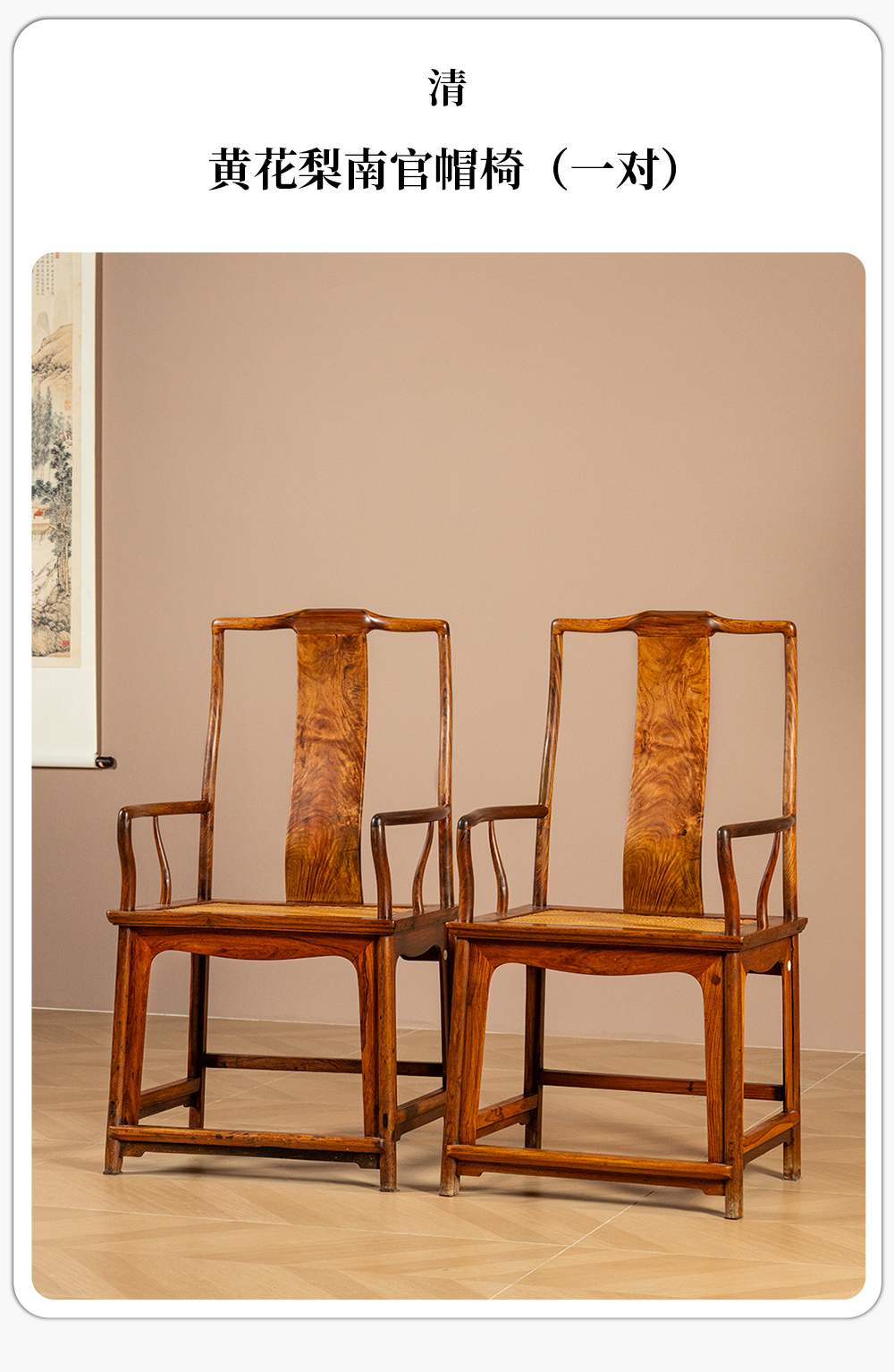 清 黄花梨南官帽椅(一对)