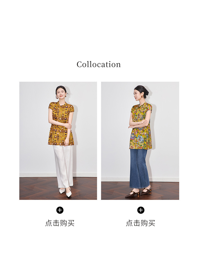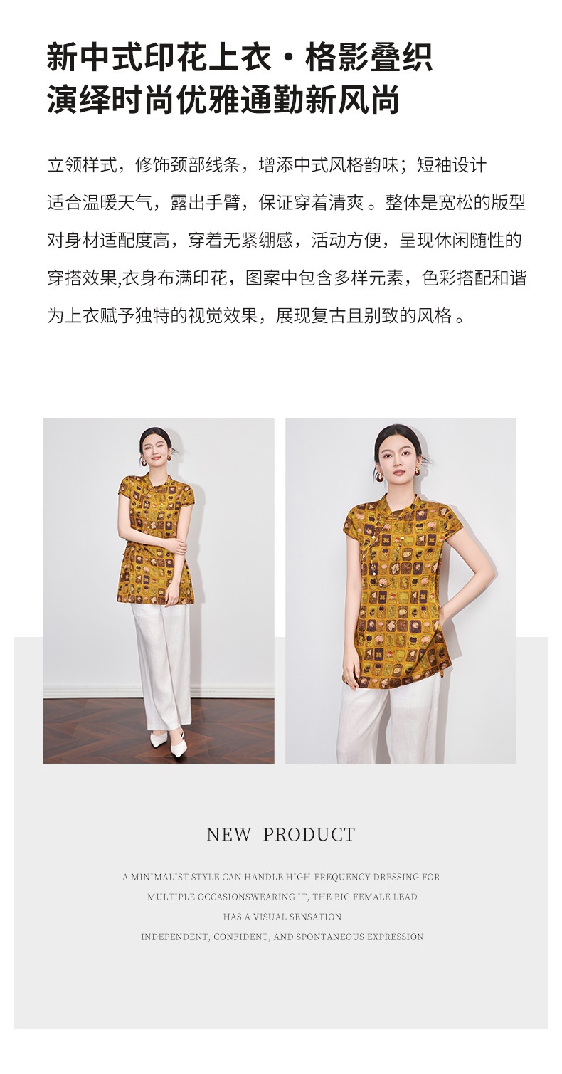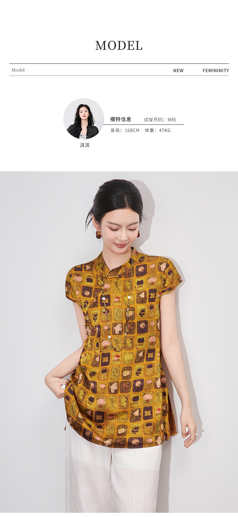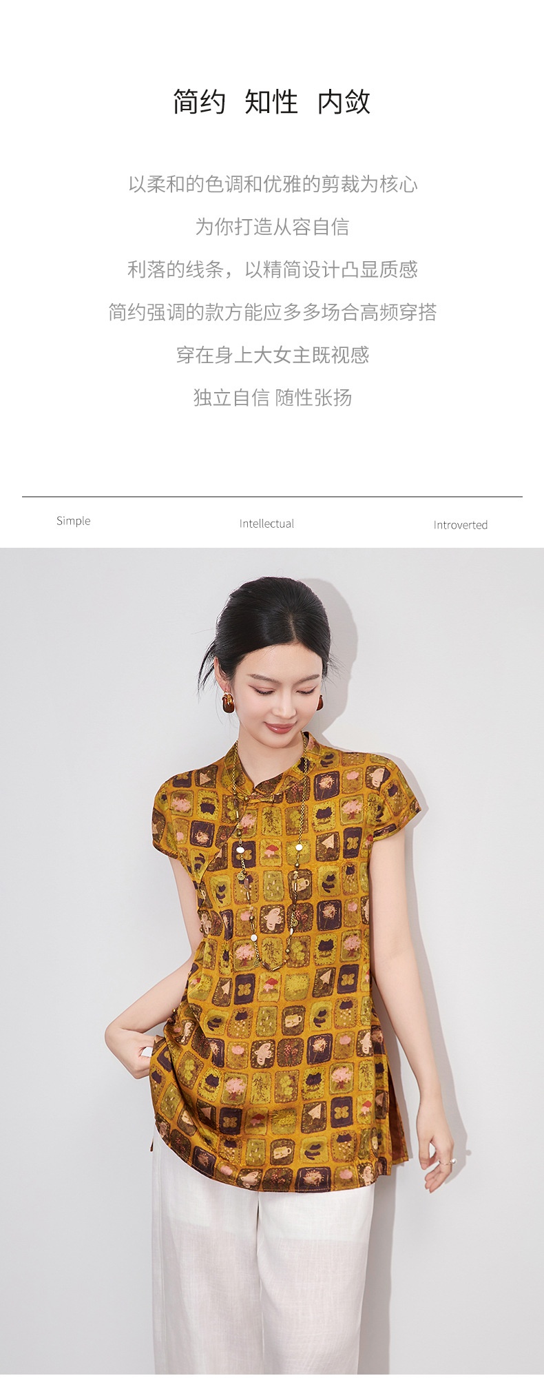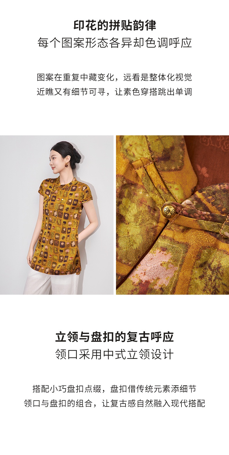 「高货wl」全新升级【铂金会员339/天猫459/差价120】(02751)洛诗琳新中式人丝香云纱印花上衣2025夏季复古国风衬衫女