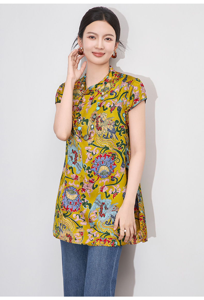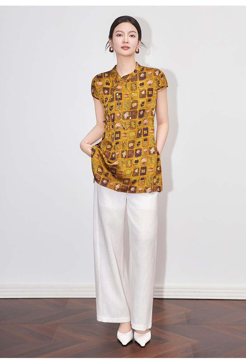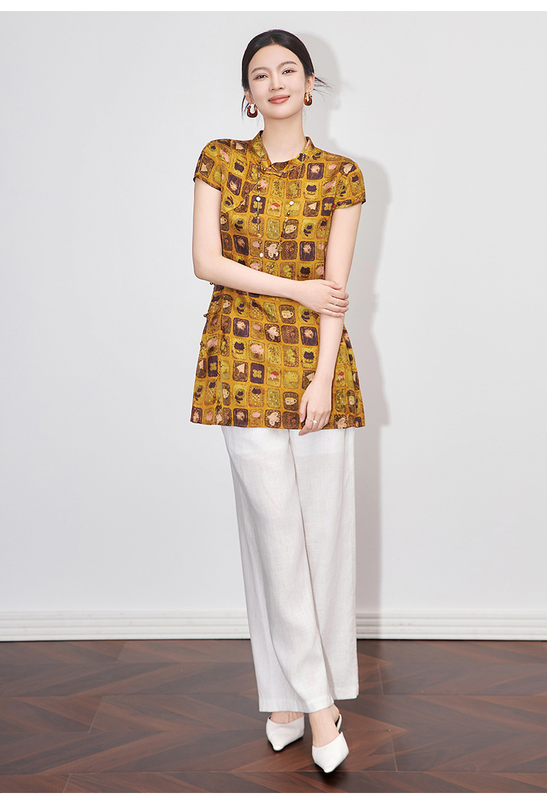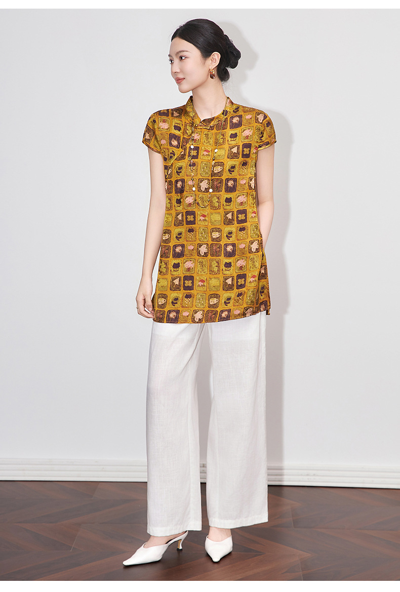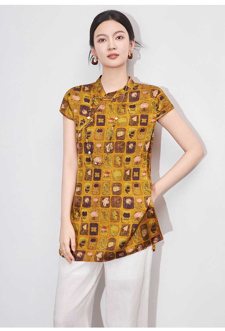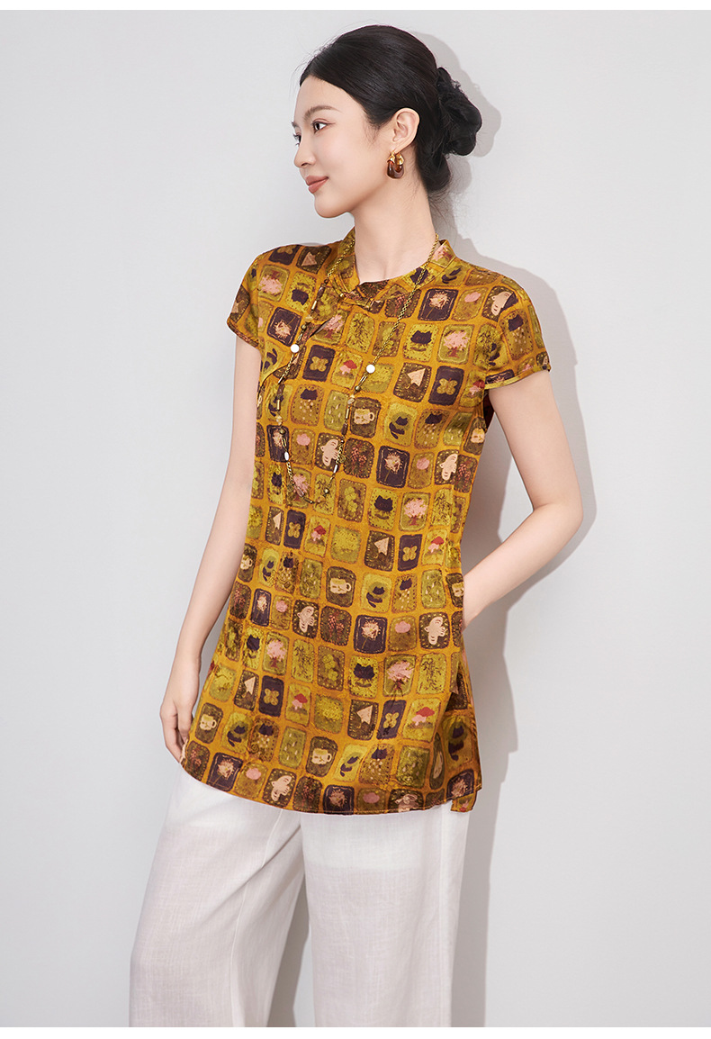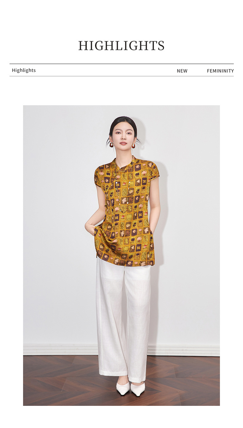 「高货wl」全新升级【铂金会员339/天猫459/差价120】(02751)洛诗琳新中式人丝香云纱印花上衣2025夏季复古国风衬衫女