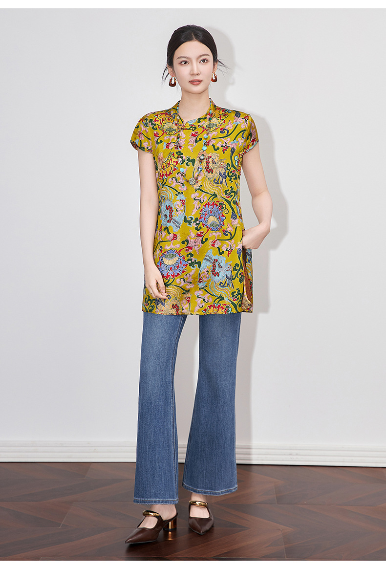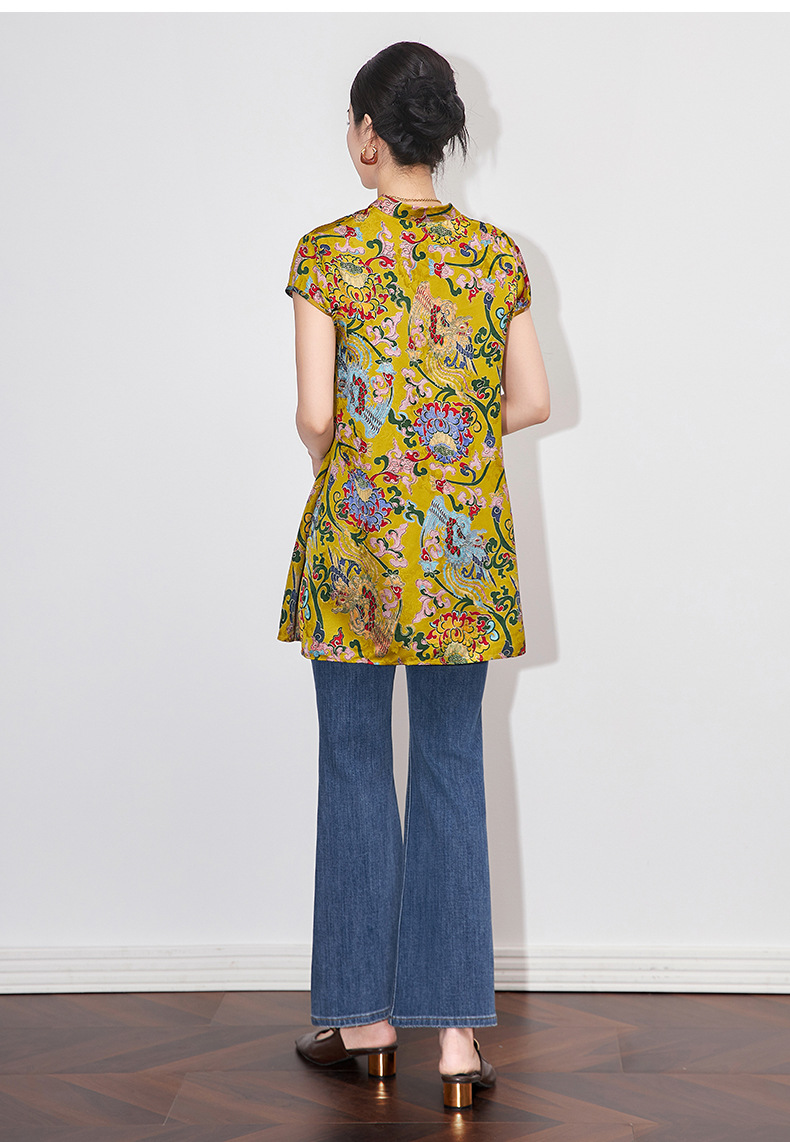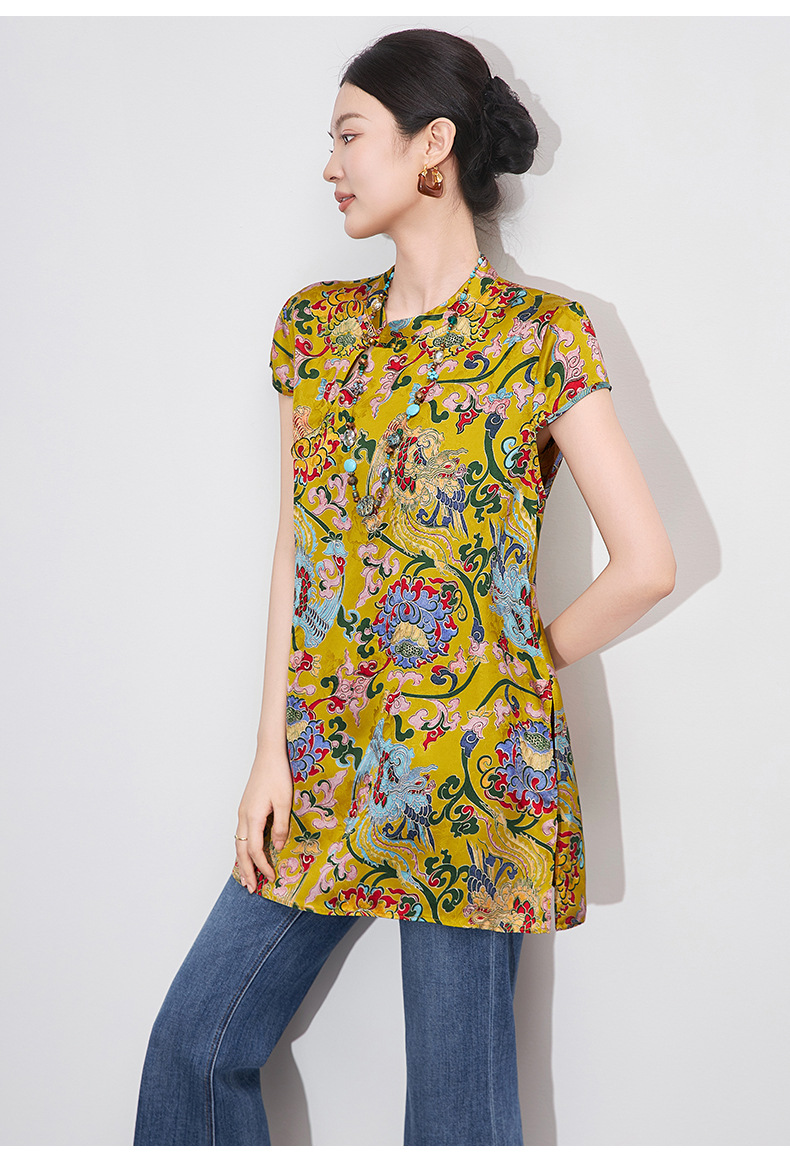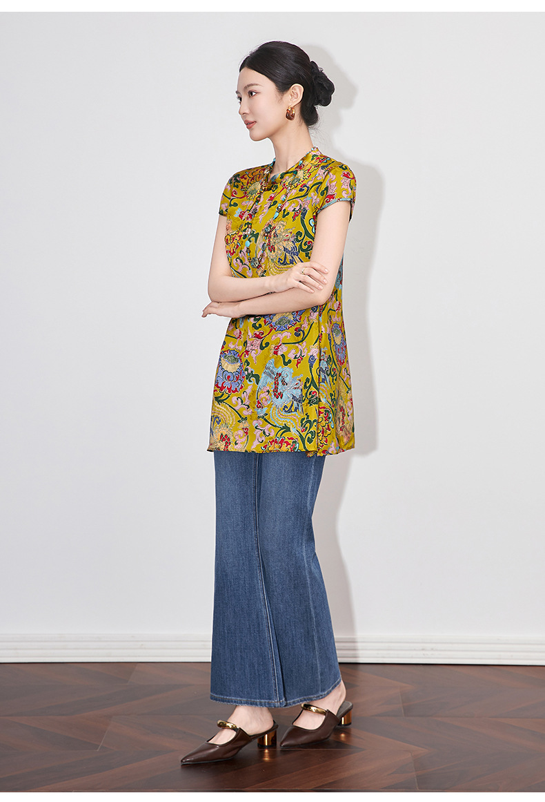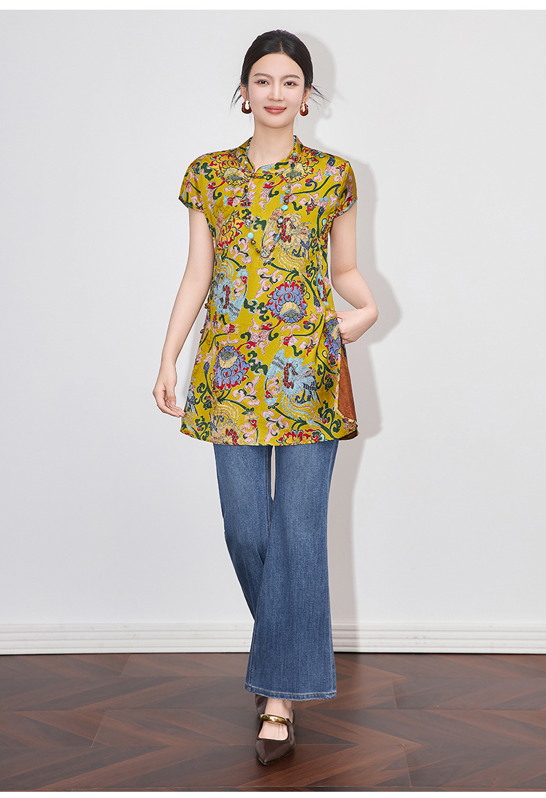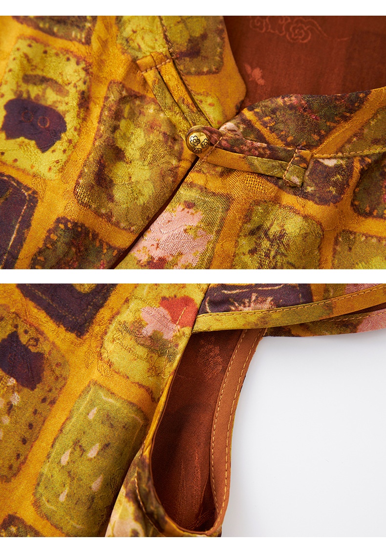 「高货wl」全新升级【铂金会员339/天猫459/差价120】(02751)洛诗琳新中式人丝香云纱印花上衣2025夏季复古国风衬衫女