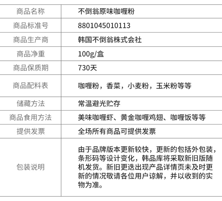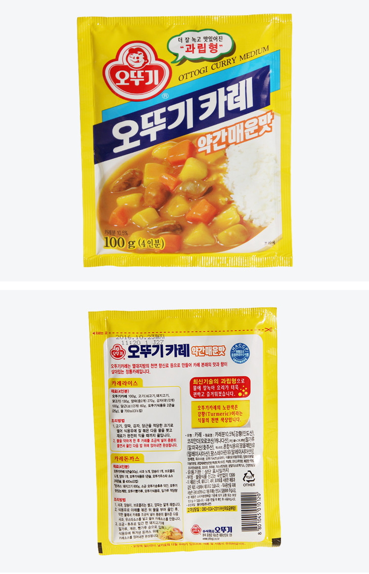 오뚜기카레약간매운맛不倒翁咖喱粉微辣100g