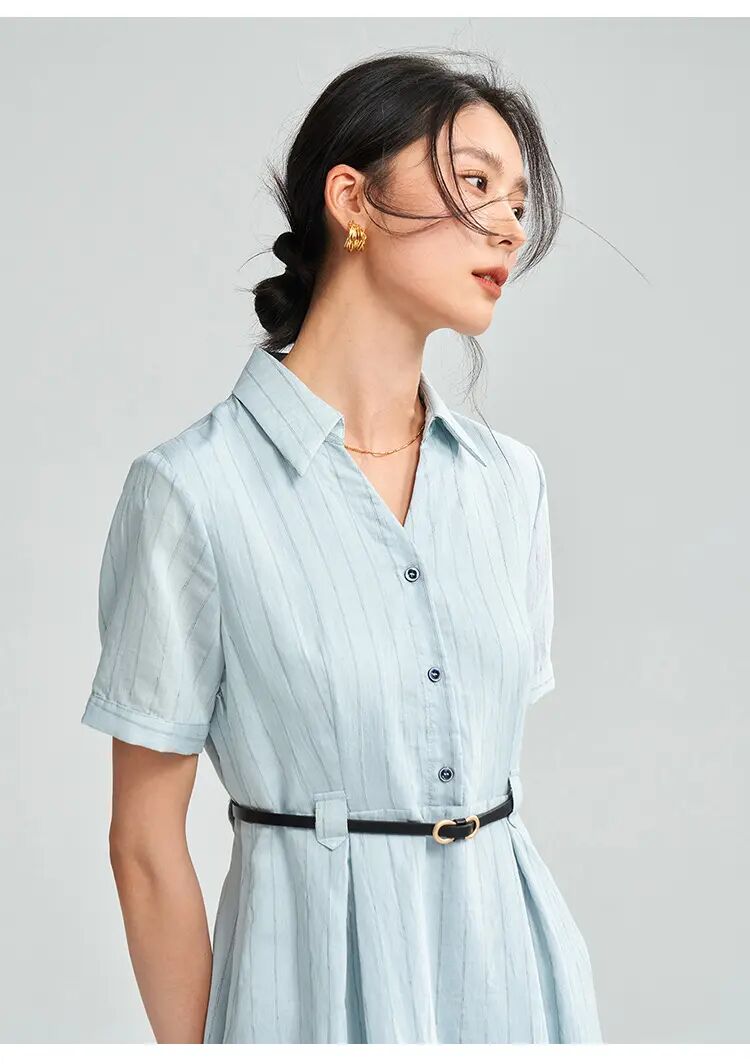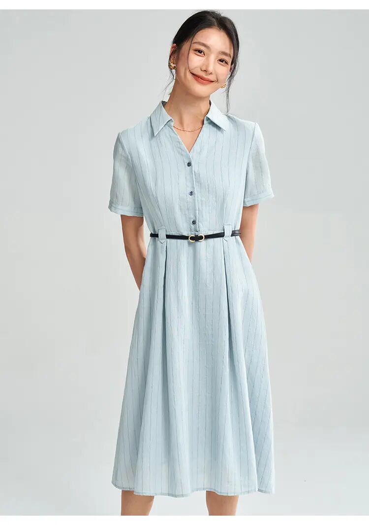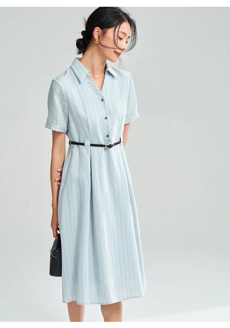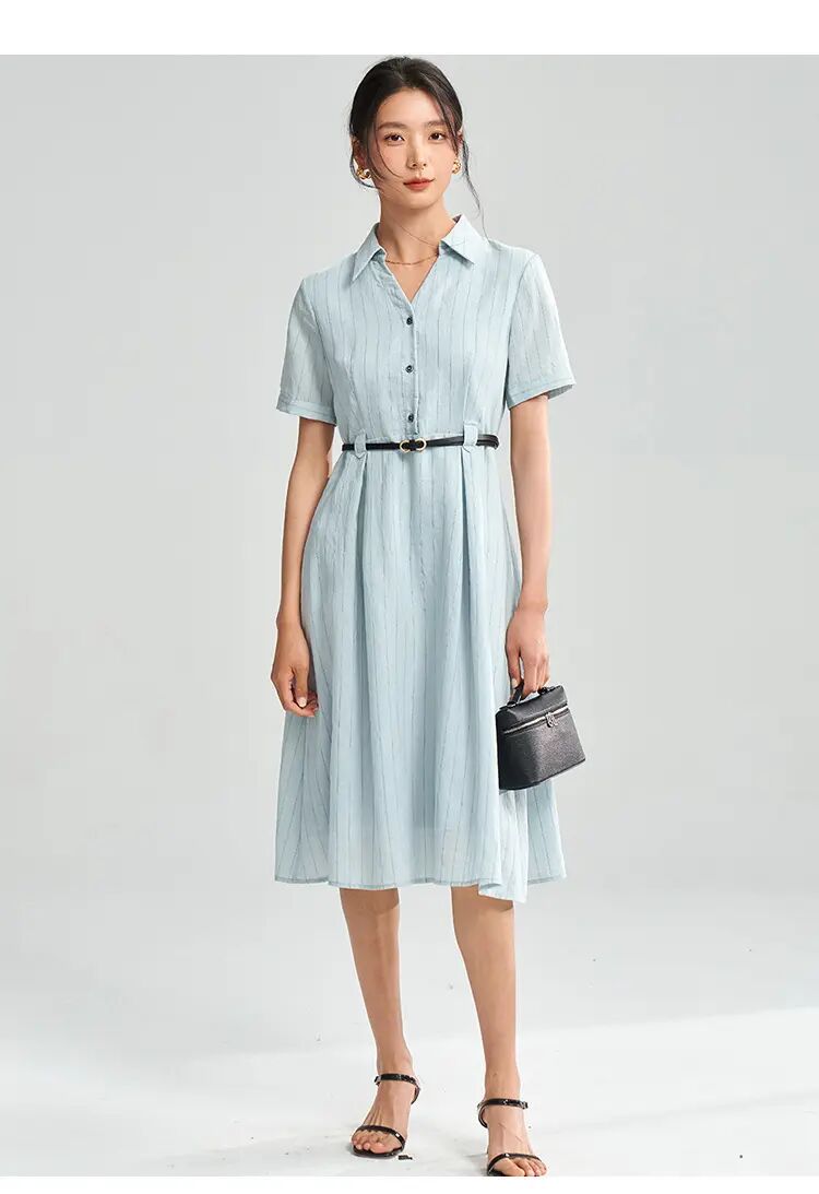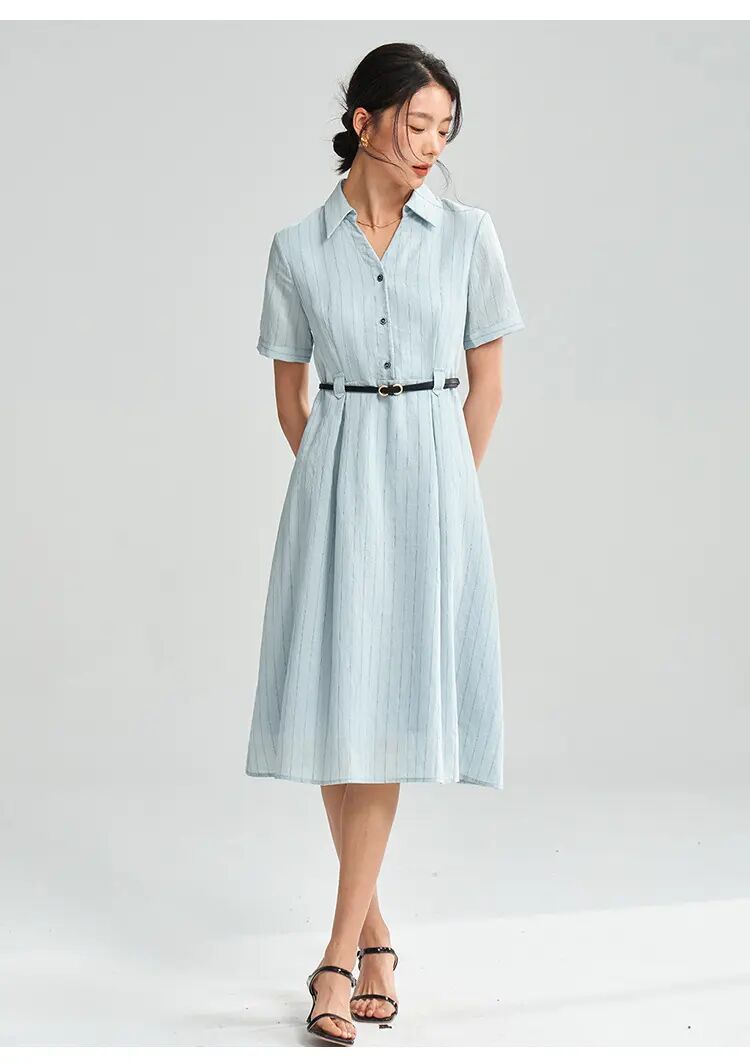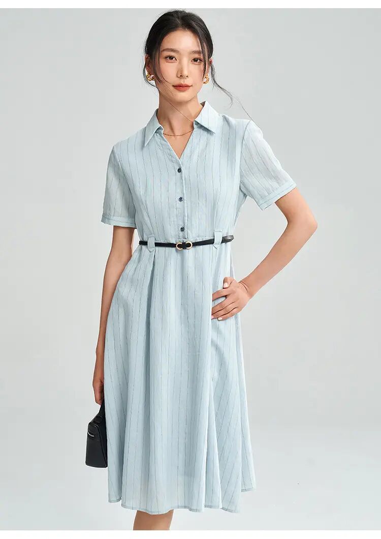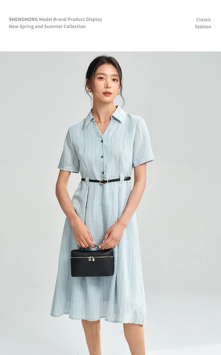 【高货sh】全新升级【铂金会员257/天猫339/差价82】(10522) 洛诗琳25新款复古条纹收腰连衣裙气质通勤大摆衬衫连衣裙