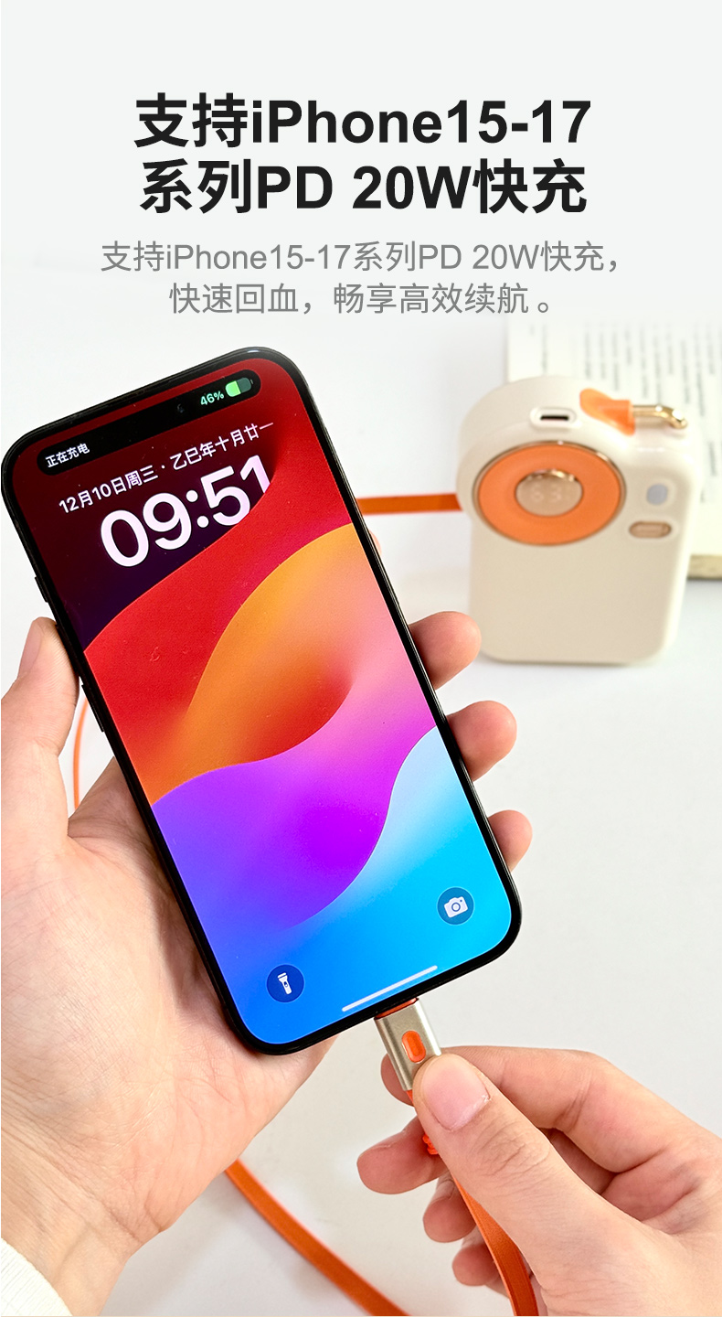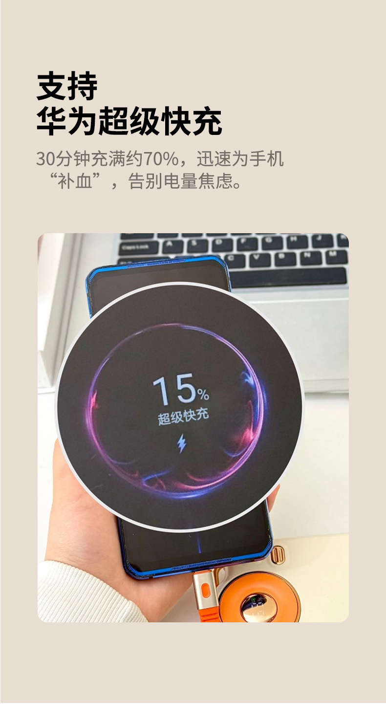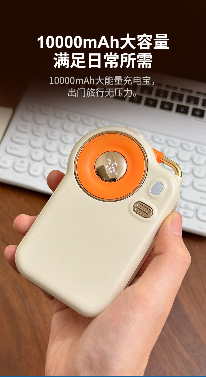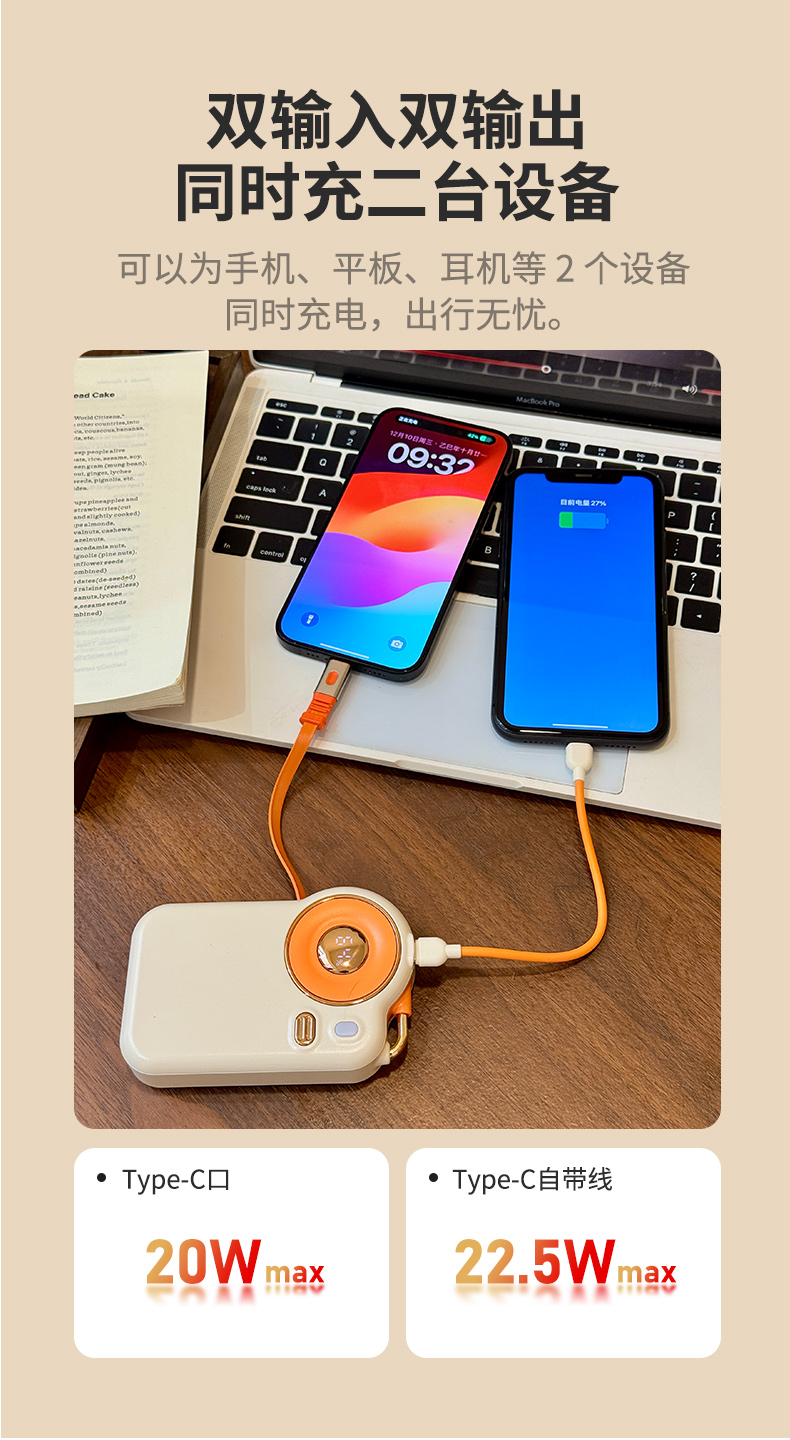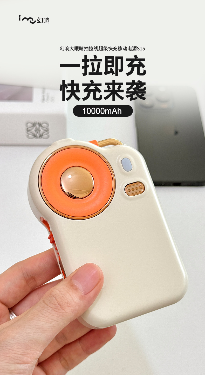 幻响S15大眼睛伸缩线快充移动电源22.5w快充电宝10000mAh聚合物白色轻薄便携大容量适用于小米苹果ml