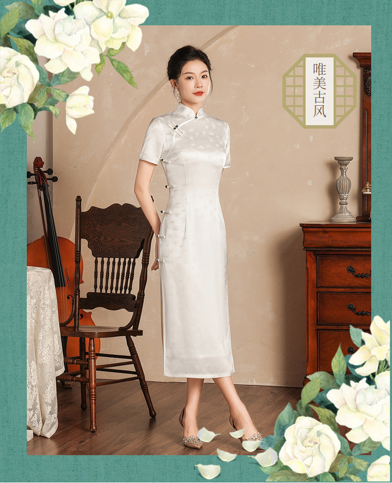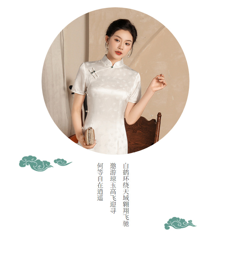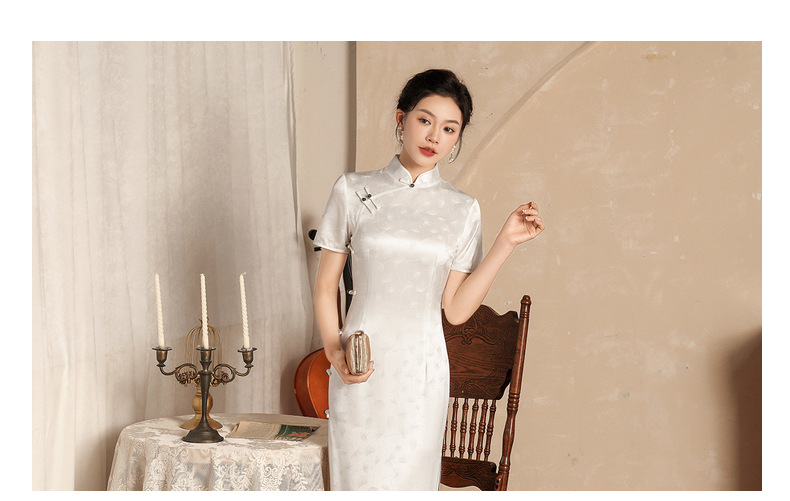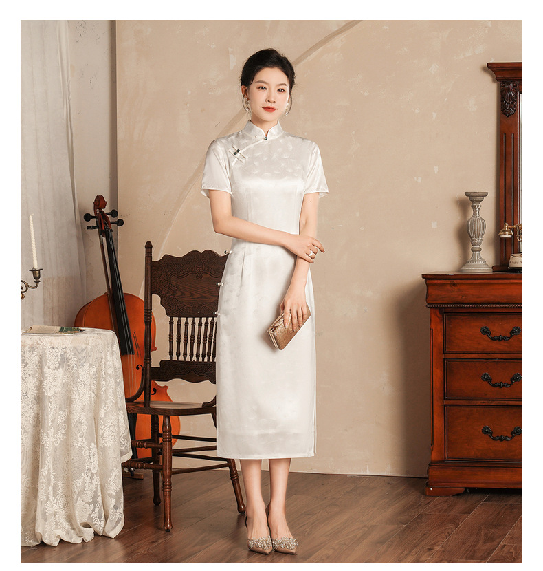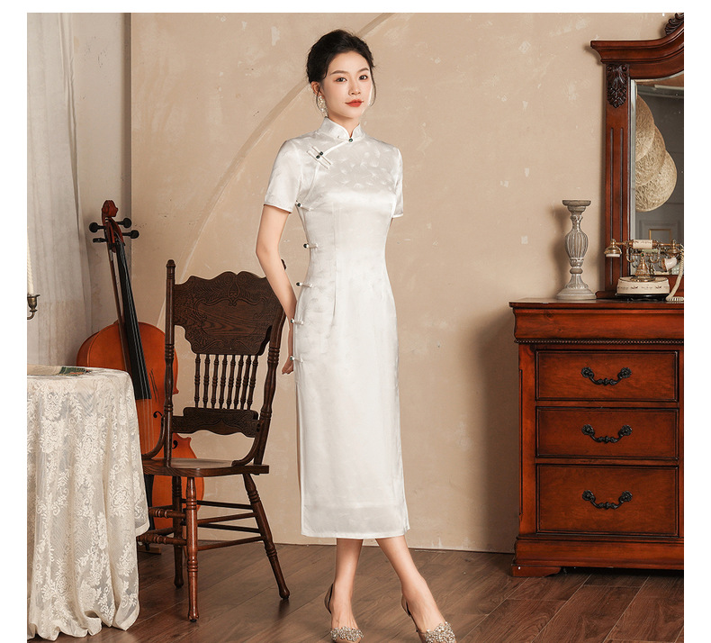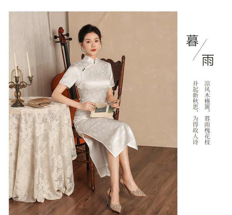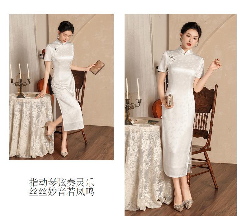 夏季新款三醋酸提花八扣长款日常改良旗袍连衣裙FD-L2307