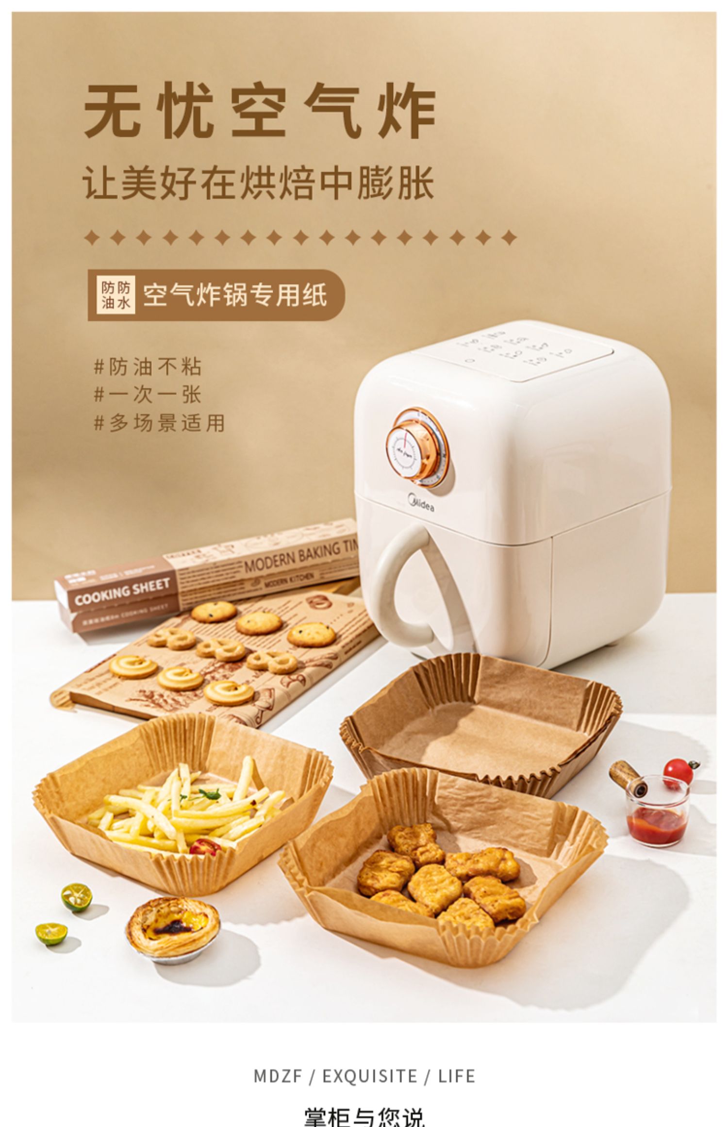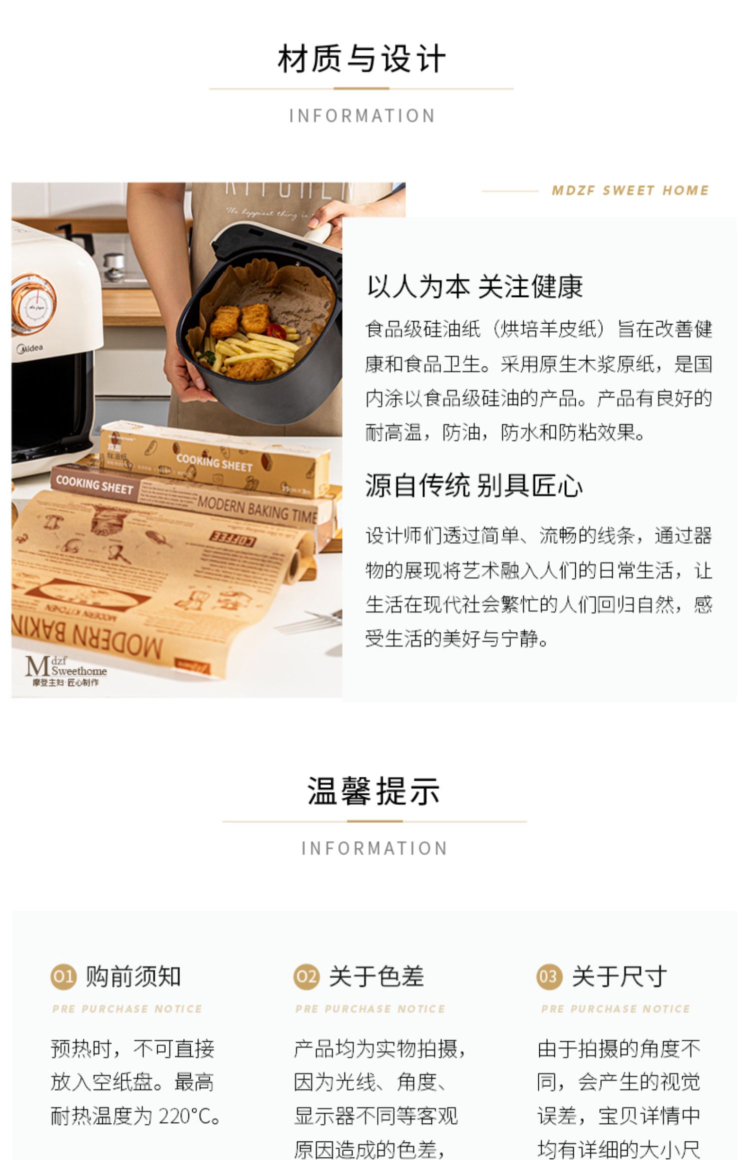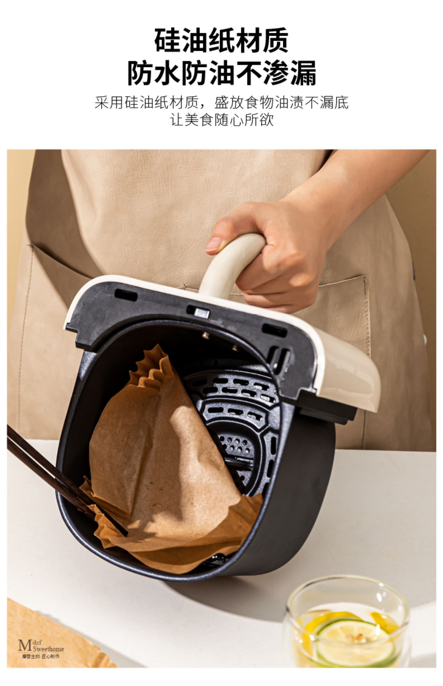 摩登主妇空气炸锅专用纸盘家用吸油纸垫耐高温硅油纸方形烘焙锡纸