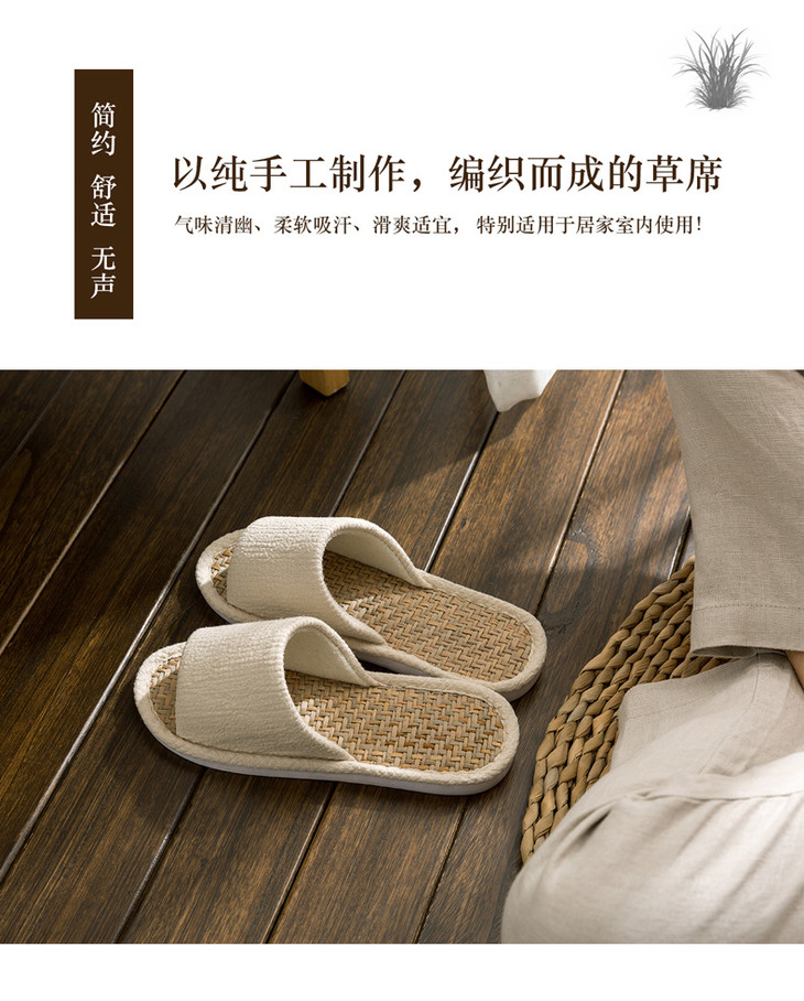 健康舒适、四季可用、居家必备良品!马兰草草编家居防滑拖鞋