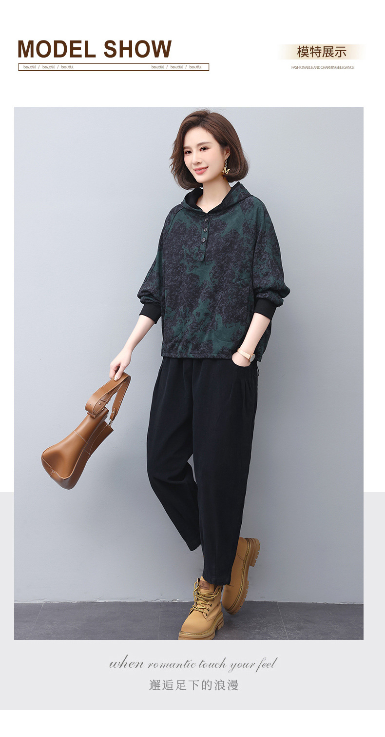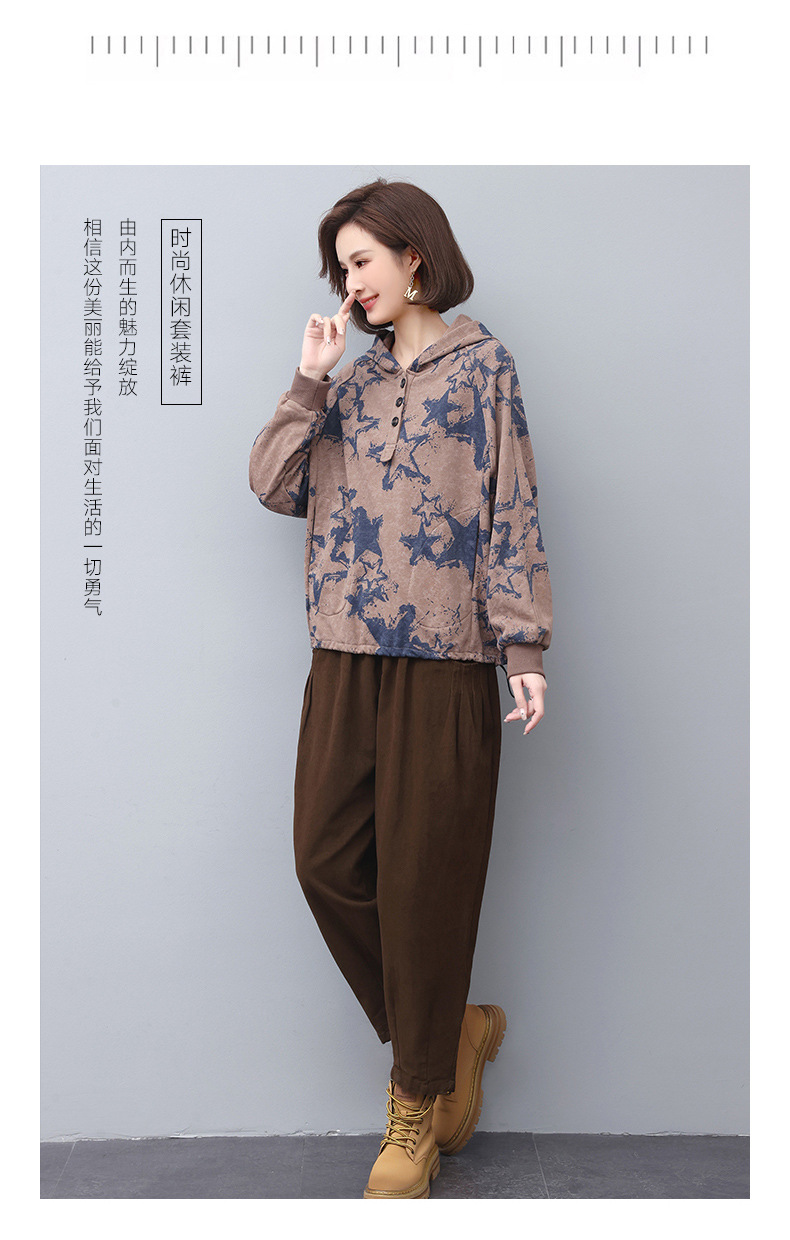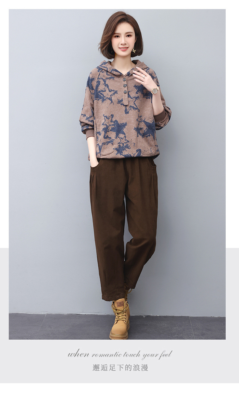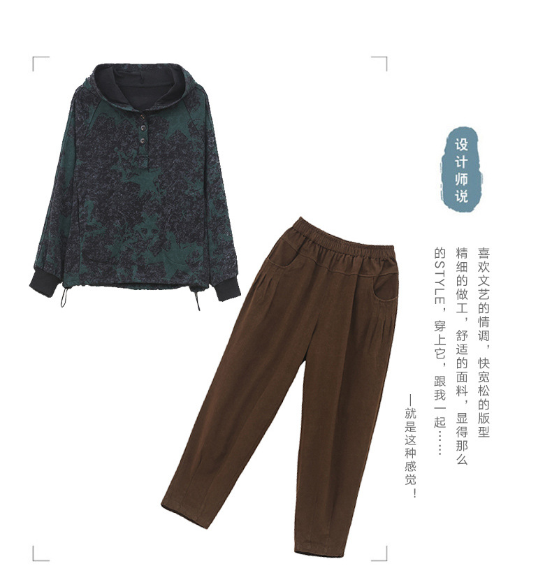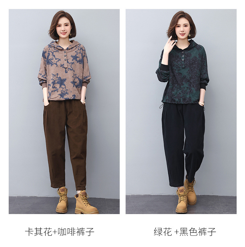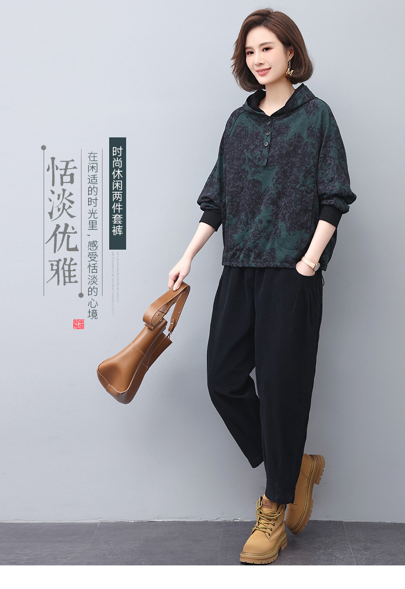 丁摩 减龄套装女春秋宽松花色上衣休闲裤搭配一整套两件套5ZF-329