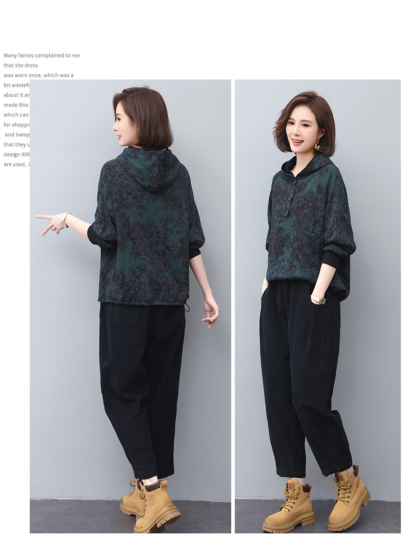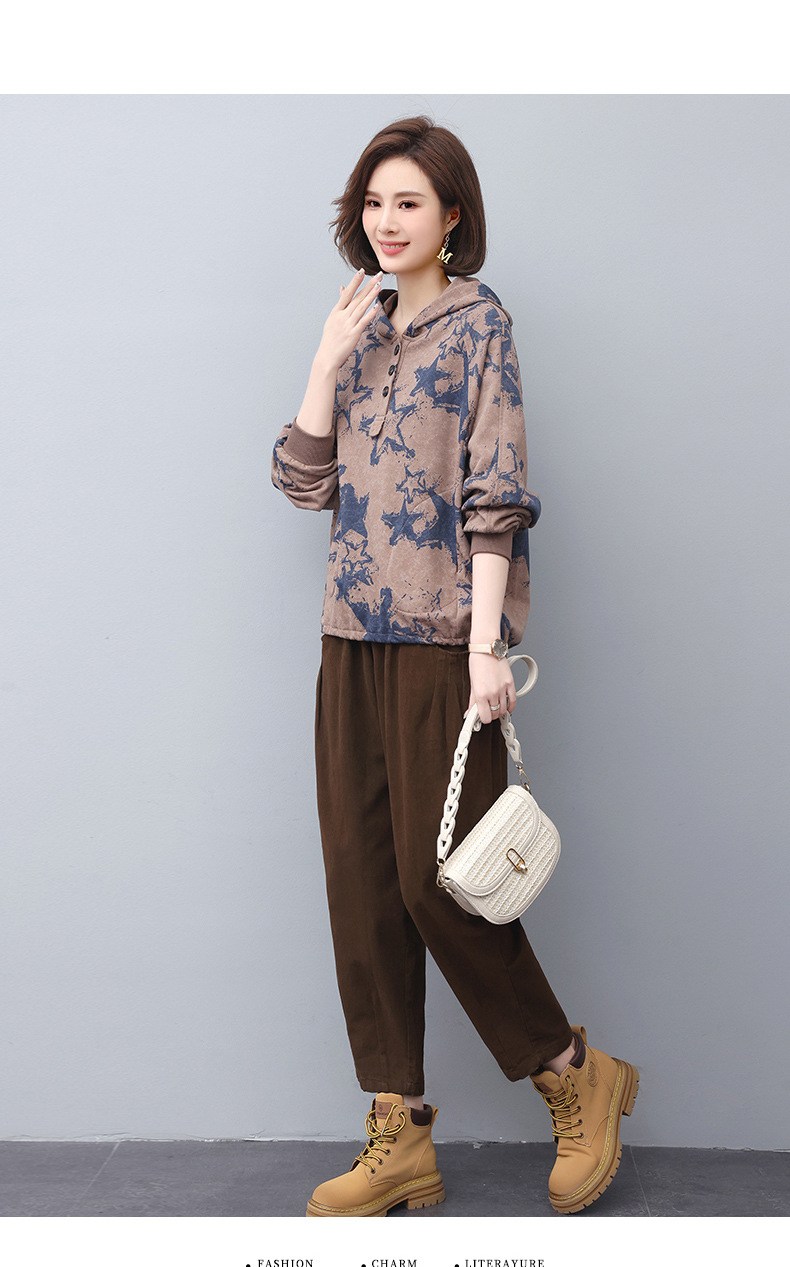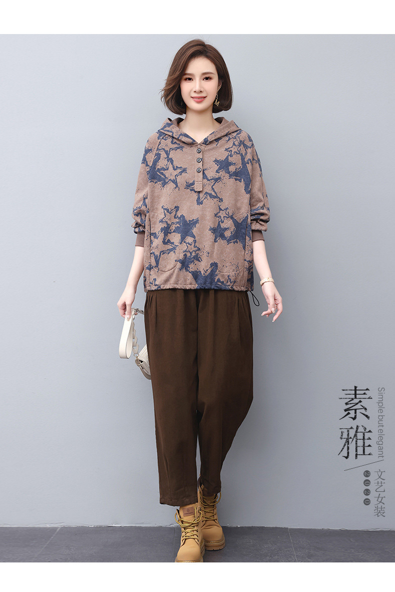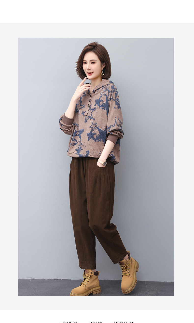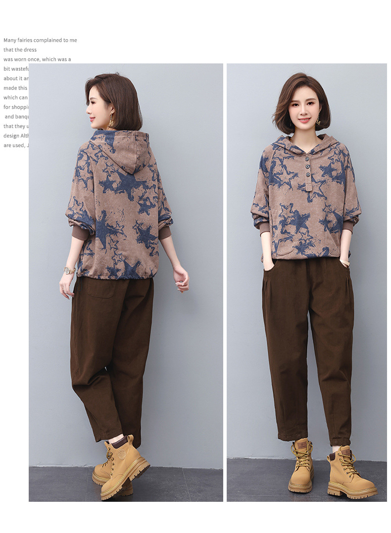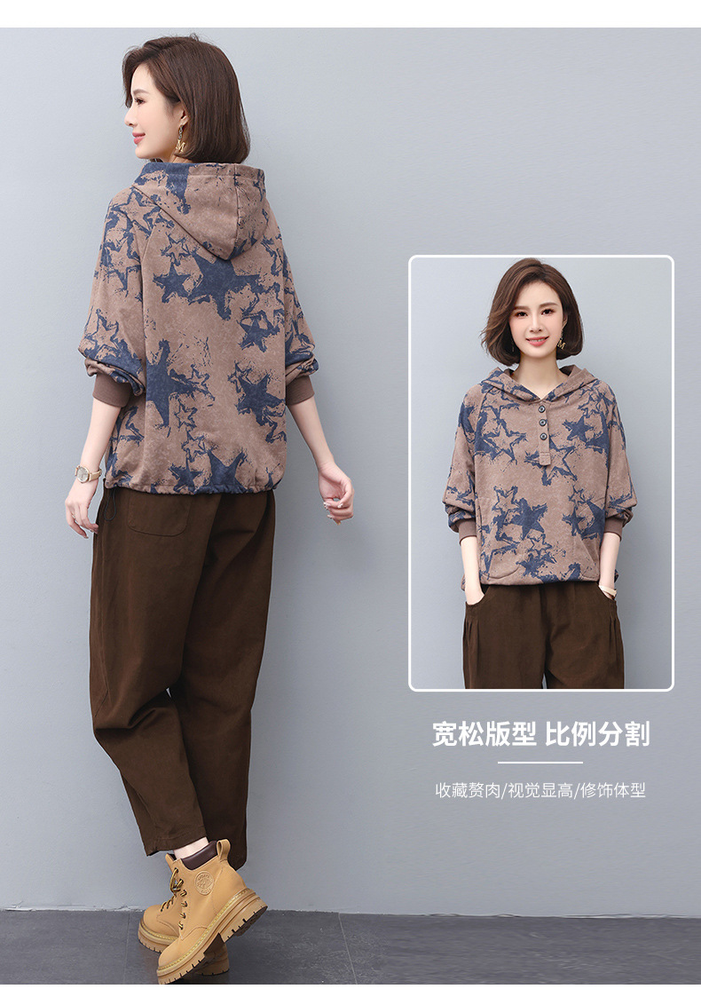 丁摩 减龄套装女春秋宽松花色上衣休闲裤搭配一整套两件套5ZF-329
