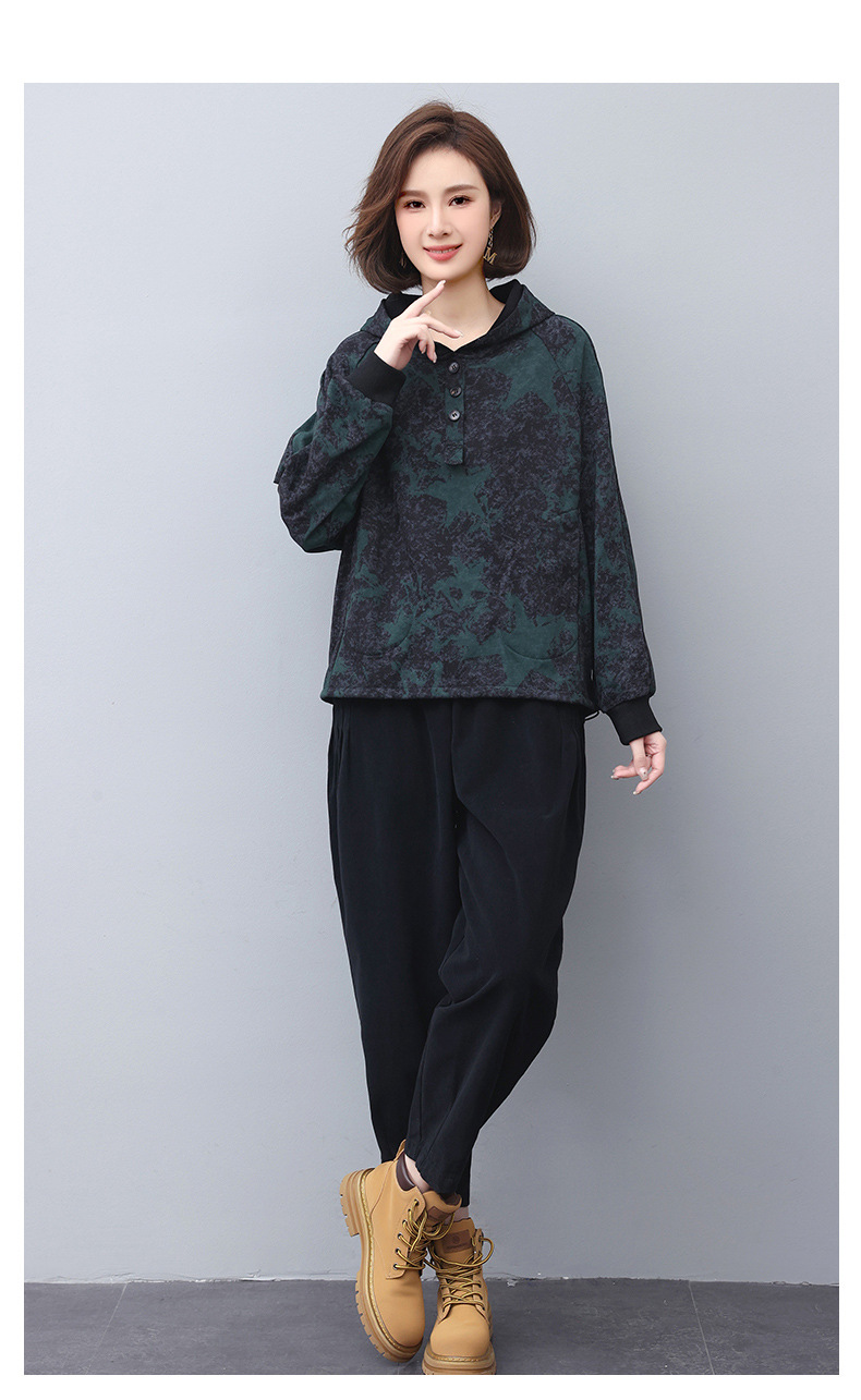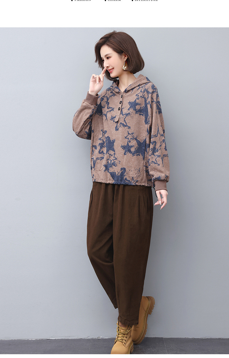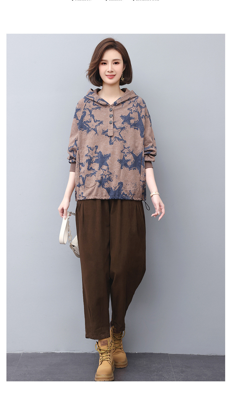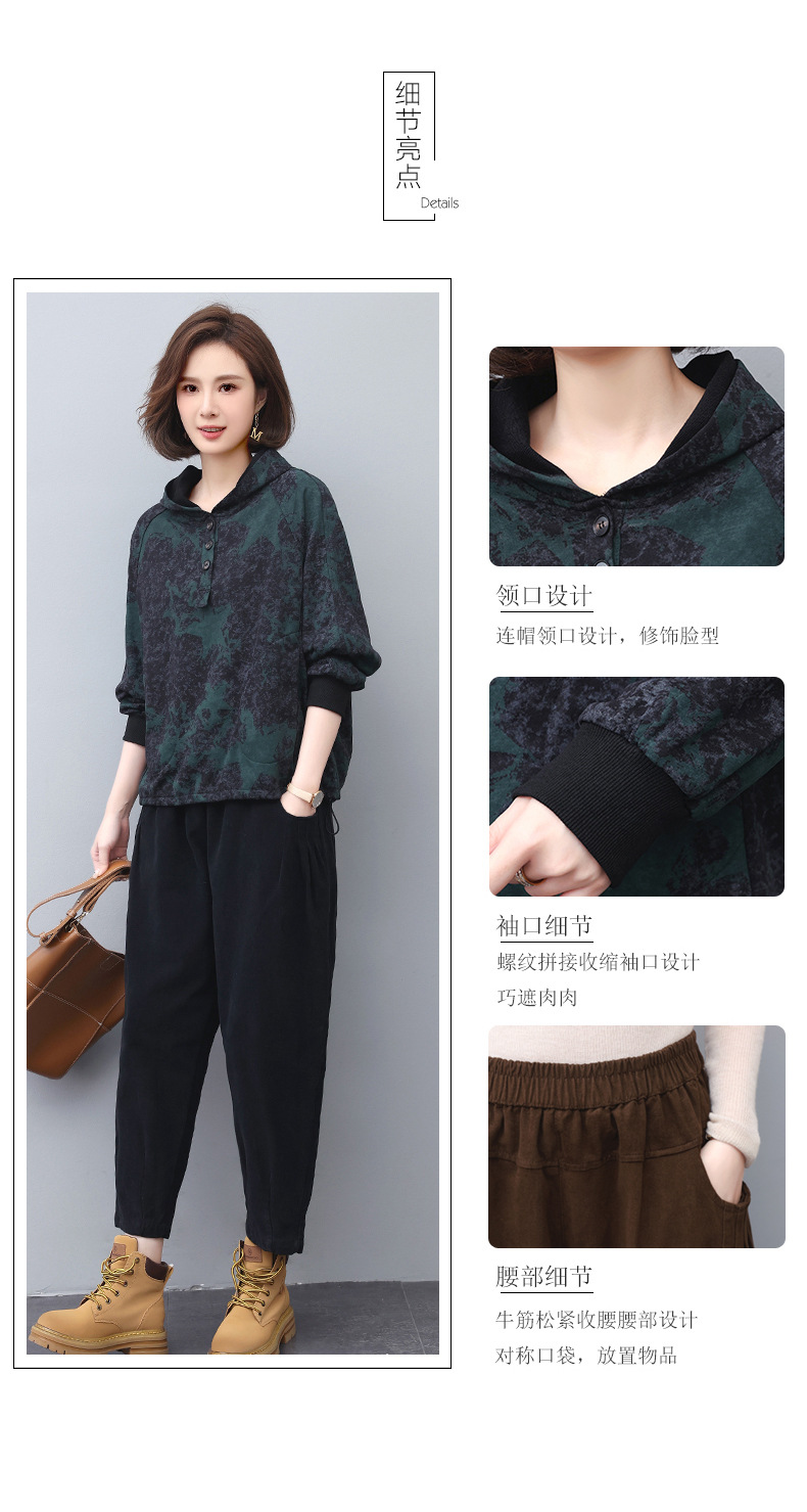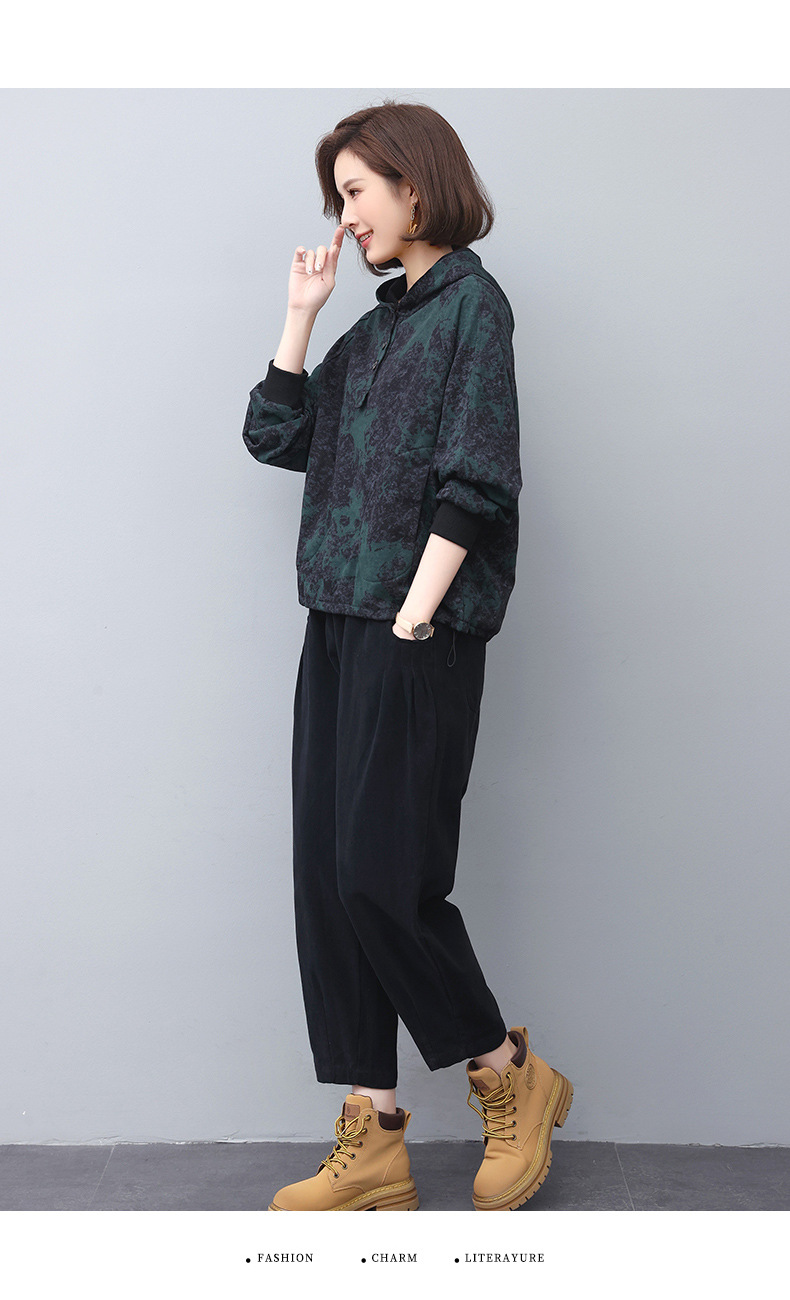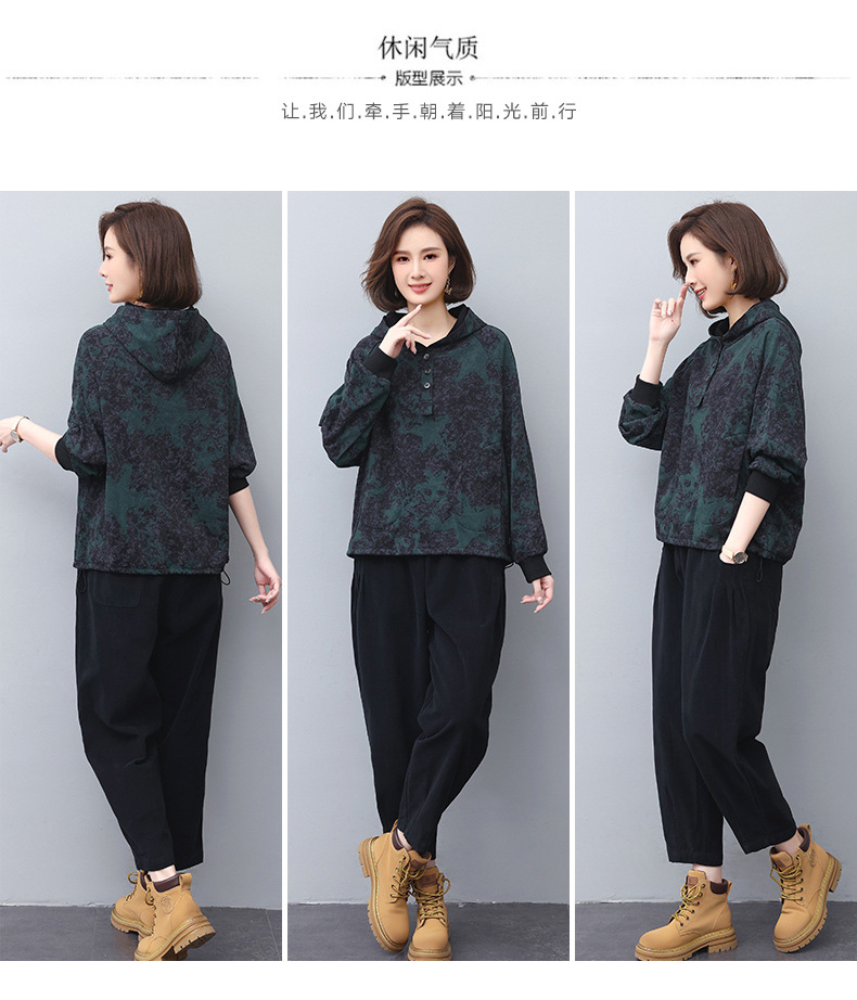 丁摩 减龄套装女春秋宽松花色上衣休闲裤搭配一整套两件套5ZF-329