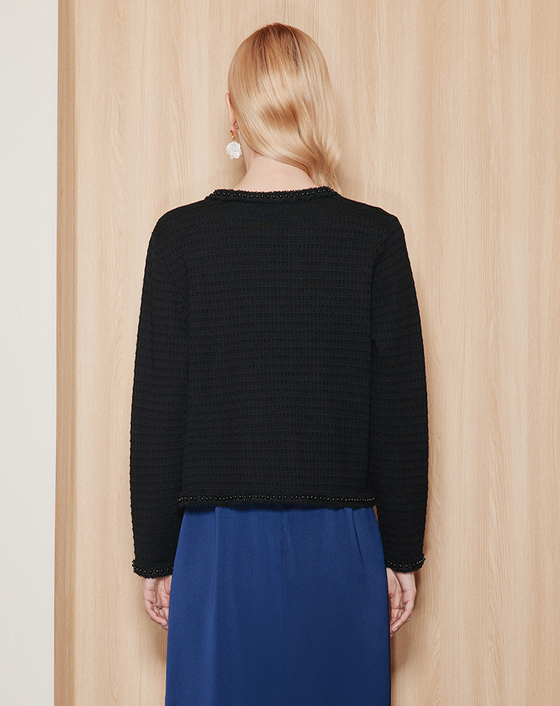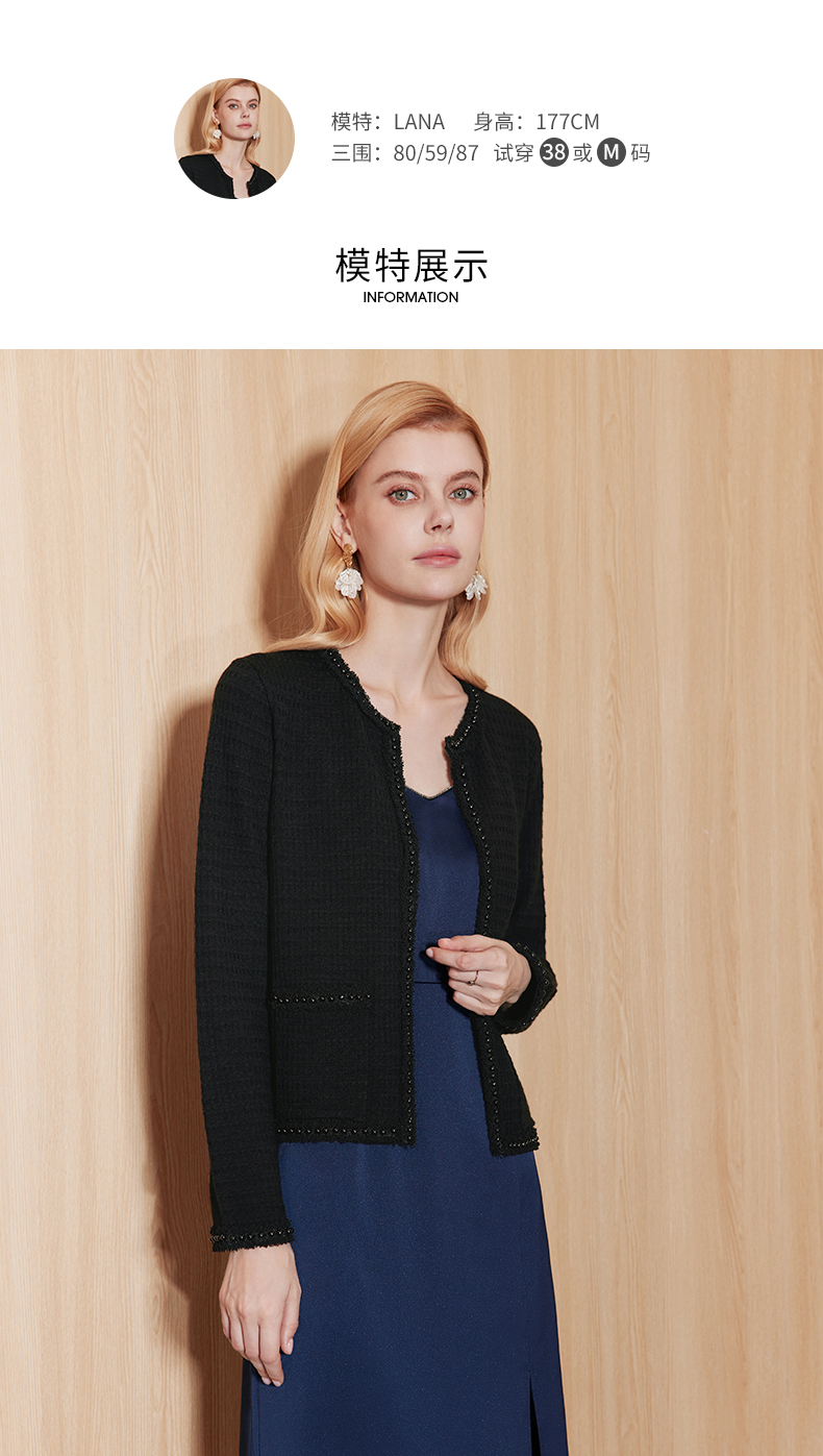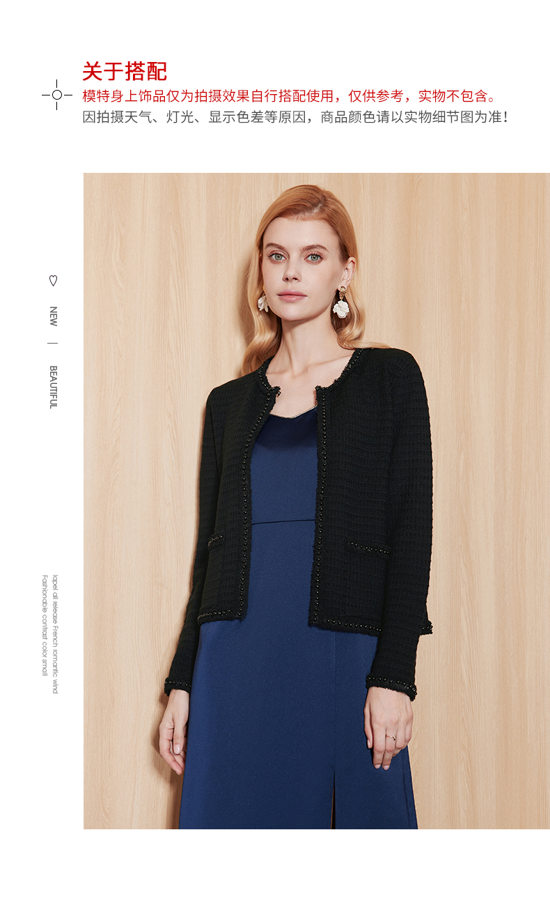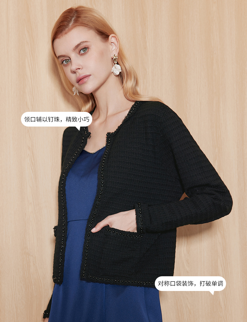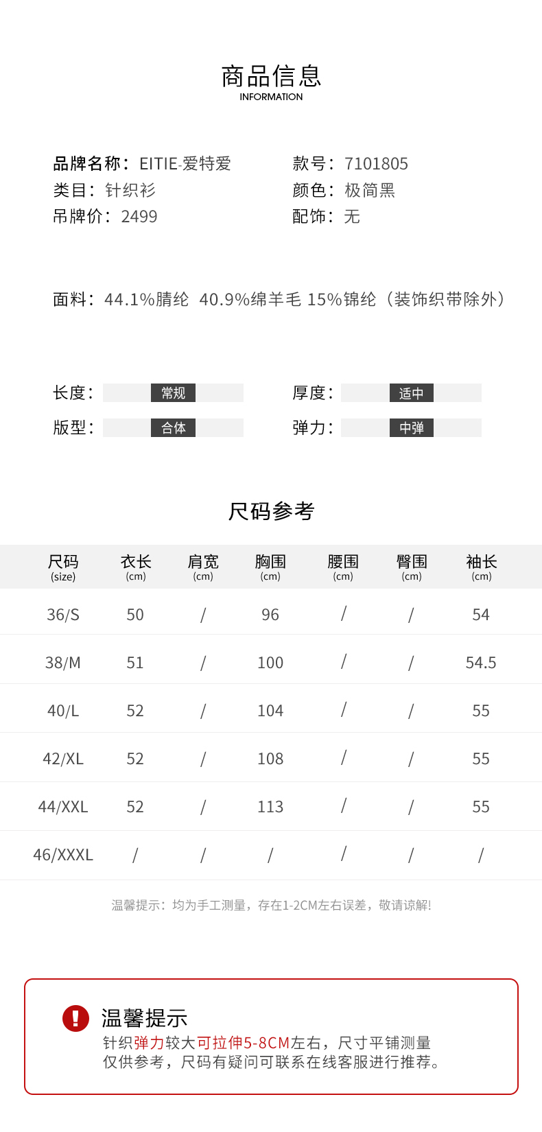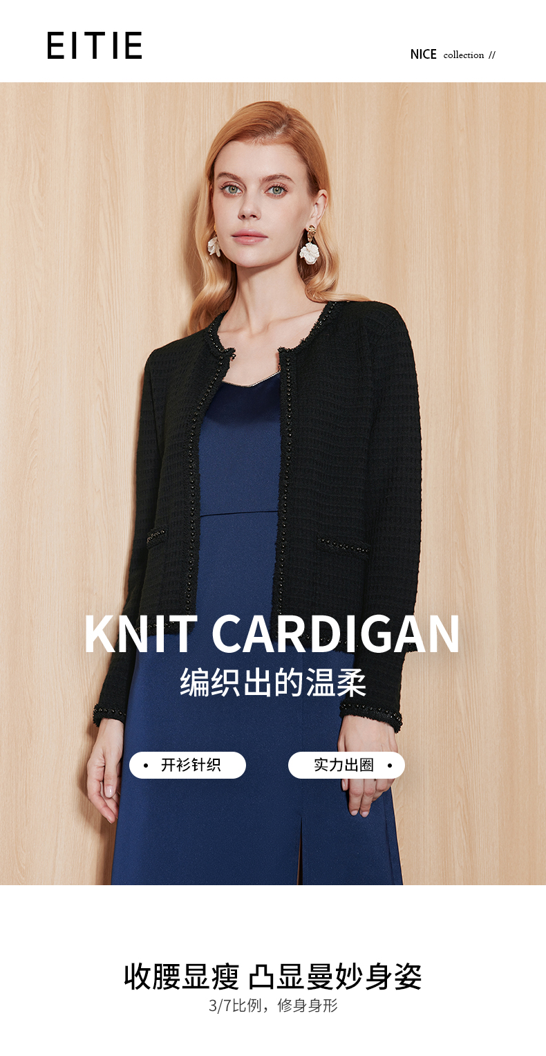 EITIE爱特爱秋季新款时尚通勤气质百搭短款针织开衫7101805