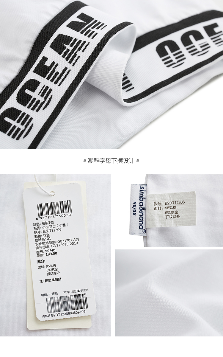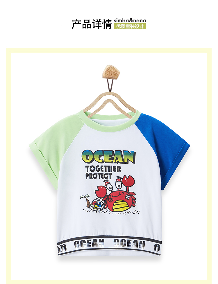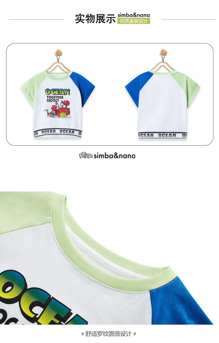 【辛巴娜娜】simbanana男童短袖t恤纯棉儿童夏季白色上衣新款撞色体恤夏装