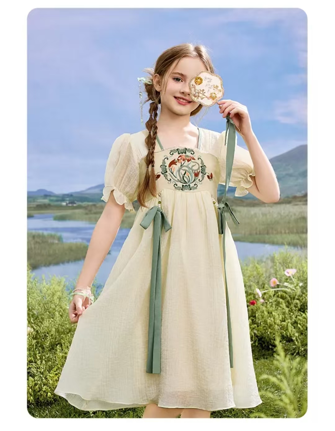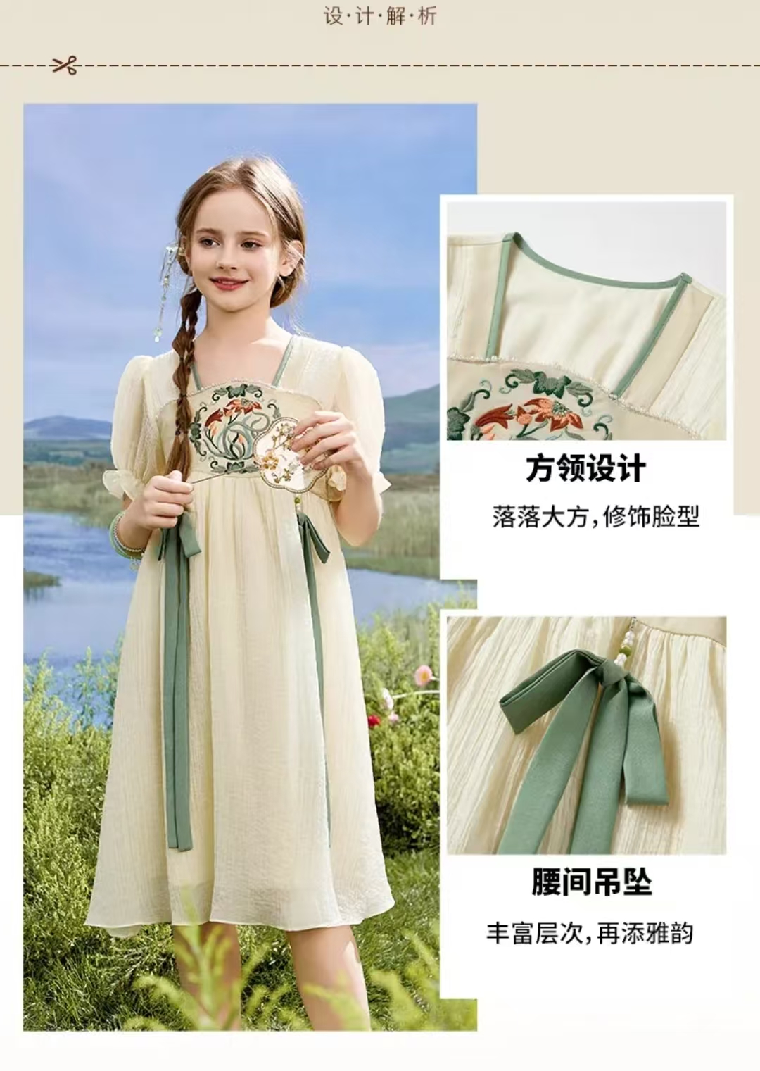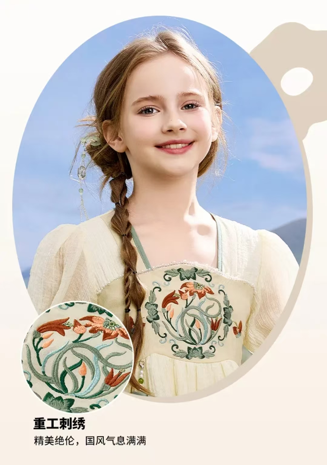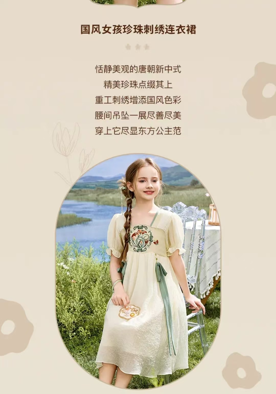 【孩提精灵】2111 珍珠女孩刺绣新中式童连衣裙(无蝴蝶结吊坠配饰)-喜出